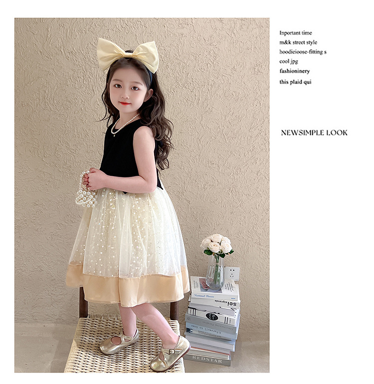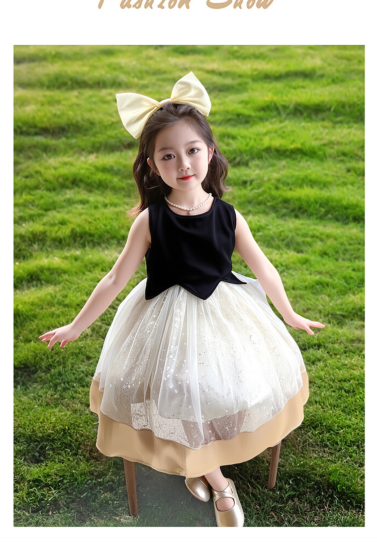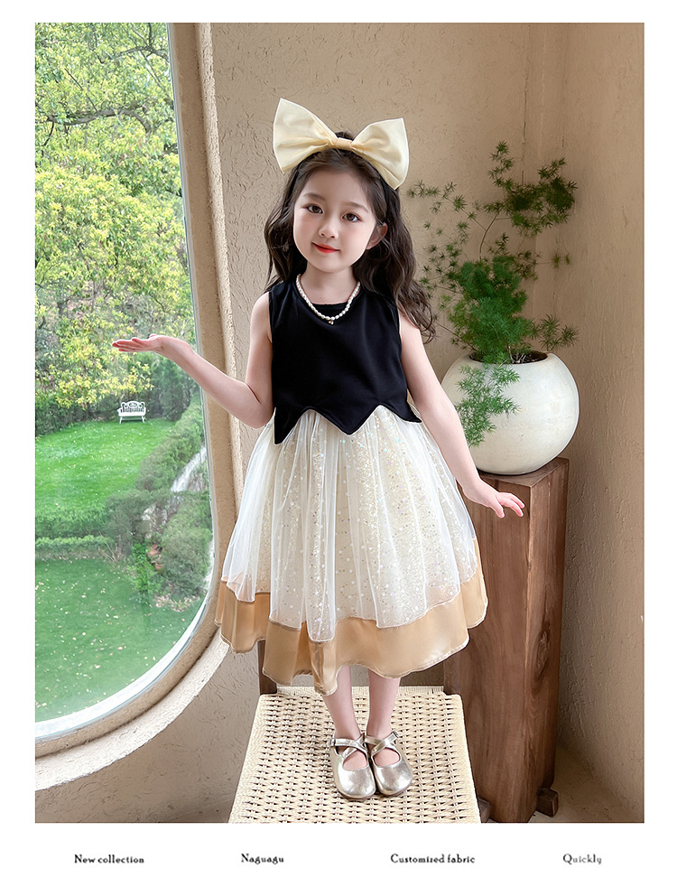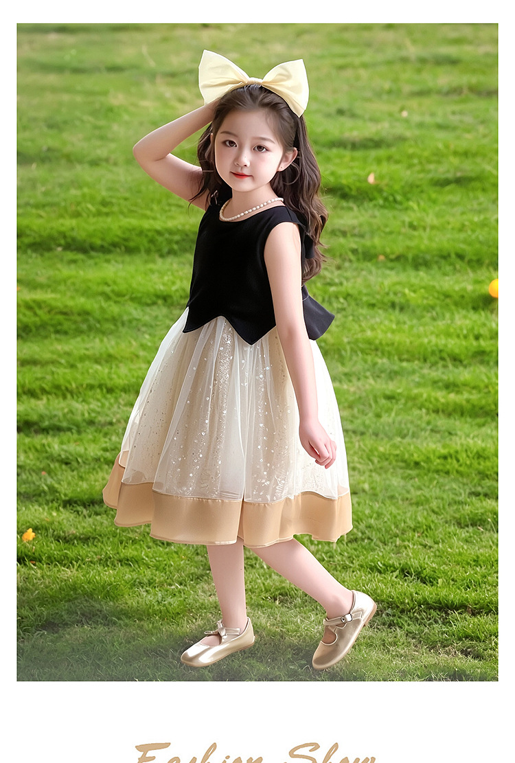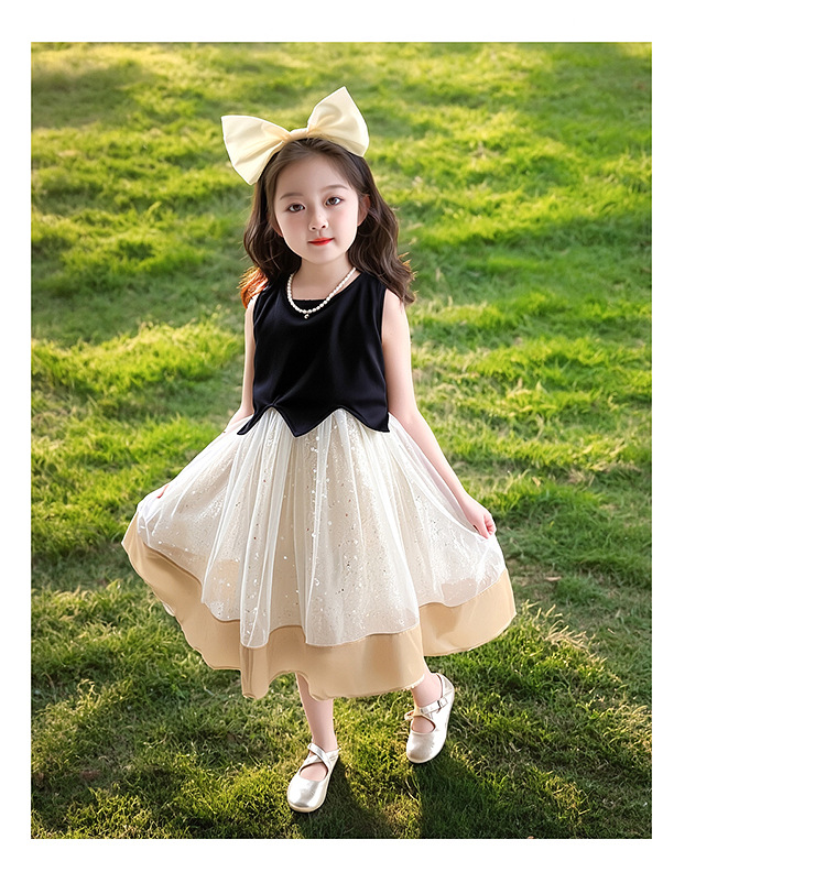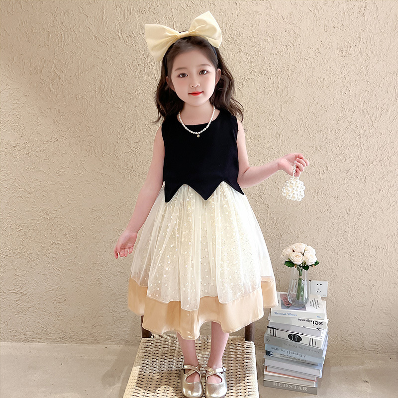 소녀의 원피스 여름 2025 새로운 스타일 어린이 헵번 스타일 베일 원피스 여름 소녀의 공주 조끼 스커트스토어 가기