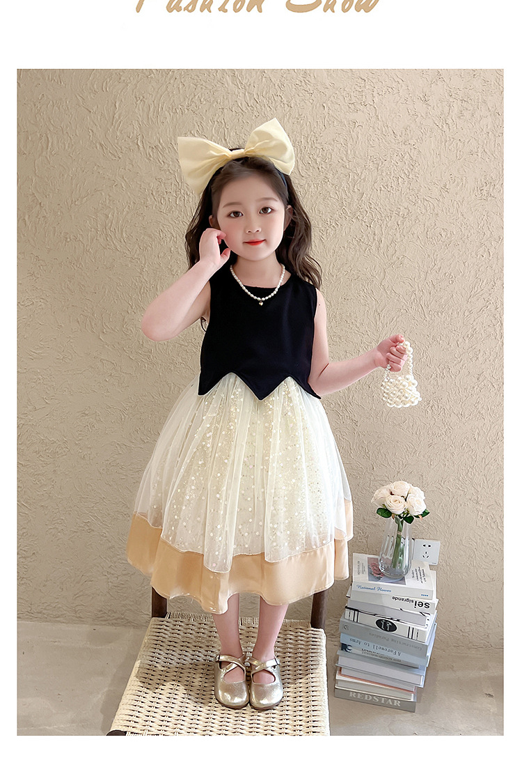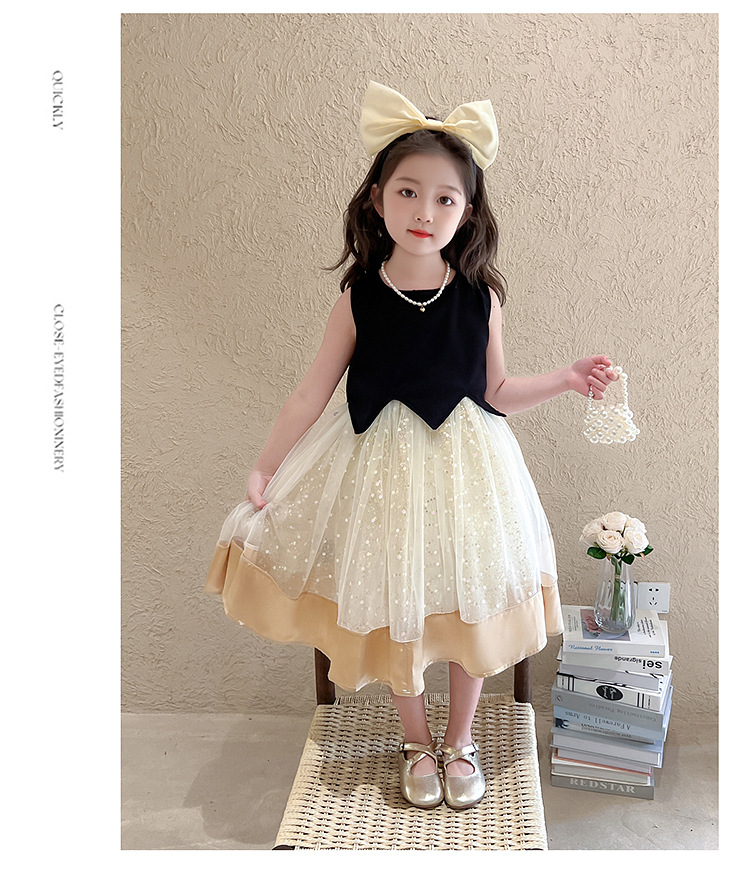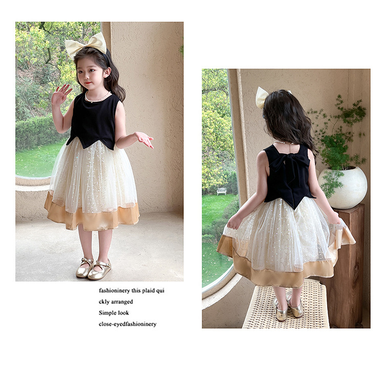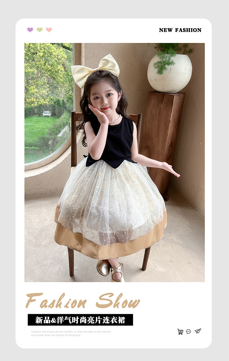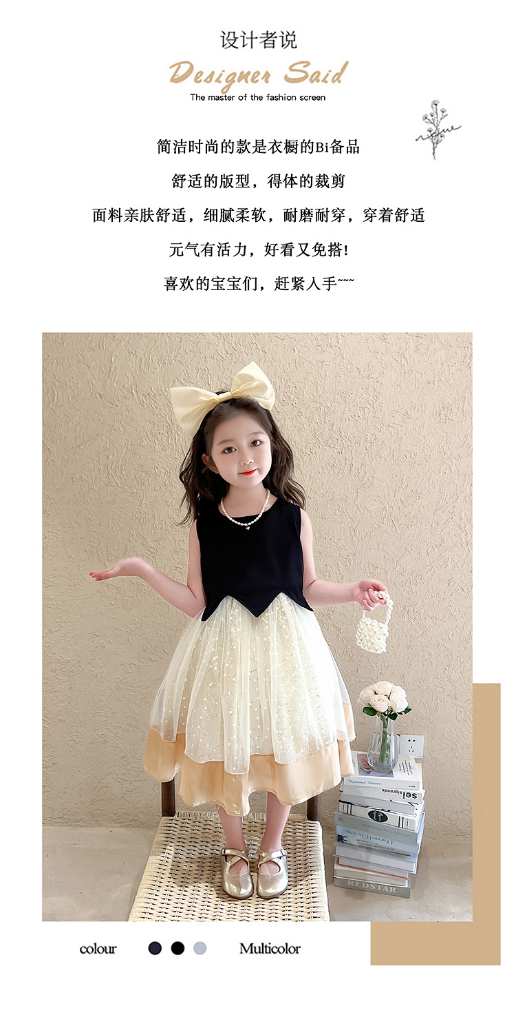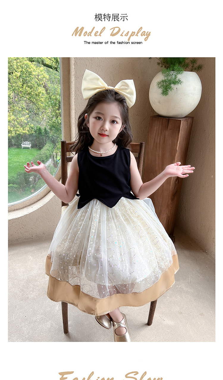 소녀의 원피스 여름 2025 새로운 스타일 어린이 헵번 스타일 베일 원피스 여름 소녀의 공주 조끼 스커트스토어 가기