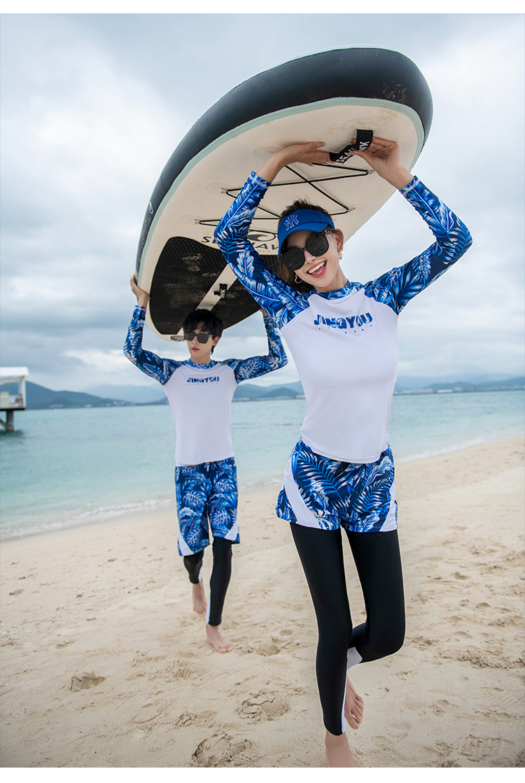 새로운 커플 빠른 건조 세트 의류 비치 플러스 사이즈 패션 유럽과 미국의 긴 소매 바지 정장 도매 수영복스토어 가기