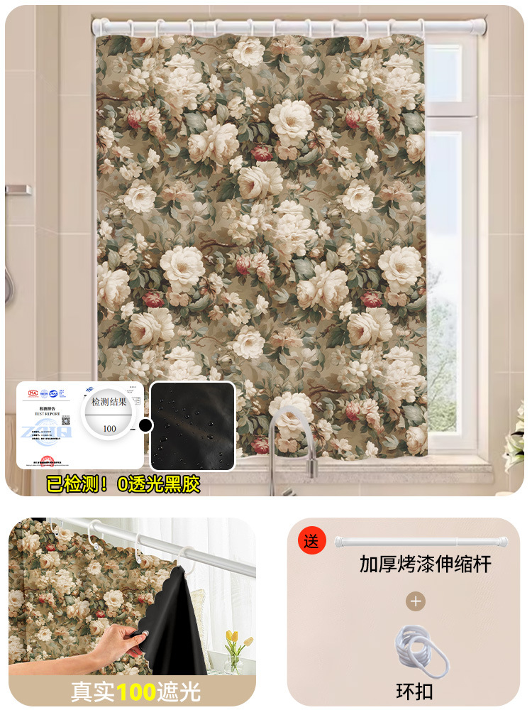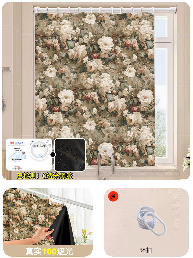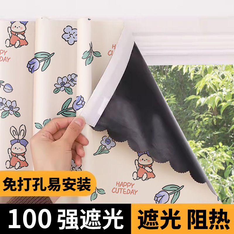 전체 음영 작은 창 커튼 원단 비 천공 벨크로 자체 접착 양산 태양 보호 2025 새로운 짧은 음영 커튼스토어 가기