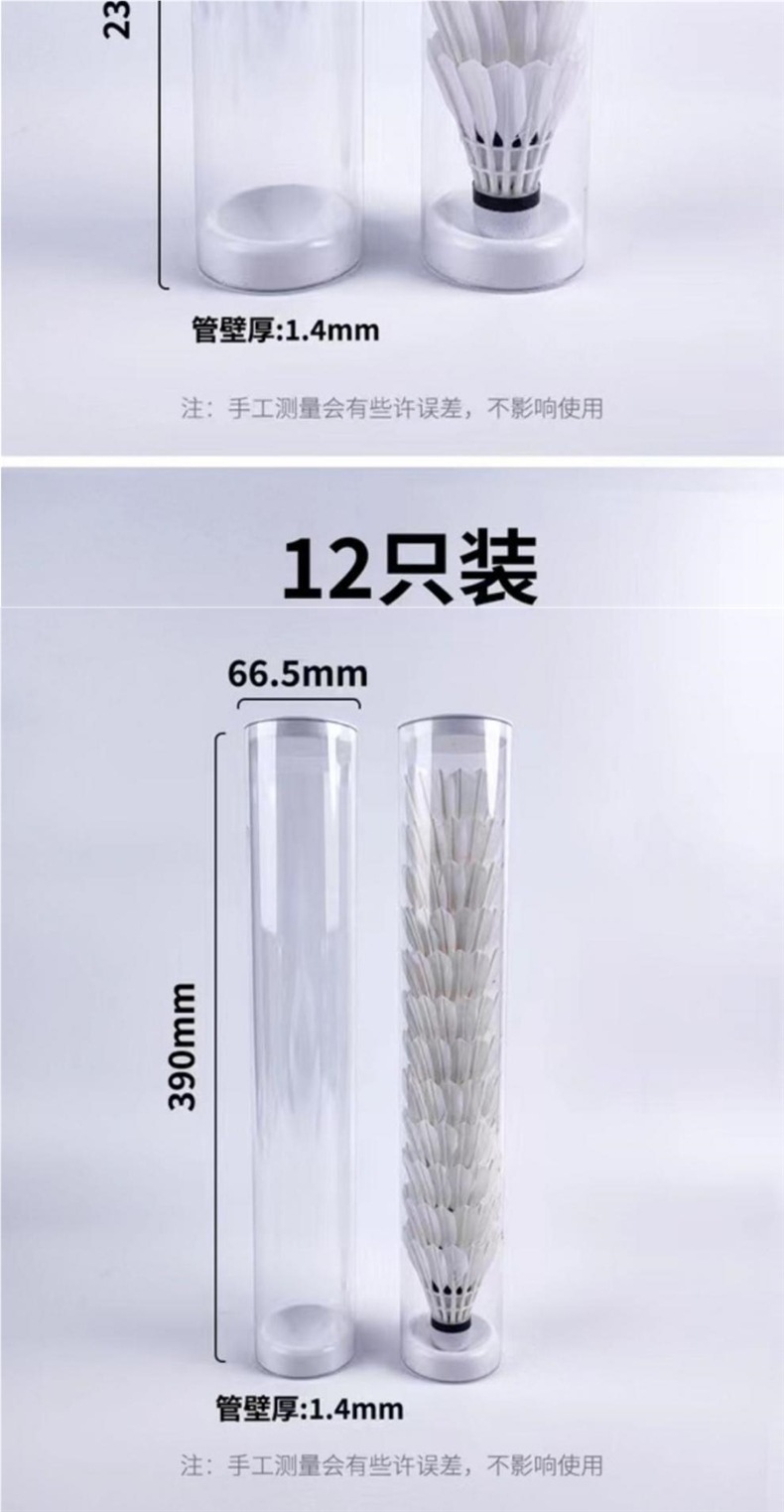 • 표준 투명 빈 배럴 12개(배드민턴 공 제외)