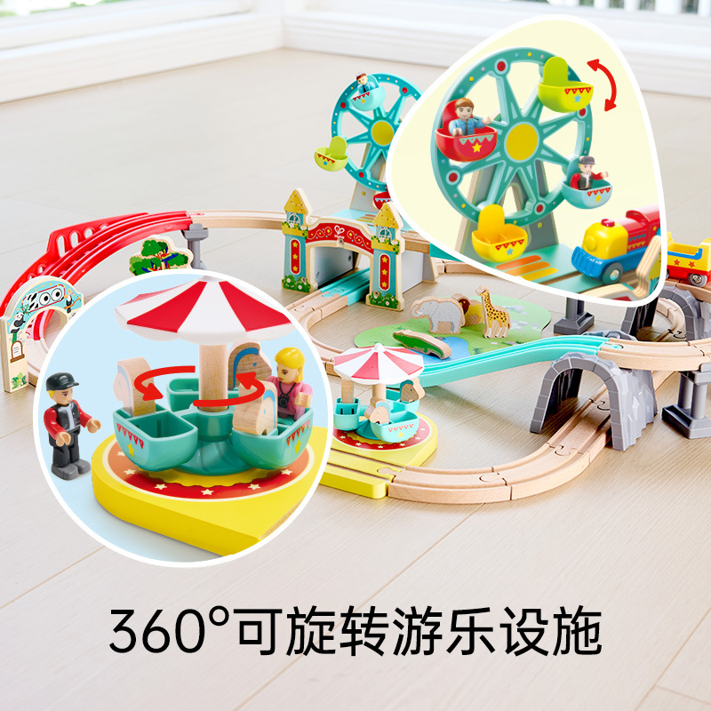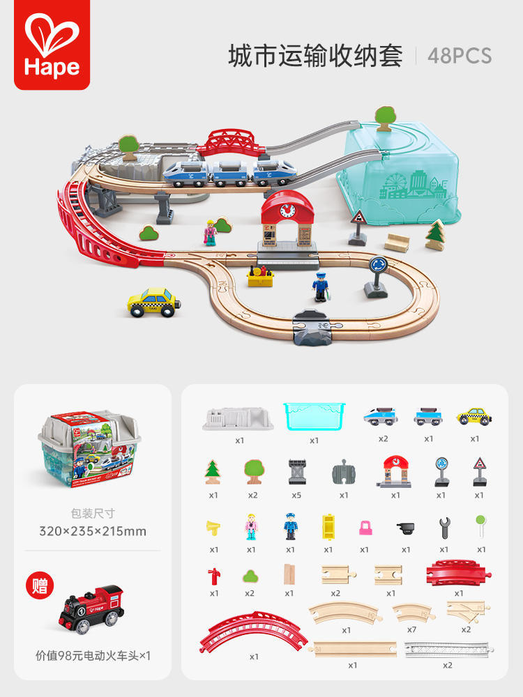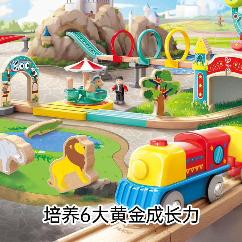 Hape 목조 트랙 자동차 놀이터 기차 트랙 나무 작은 기차 어린이 단단한 나무 장난감 생일 선물스토어 가기