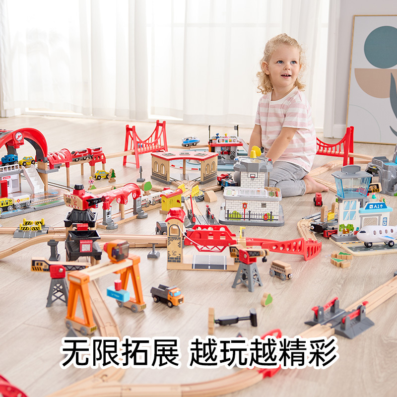 Hape 목조 트랙 자동차 놀이터 기차 트랙 나무 작은 기차 어린이 단단한 나무 장난감 생일 선물