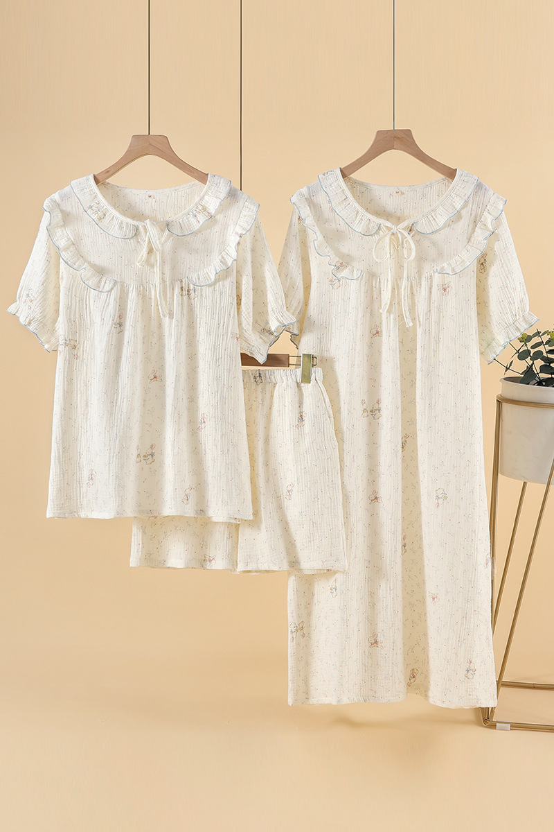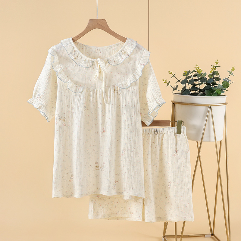 잠옷 여성 봄 여름 가을 크레페 코튼 신선한 스타일 꽃 달콤한 홈 잠옷 반팔 반바지 세트 홈 의류스토어 가기
