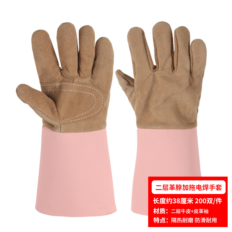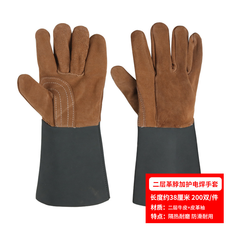 전기 용접 장갑 긴 2 층 가죽 목 플러스 보호 플러스 단열 용접 마모 방지 두꺼운 보호 칼 용접기 장갑