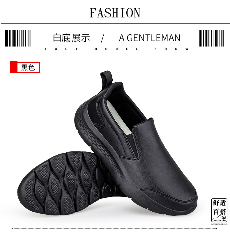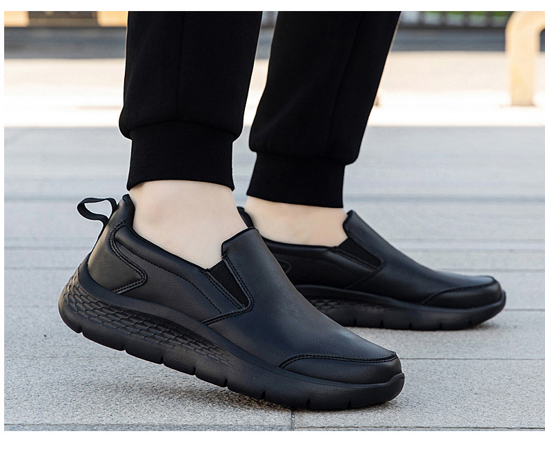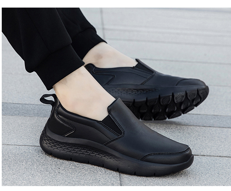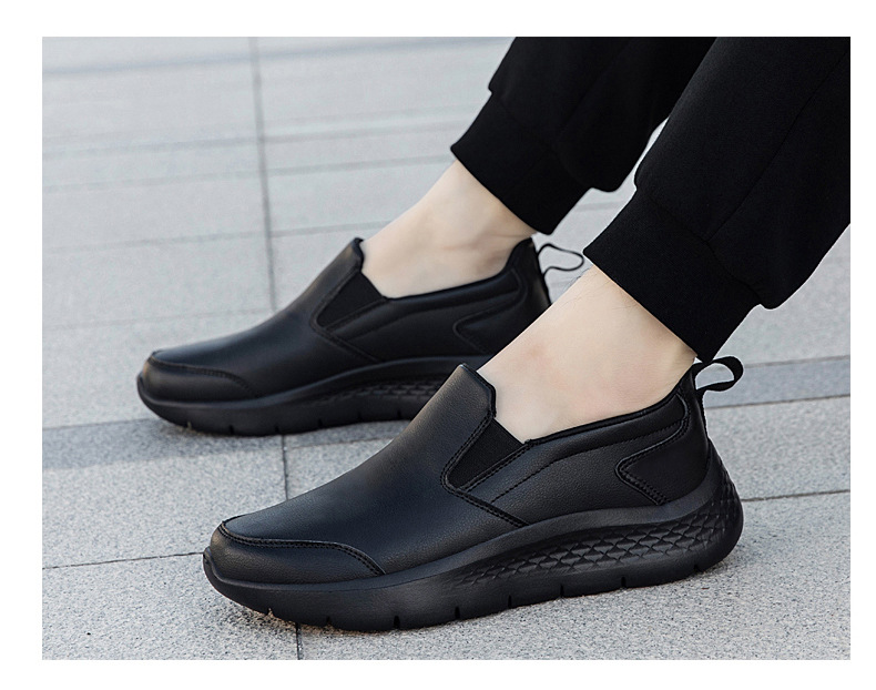 2025 봄 신작 남성용 가죽신, 퓨어 블랙 비즈니스 캐주얼 슈즈, 슬립온 게으른 남성용 부드러운 밑창 아빠 신발, 남녀 동일 스타일스토어 가기