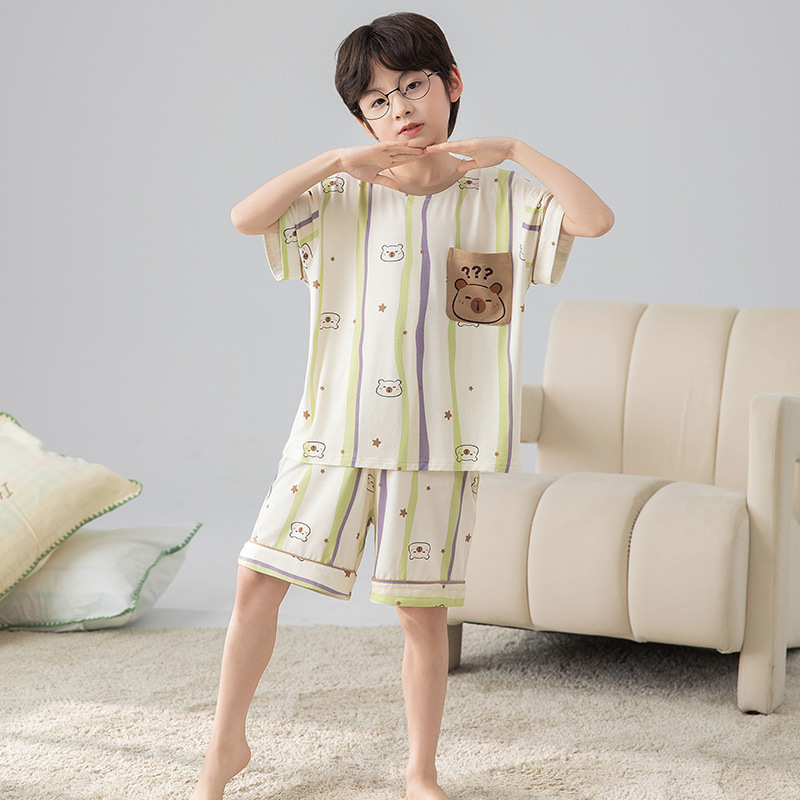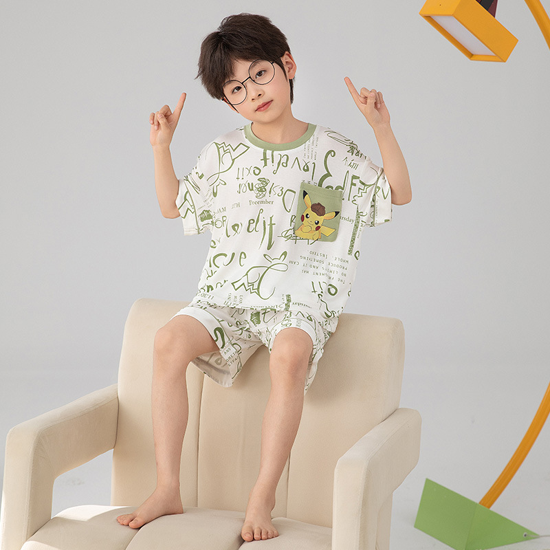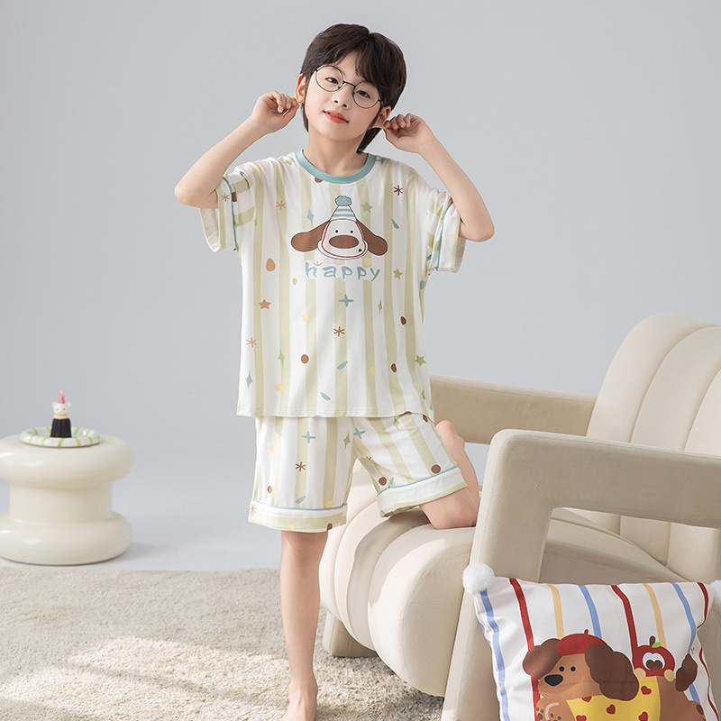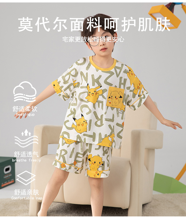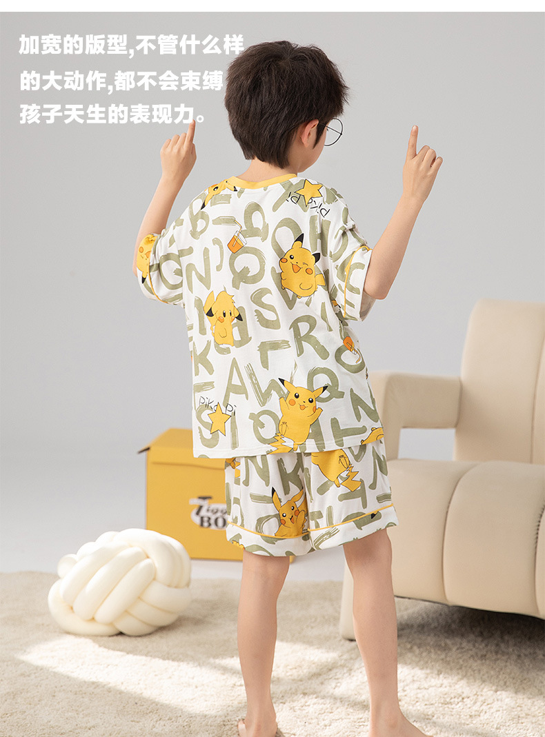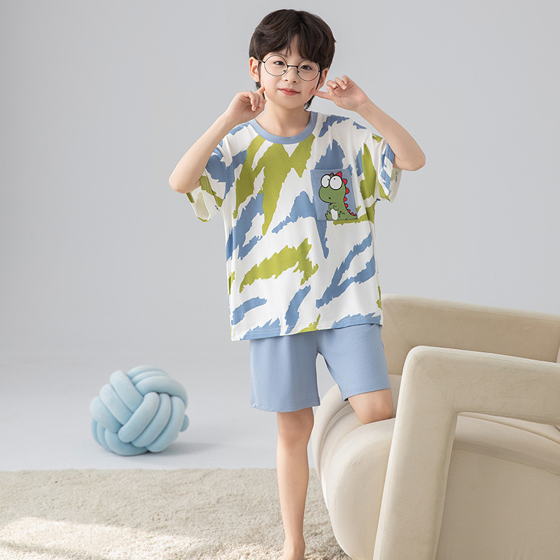 여름 소년 반팔 반바지 모달 얇은 만화 에어컨 세트 큰 어린이 잠옷 여름 홈 의류 세트스토어 가기