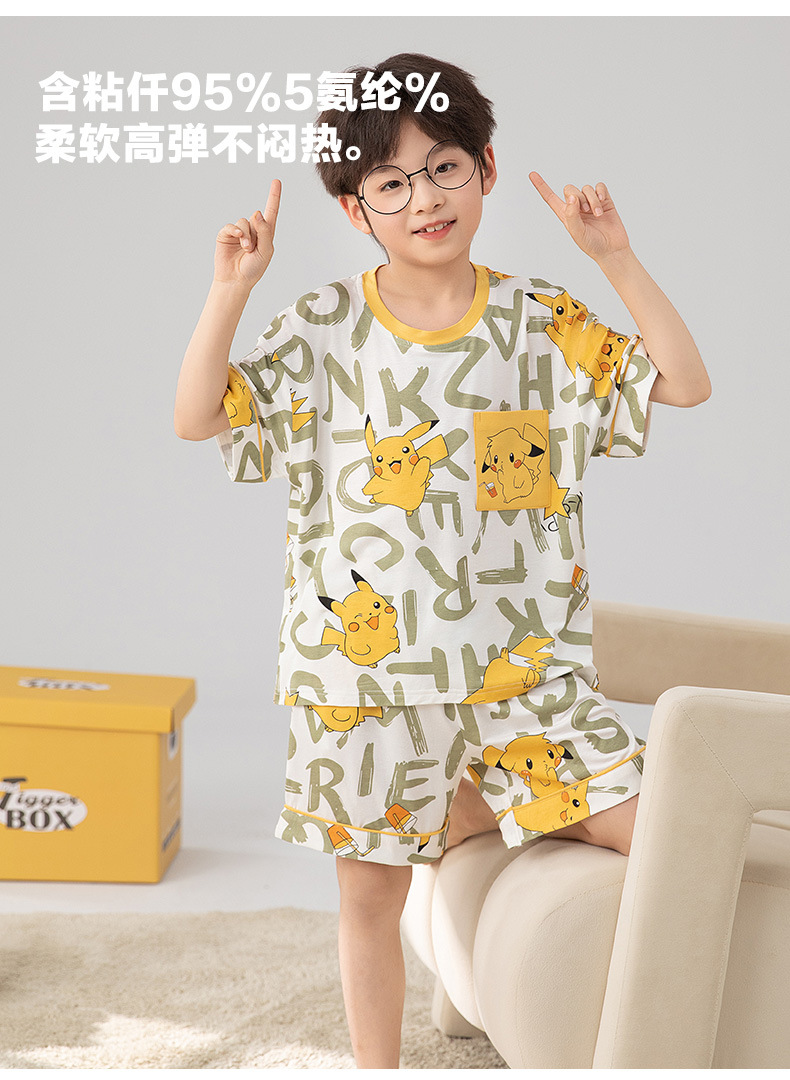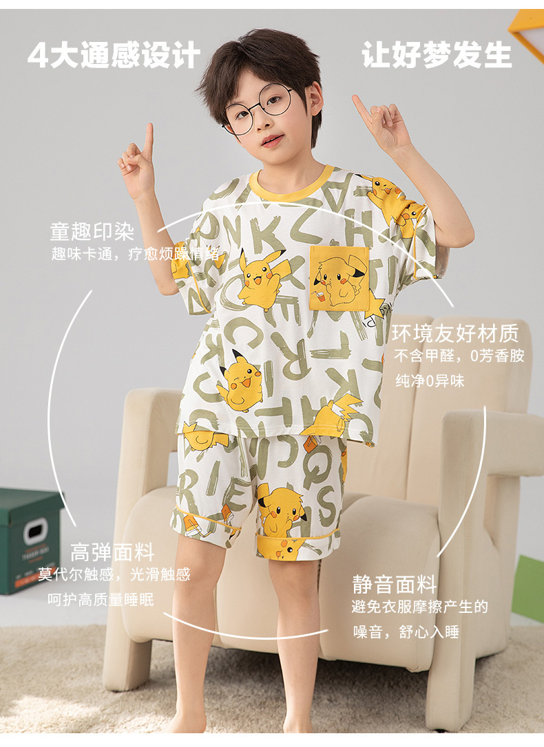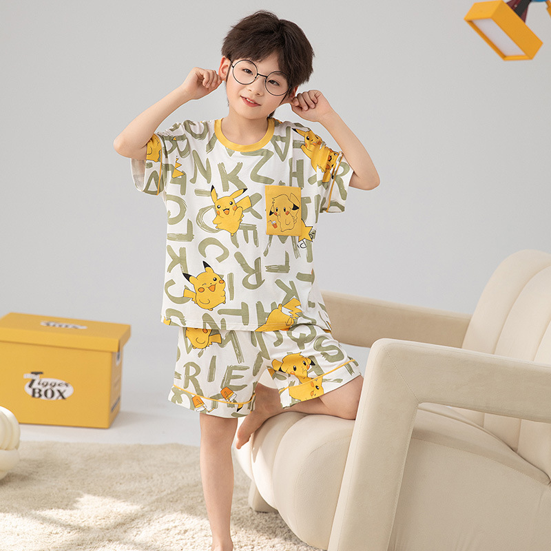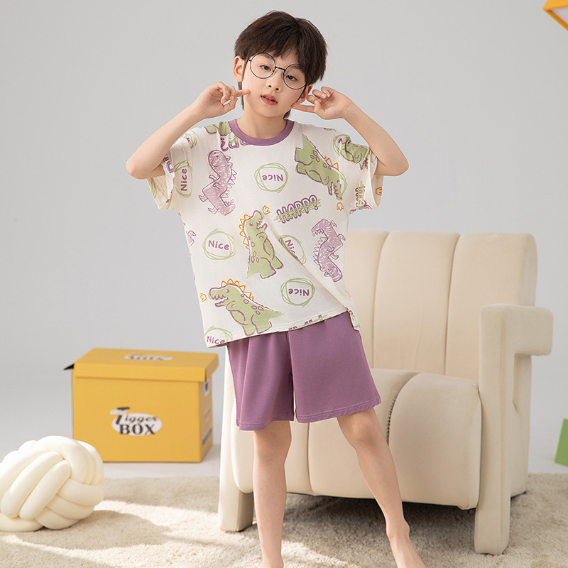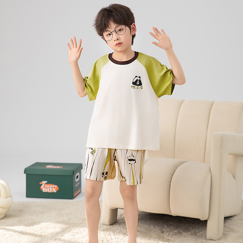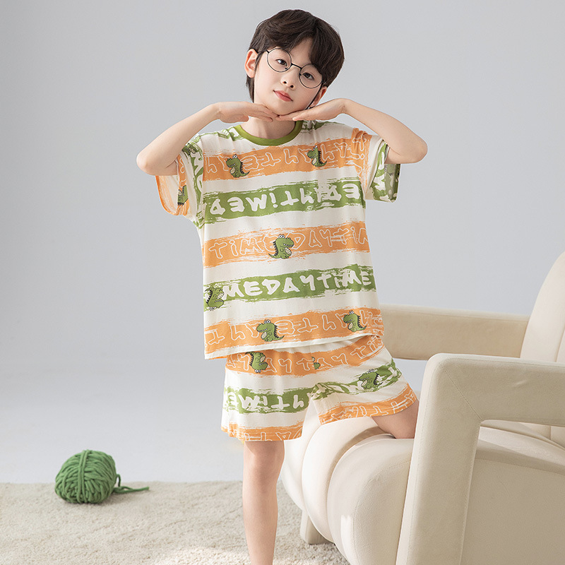여름 소년 반팔 반바지 모달 얇은 만화 에어컨 세트 큰 어린이 잠옷 여름 홈 의류 세트스토어 가기