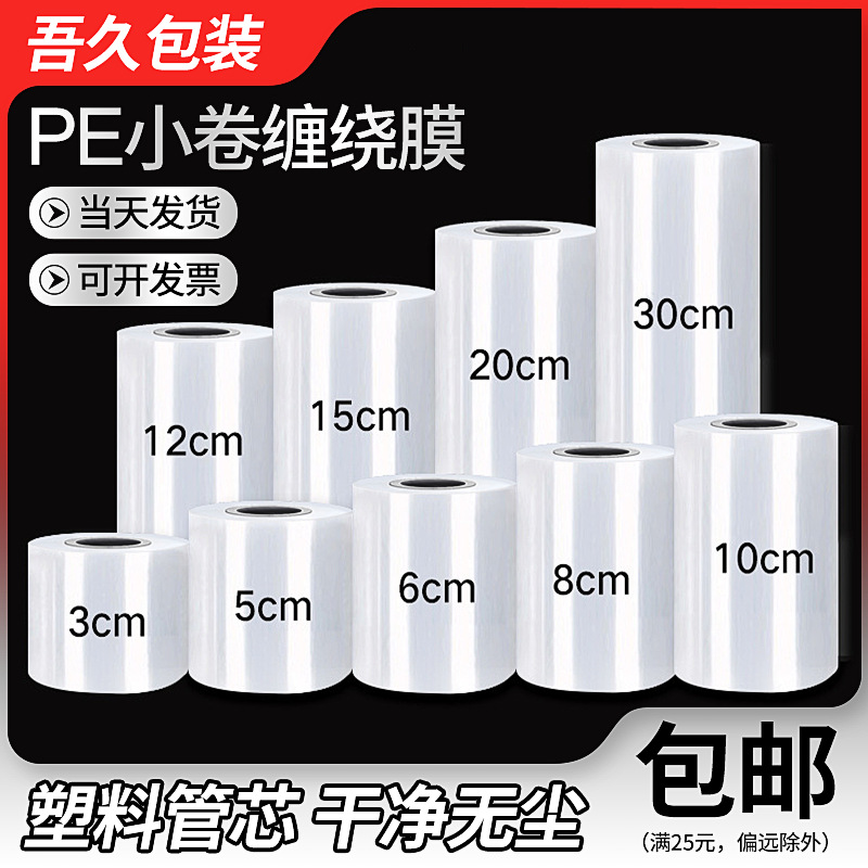 PE 작은 롤 포장 필름 3cm 스몰 사이즈 테이크 아웃 누출 방지 포장 특수 밀봉 필름 6cm 투명 플라스틱 코어 스트레치 필름