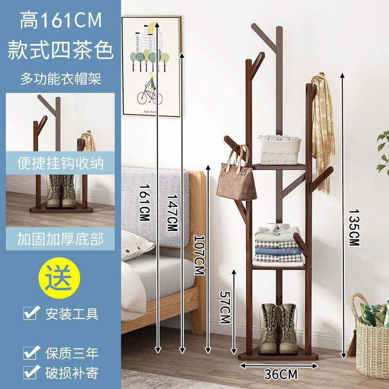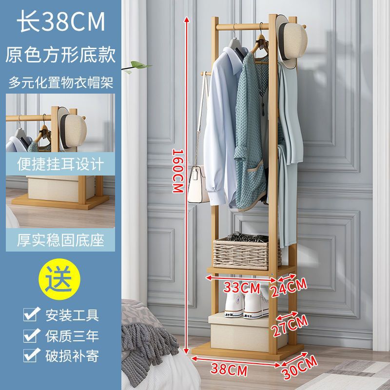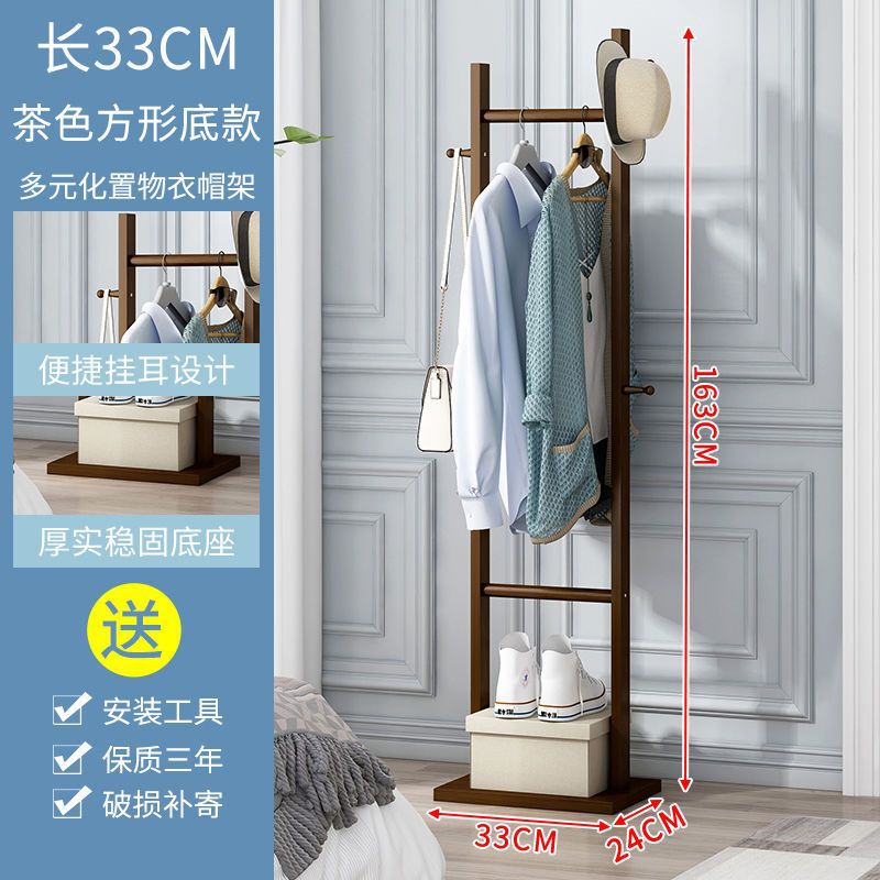 • 원목 색상 - 이중 기둥 사각 바닥 옷걸이 [두꺼운 브래킷]
