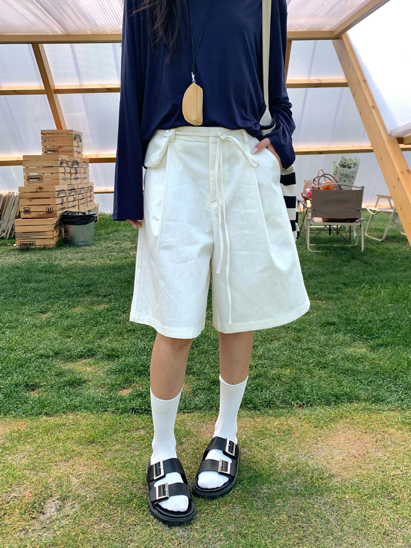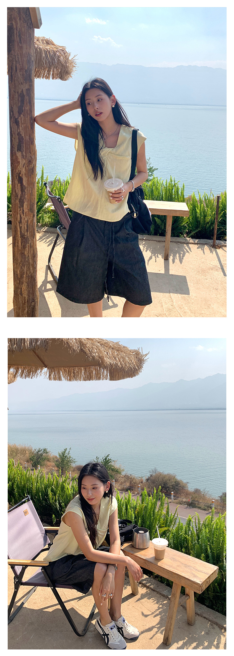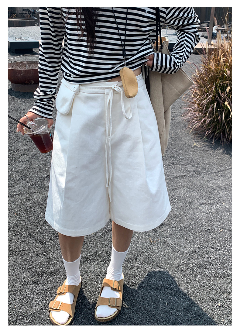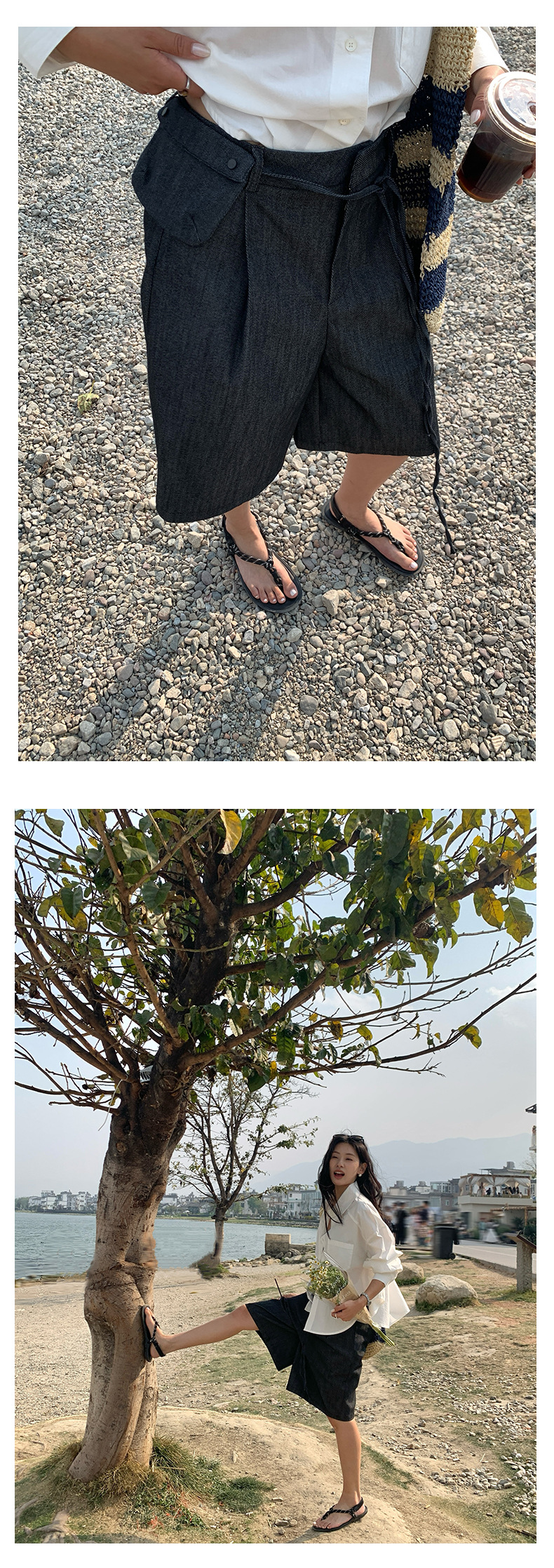 허리 가방 클래식 데님 반바지 황정 높은 허리 넓은 다리 여자 2025 여름 휴식 바지 520438