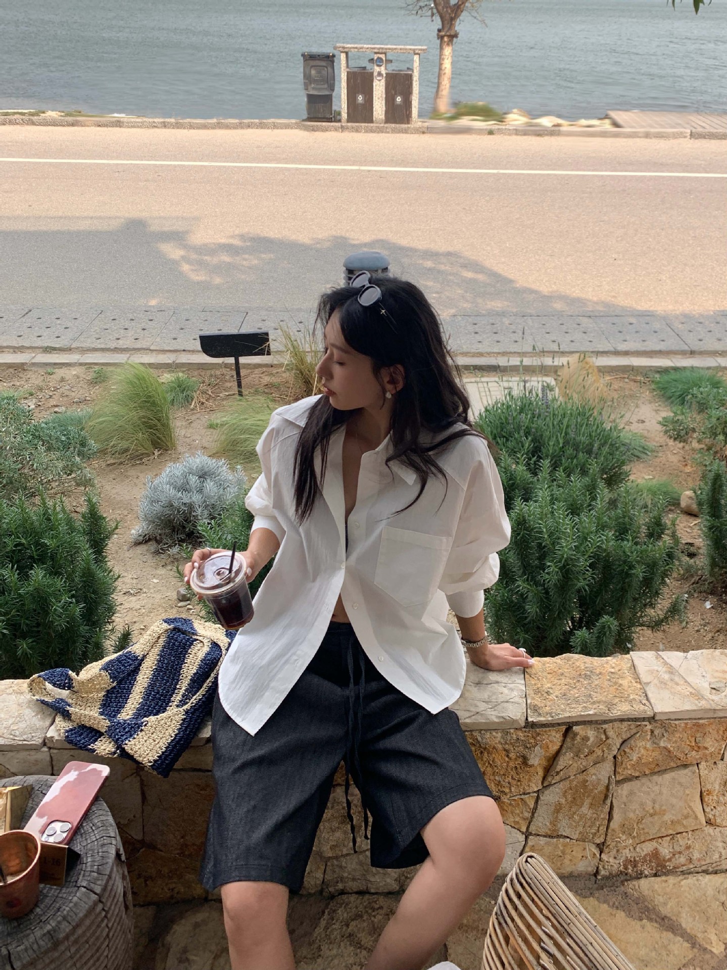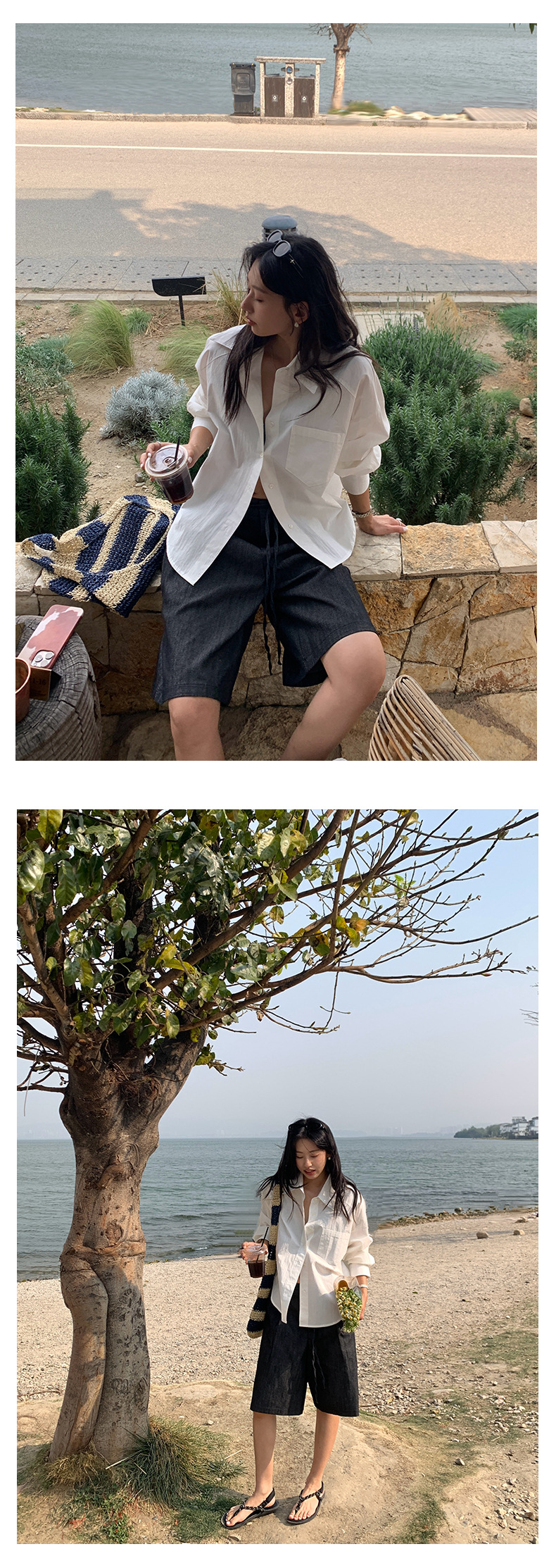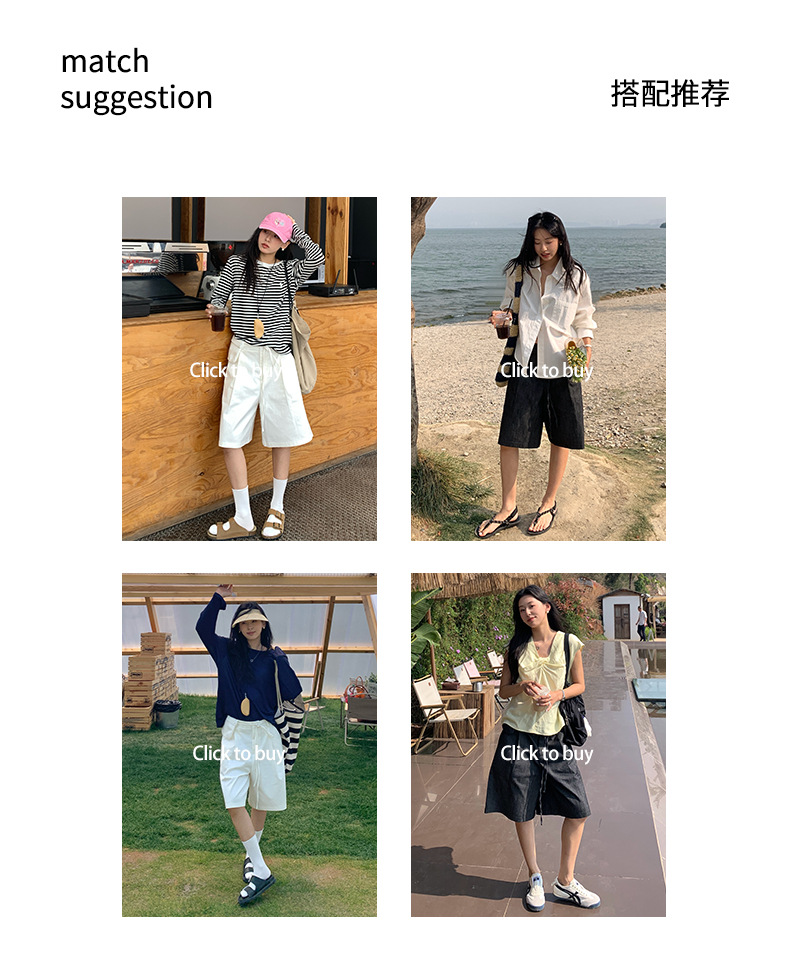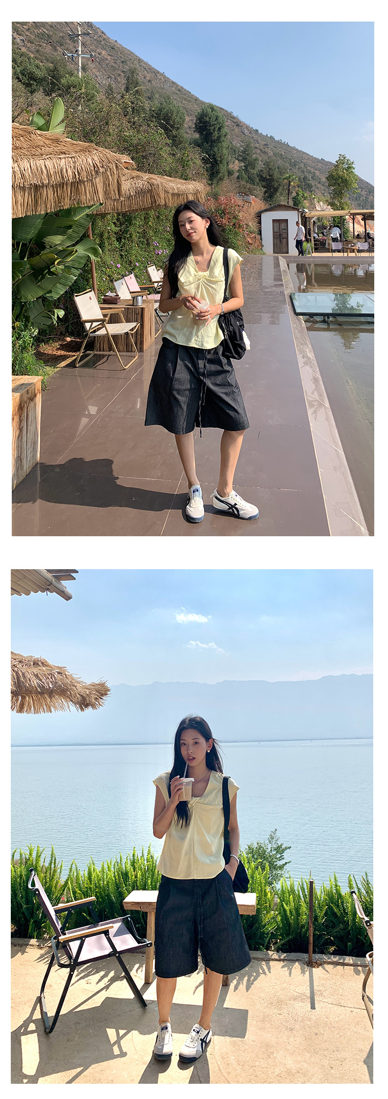 허리 가방 클래식 데님 반바지 황정 높은 허리 넓은 다리 여자 2025 여름 휴식 바지 520438