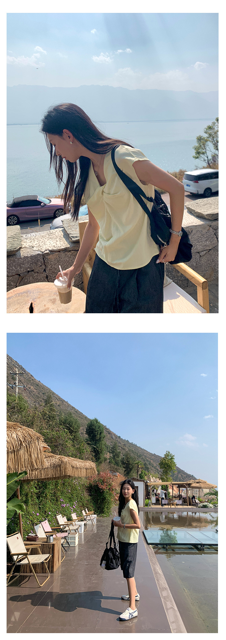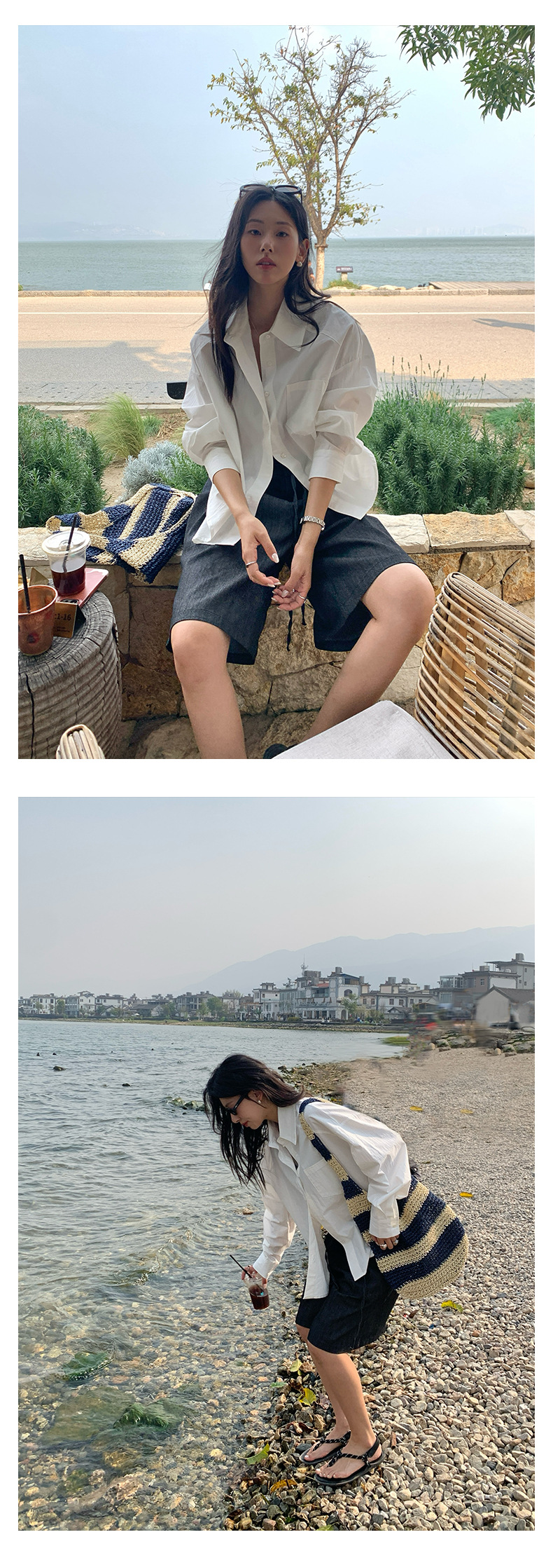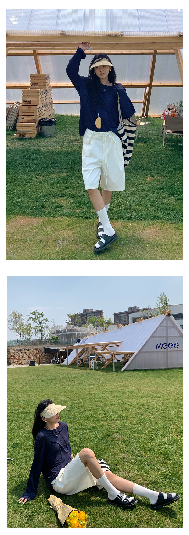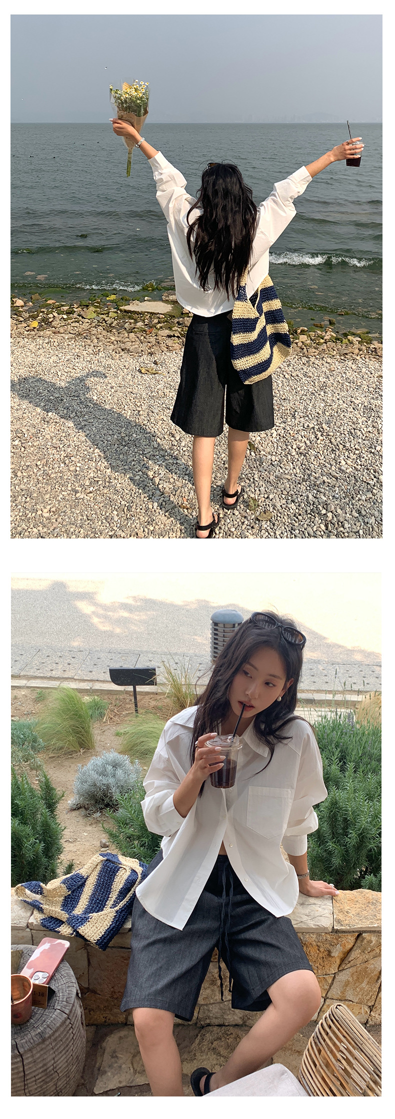 허리 가방 클래식 데님 반바지 황정 높은 허리 넓은 다리 여자 2025 여름 휴식 바지 520438