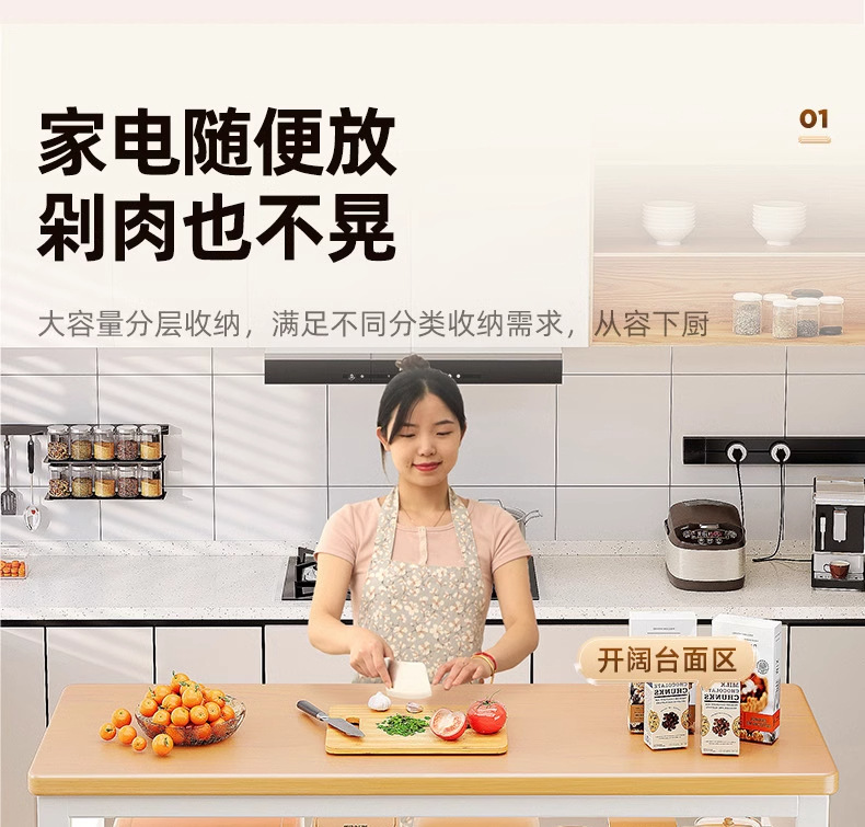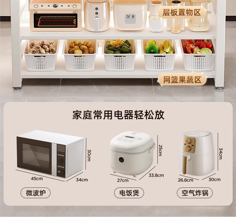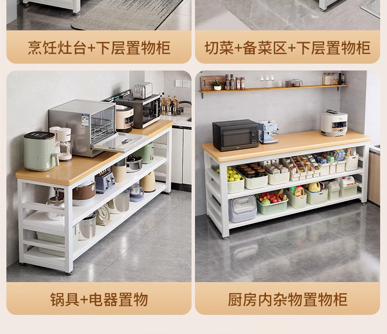 주방 다기능 수납 선반, 바닥형 야채 절단 테이블, 작업대, 다층 전자레인지 냄비 수납 선반, 좁은 측면 캐비닛
