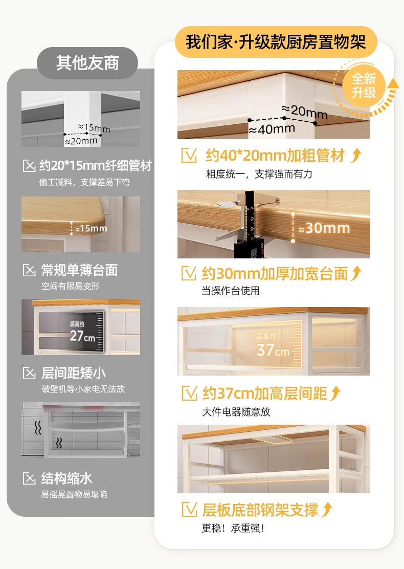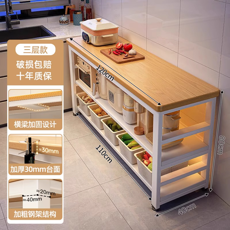 • [두꺼운 30mm 조리대] 유산 통나무색 3단 길이 120 폭 40 높이 80 재료 3배 업그레이드