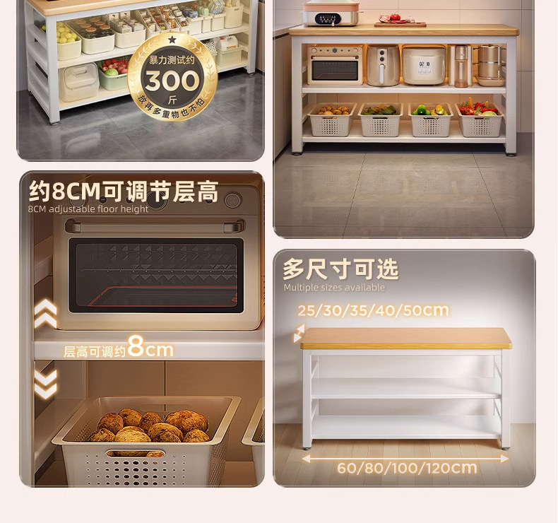 주방 다기능 수납 선반, 바닥형 야채 절단 테이블, 작업대, 다층 전자레인지 냄비 수납 선반, 좁은 측면 캐비닛스토어 가기