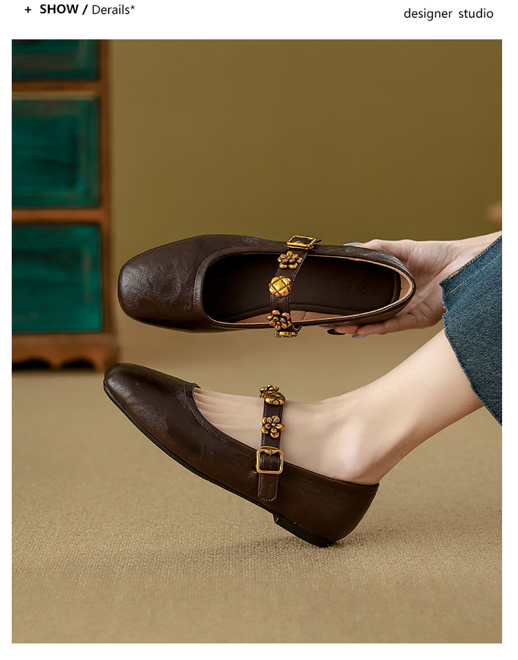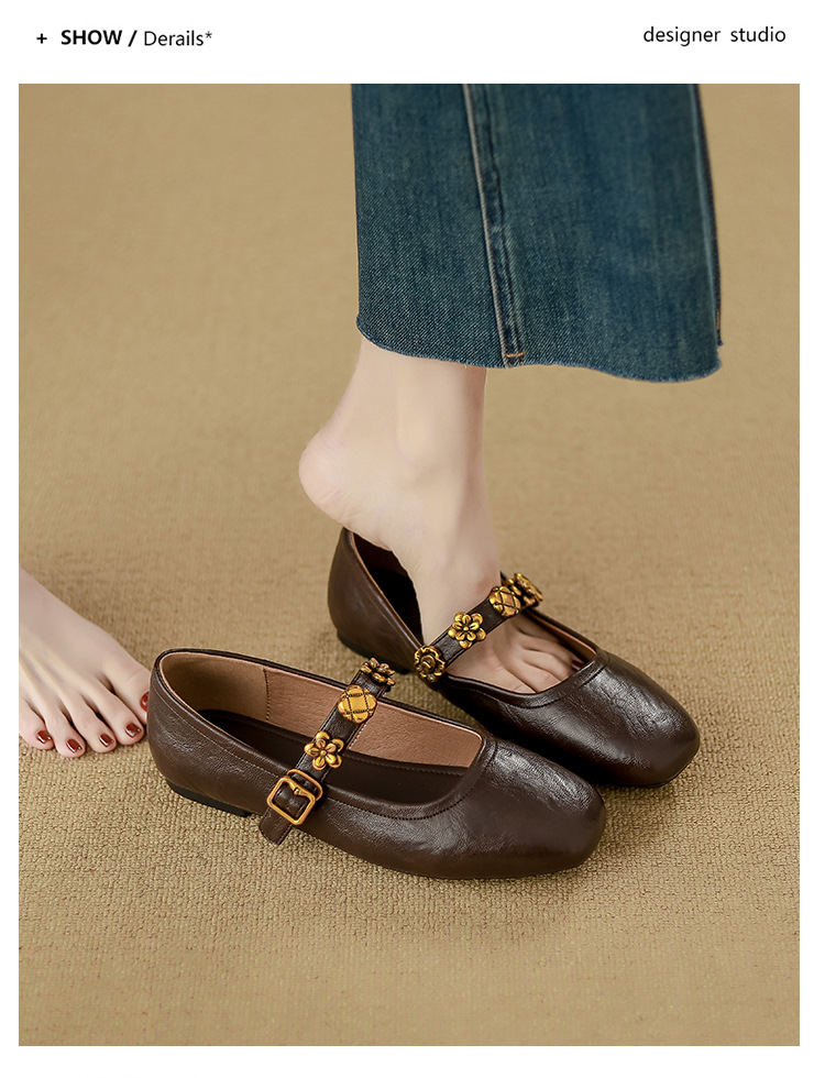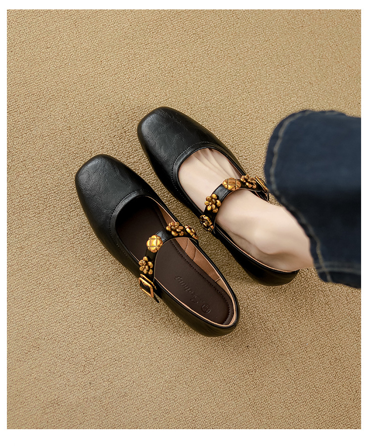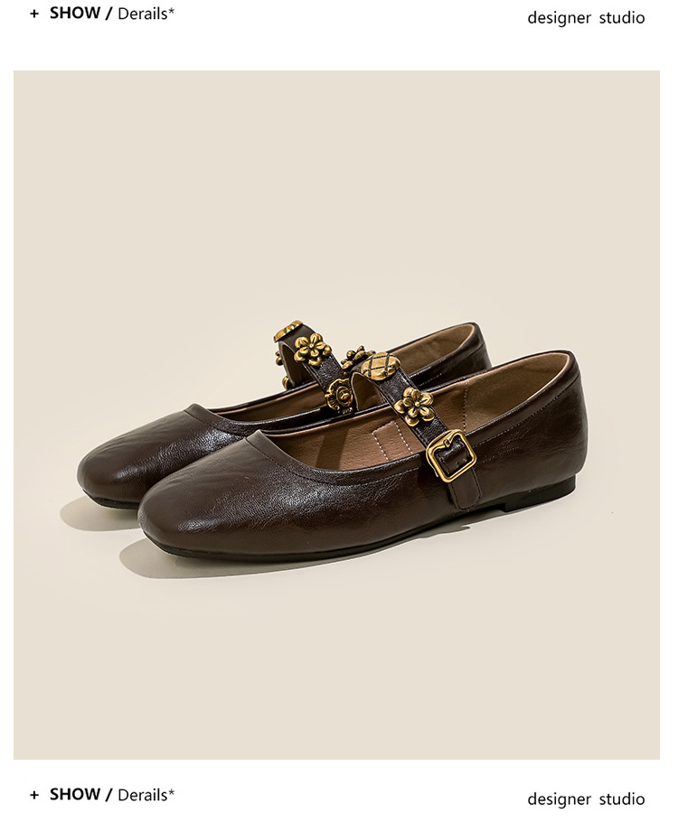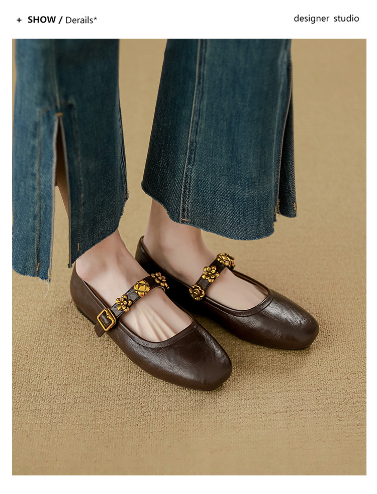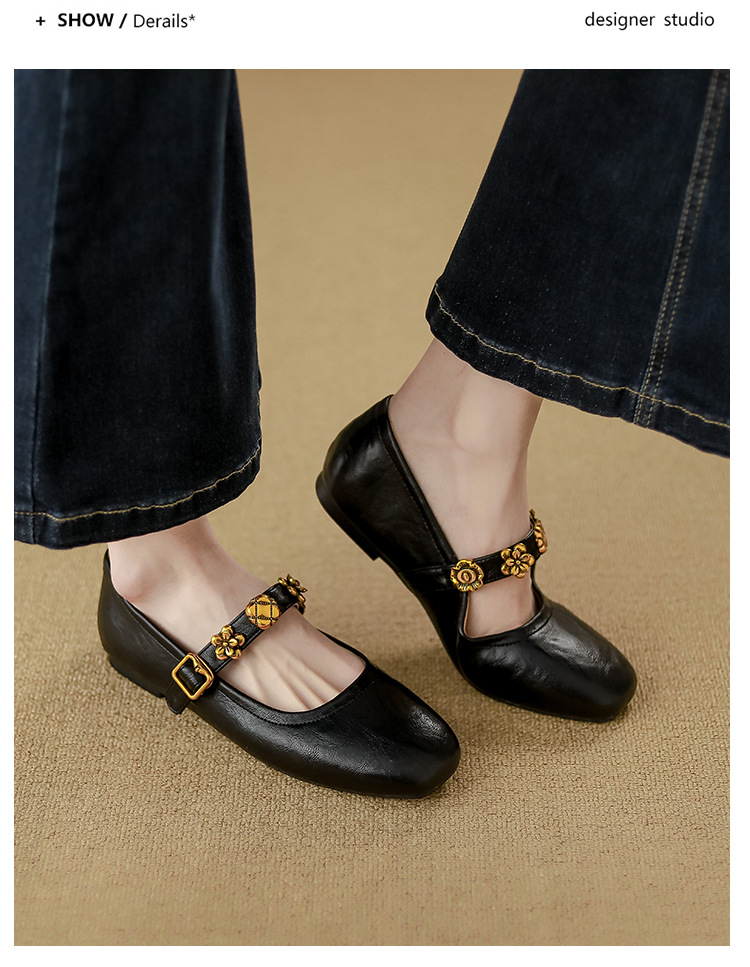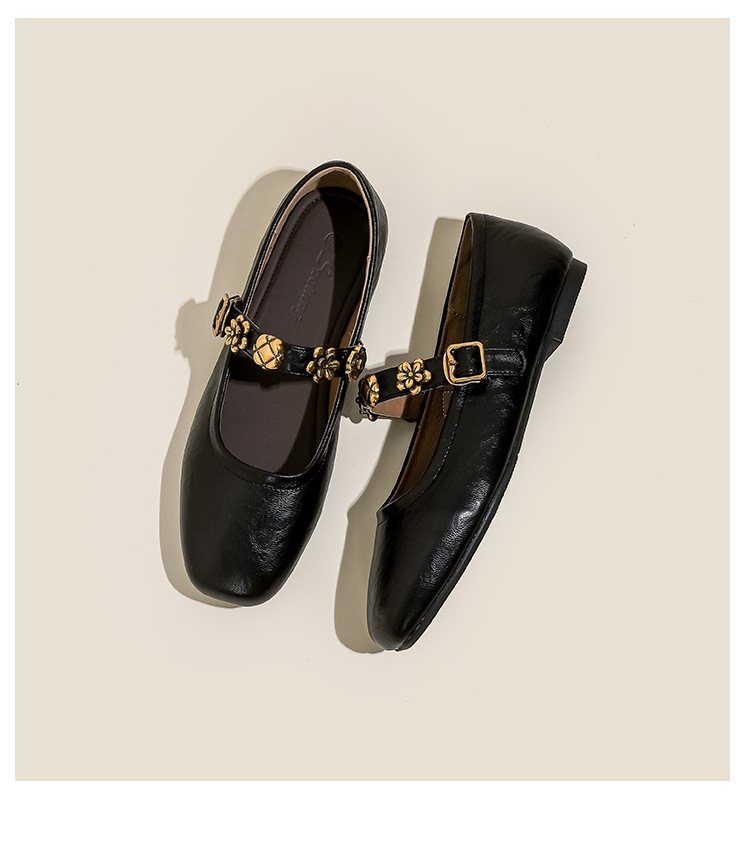 소가죽 버전~여성용 프렌치 싱글 슈즈, 플랫 망고 토 발레 슈즈, 이브닝 스타일 젠틀 슈즈, 레트로 메리 제인 슈즈