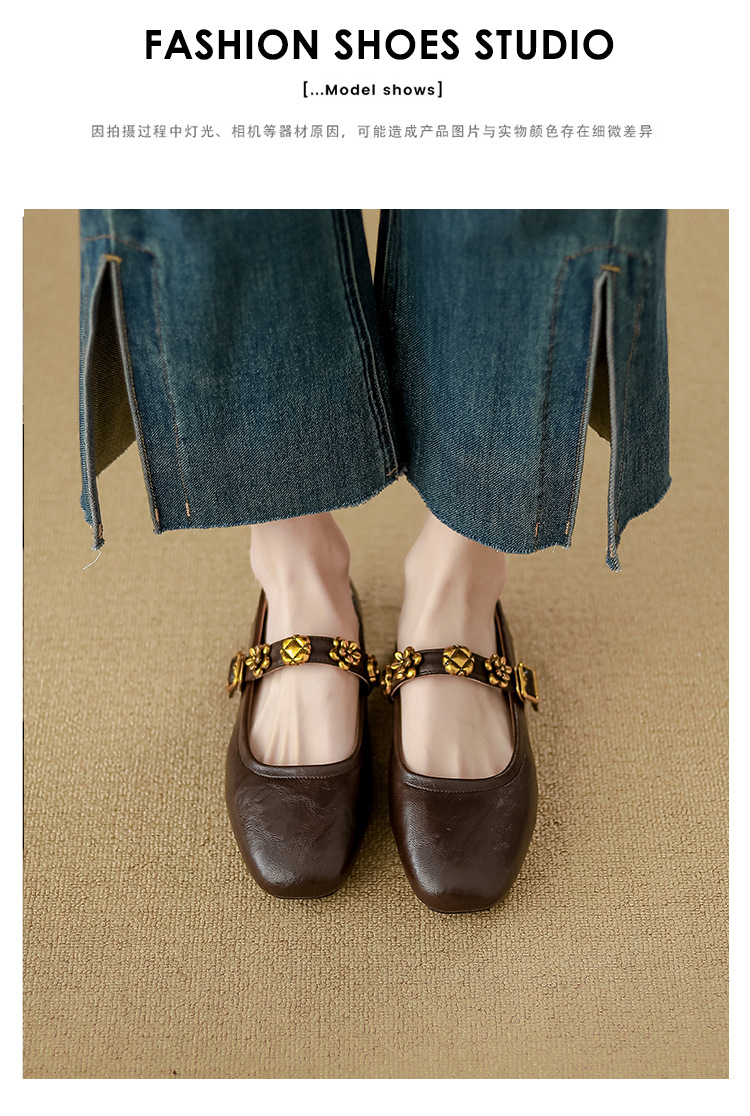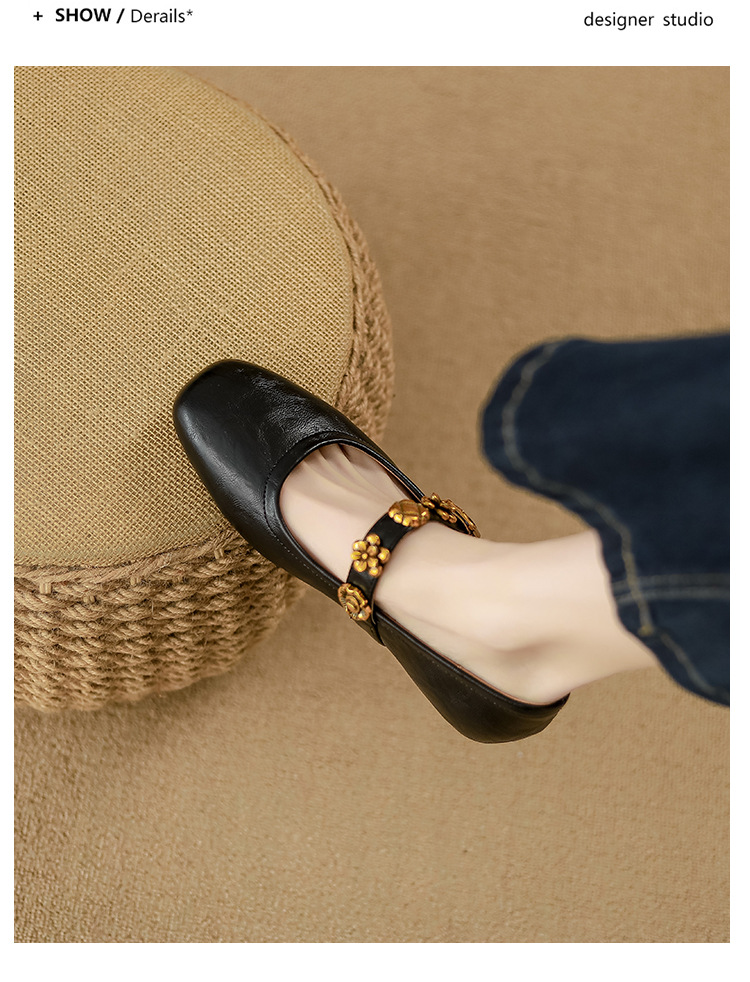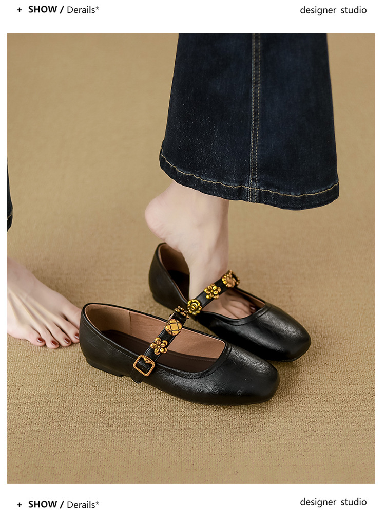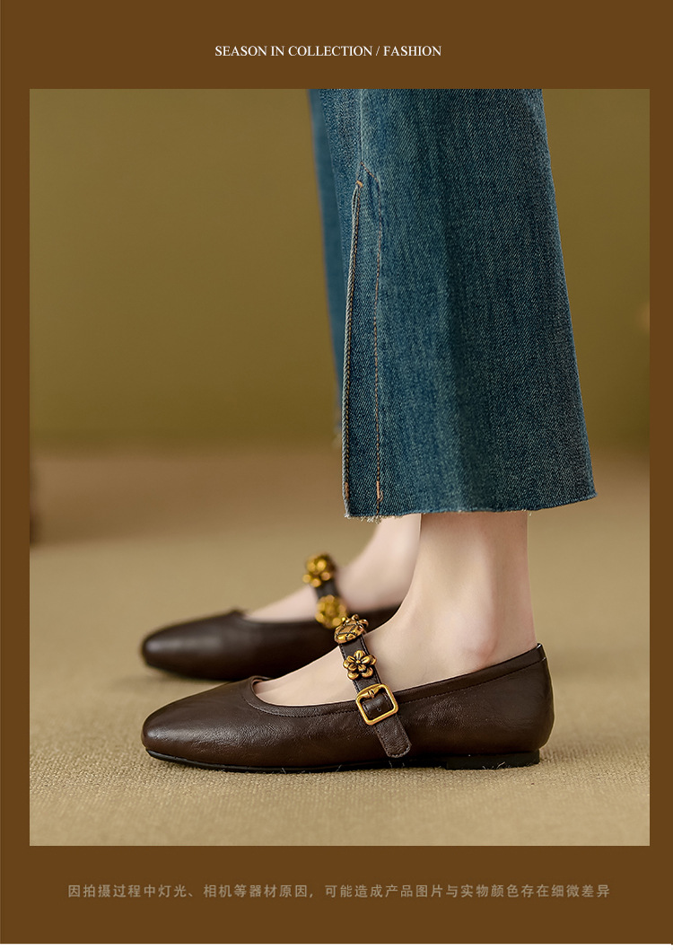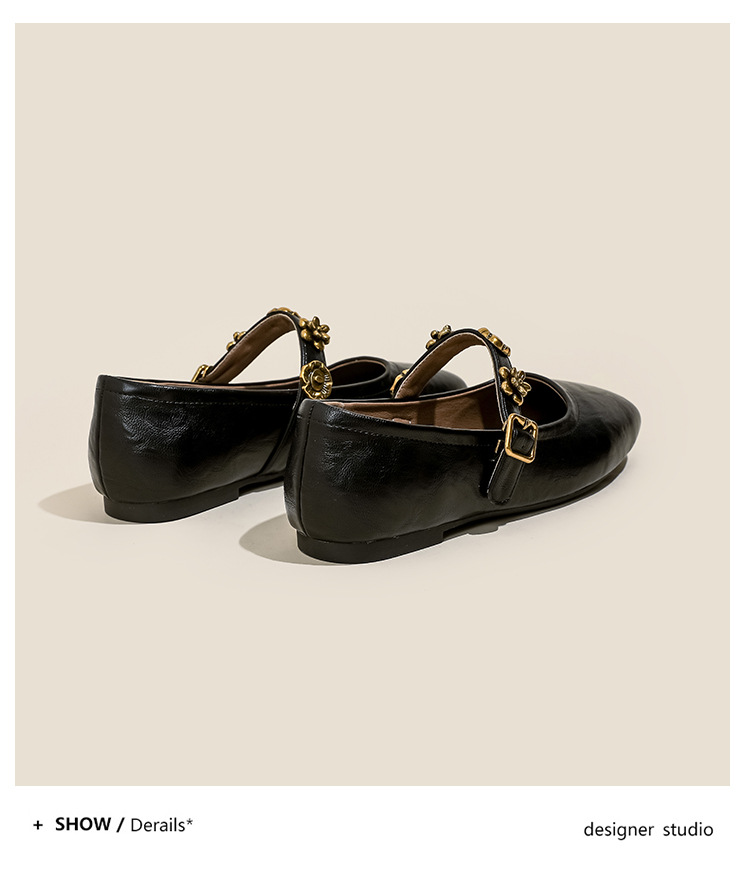 소가죽 버전~여성용 프렌치 싱글 슈즈, 플랫 망고 토 발레 슈즈, 이브닝 스타일 젠틀 슈즈, 레트로 메리 제인 슈즈스토어 가기