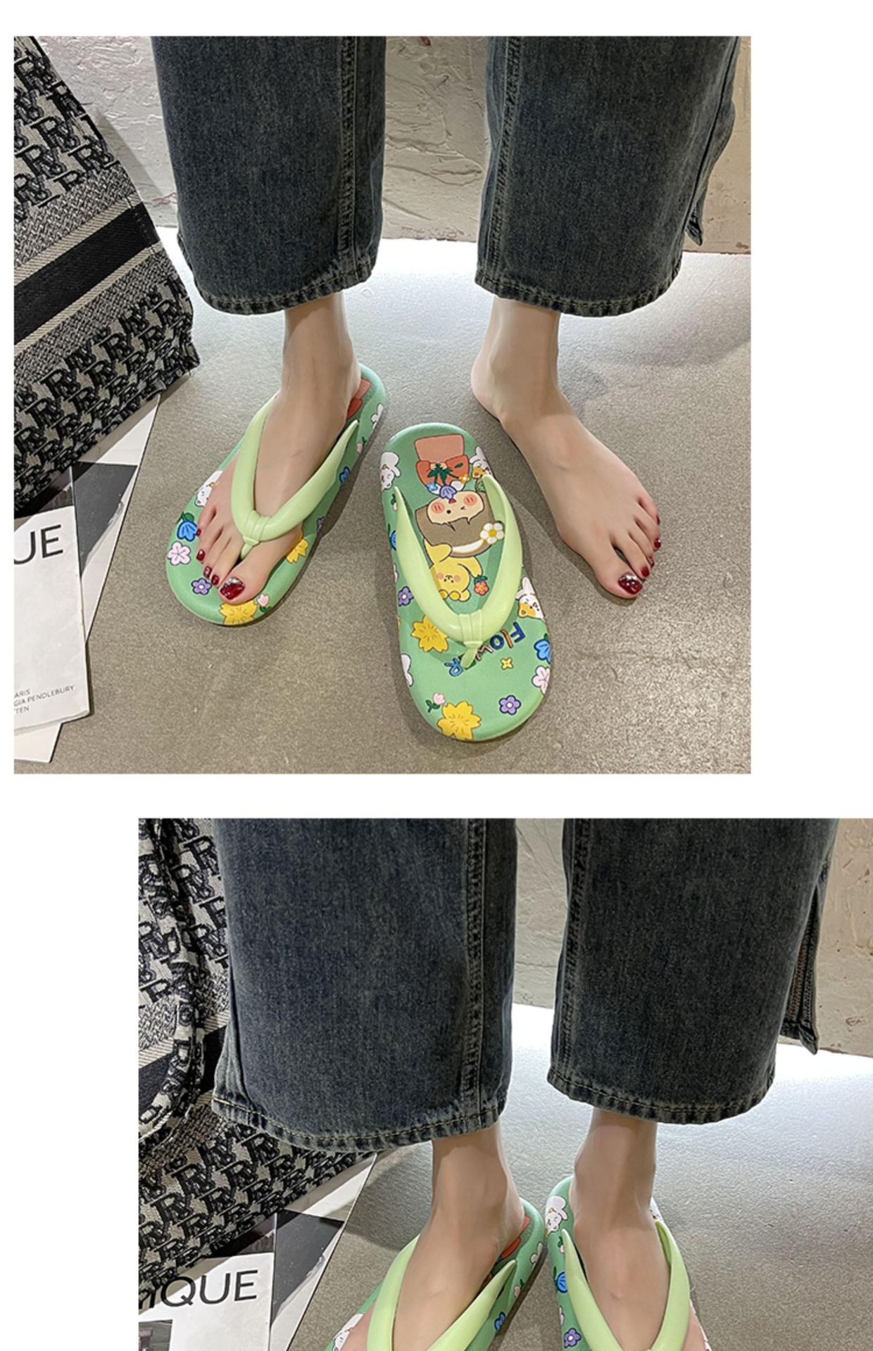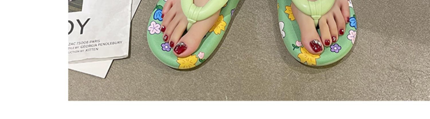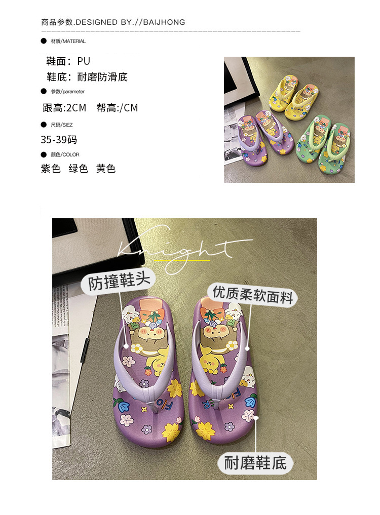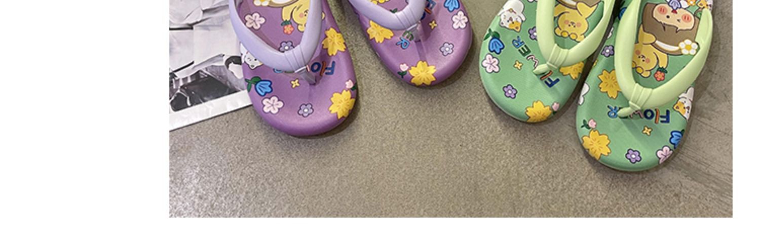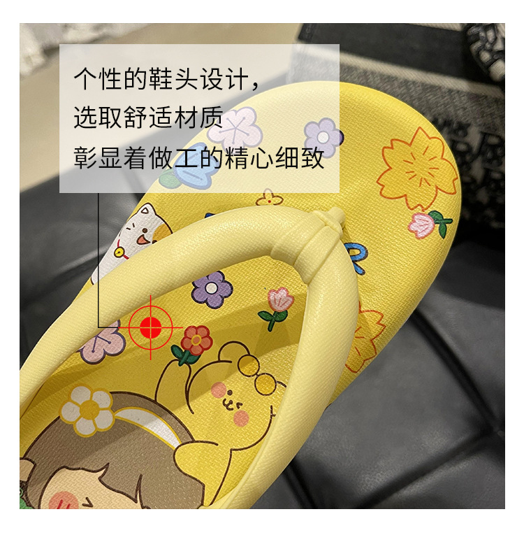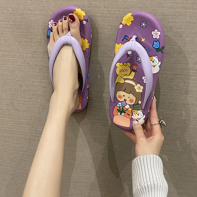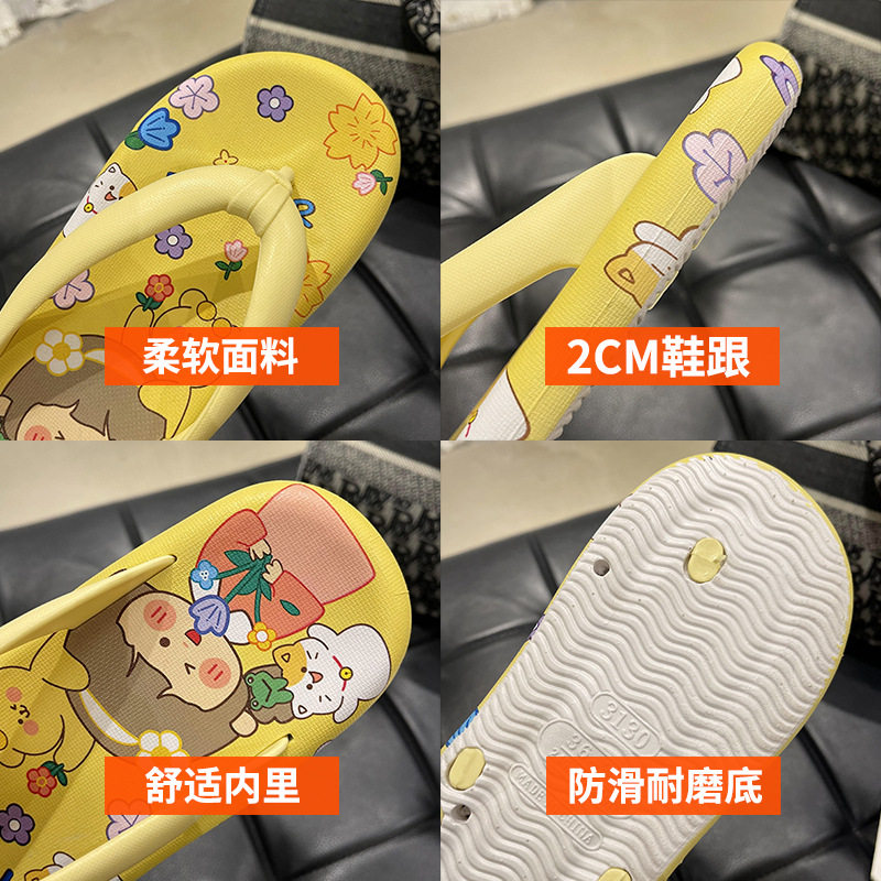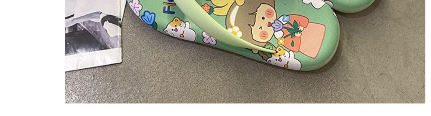 귀여운 만화 플랫 플립 플롭 여성의 여름 외부 착용 비 슬립 패션 올매치 인 사이버 유명 샌들 샌들스토어 가기