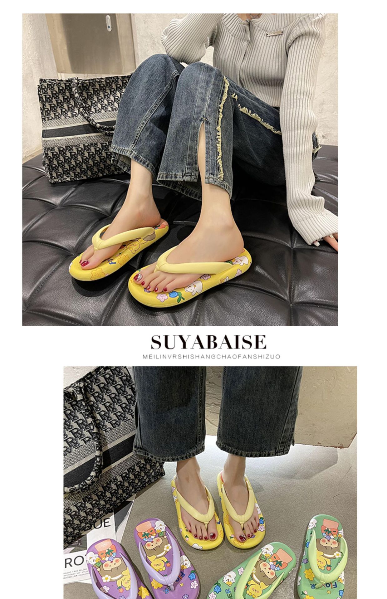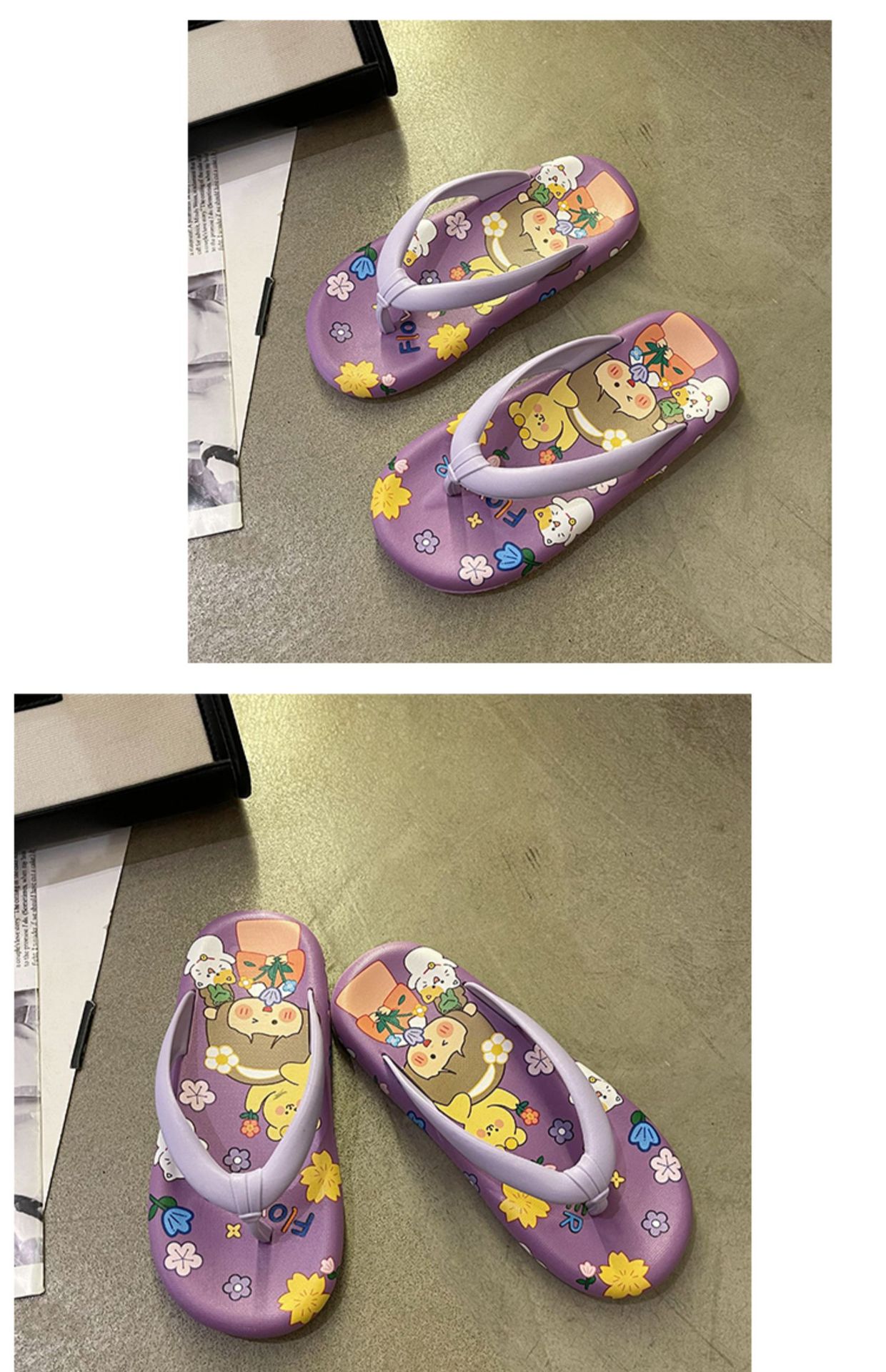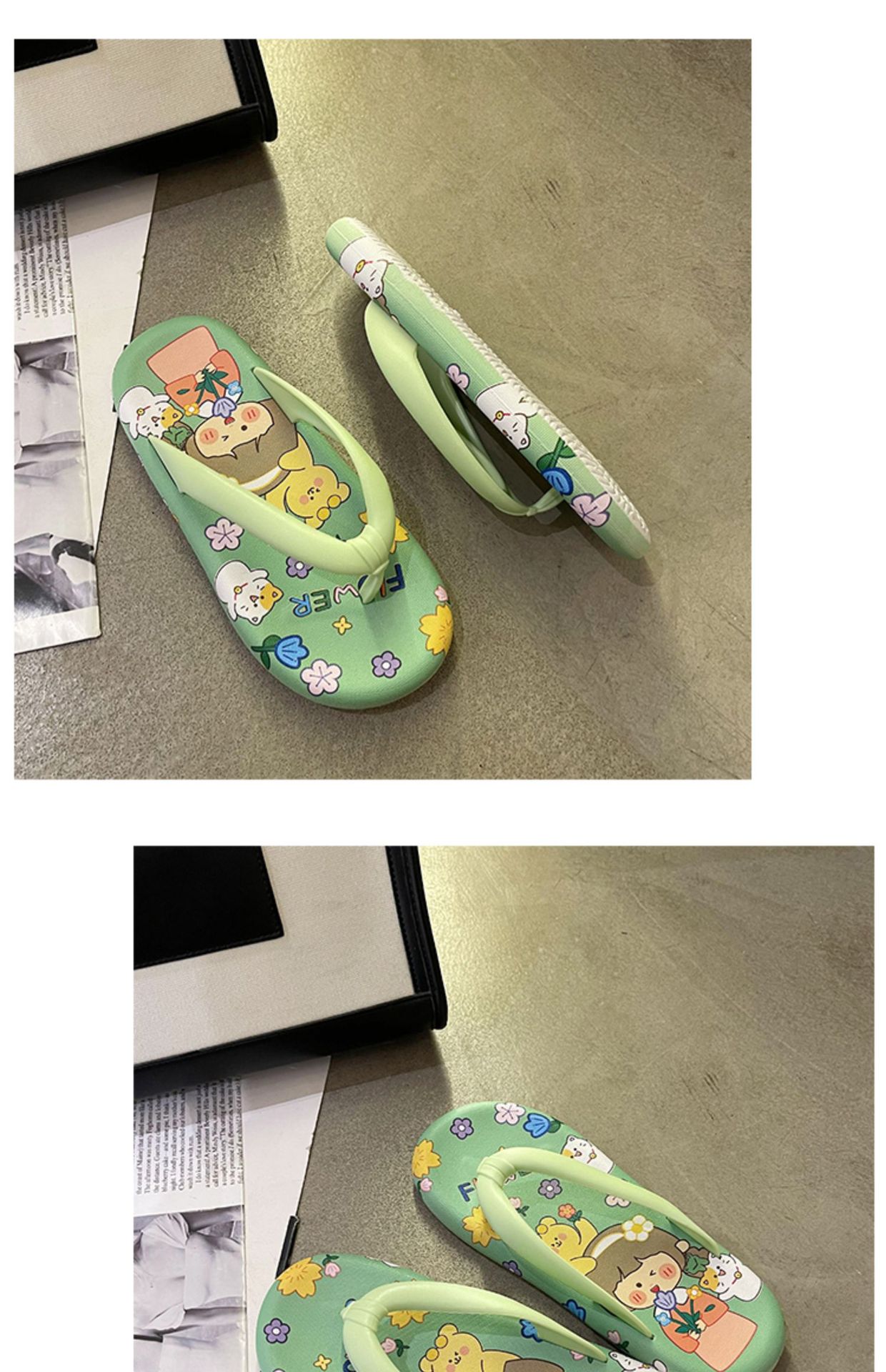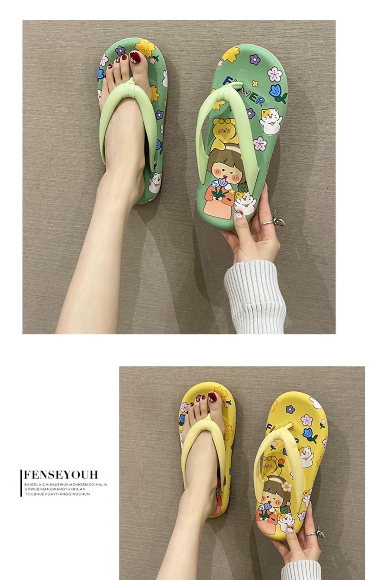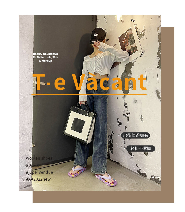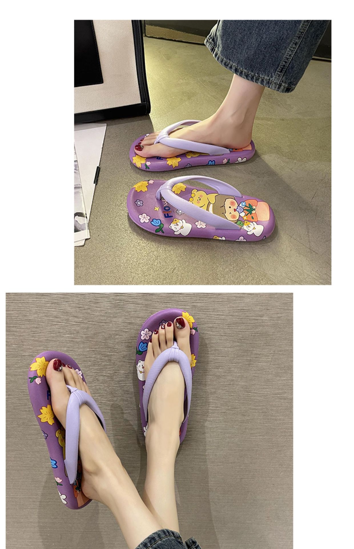 귀여운 만화 플랫 플립 플롭 여성의 여름 외부 착용 비 슬립 패션 올매치 인 사이버 유명 샌들 샌들스토어 가기