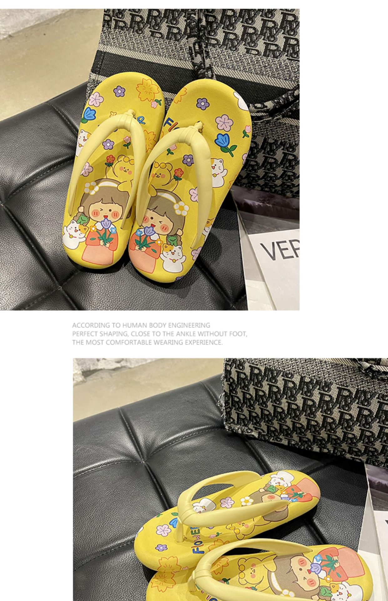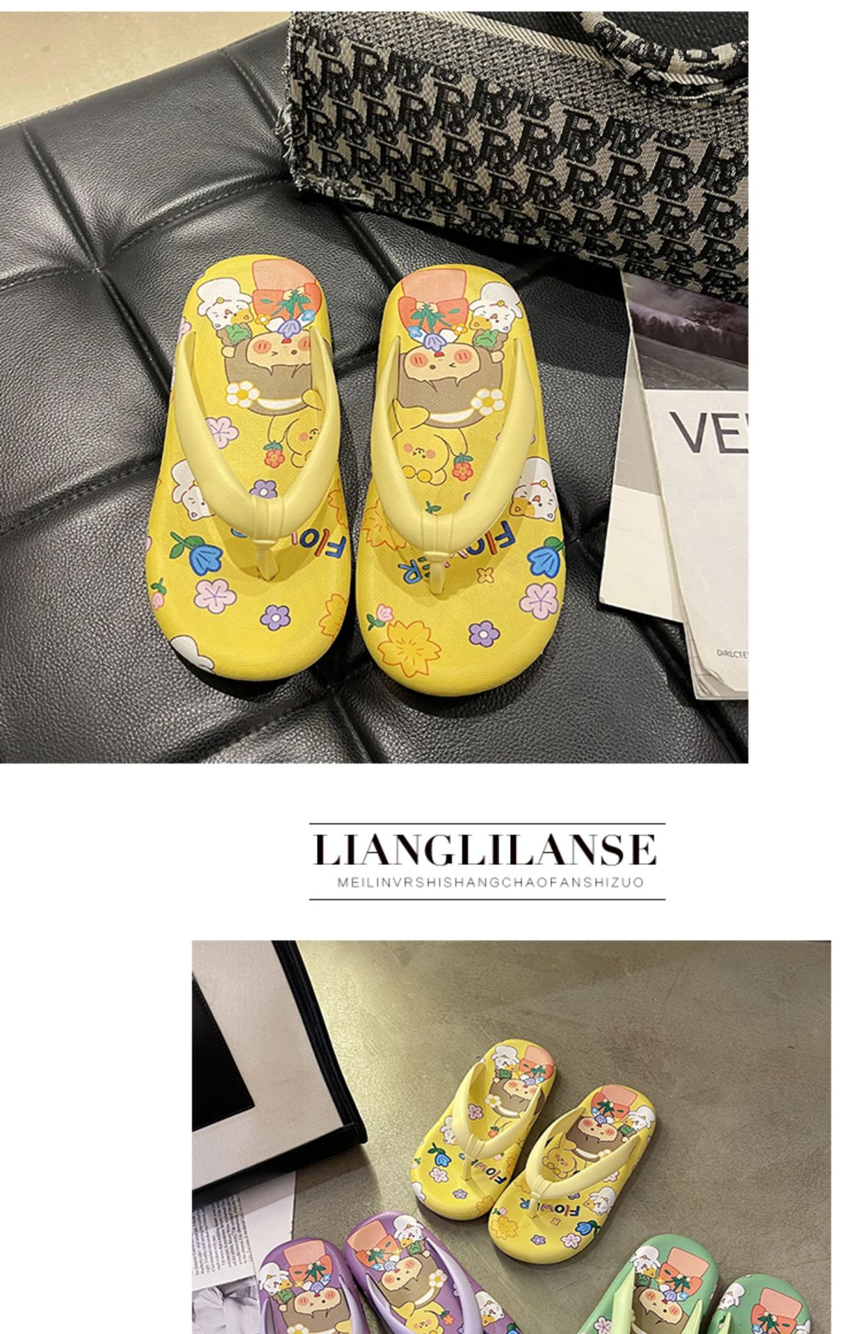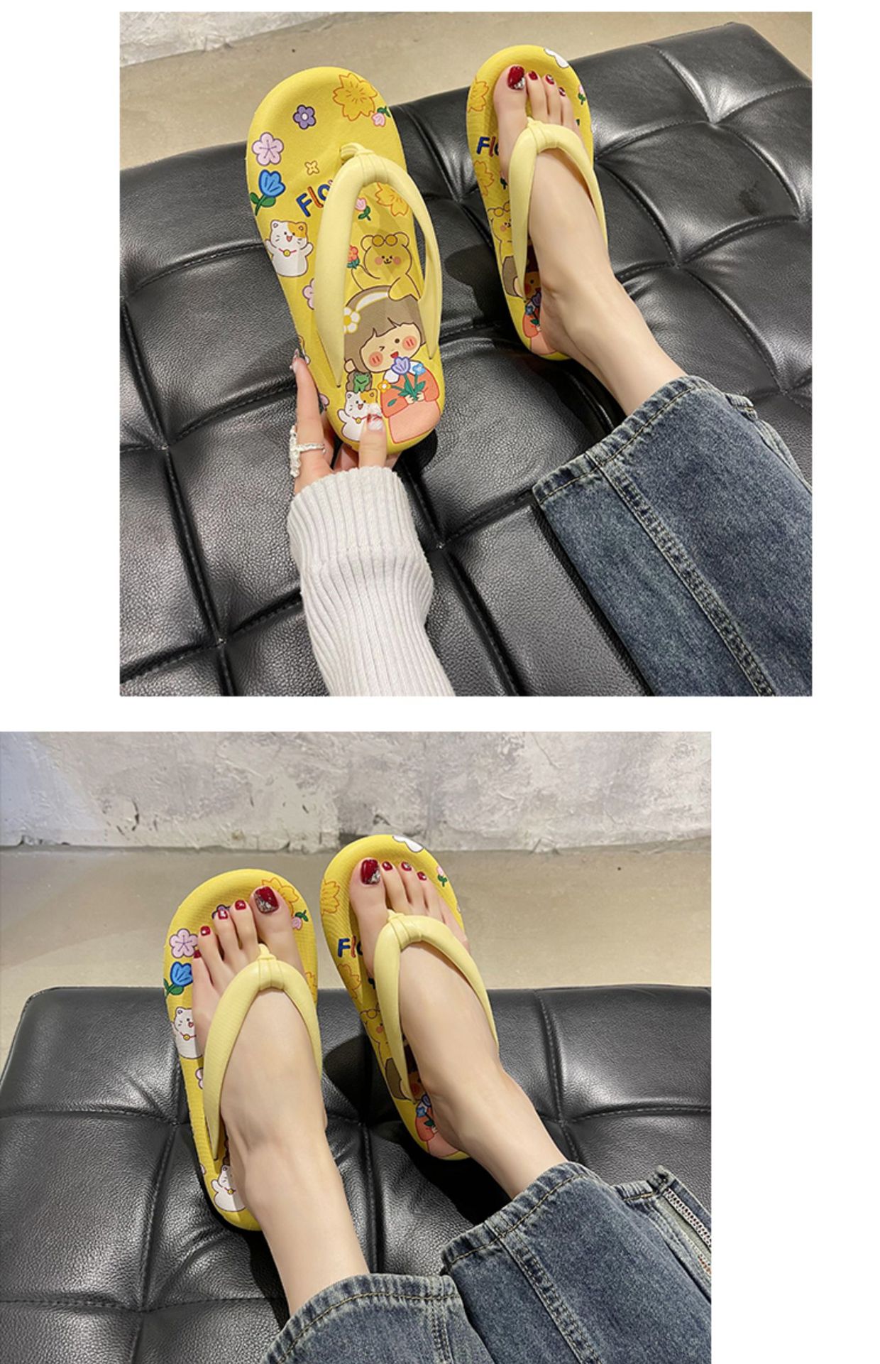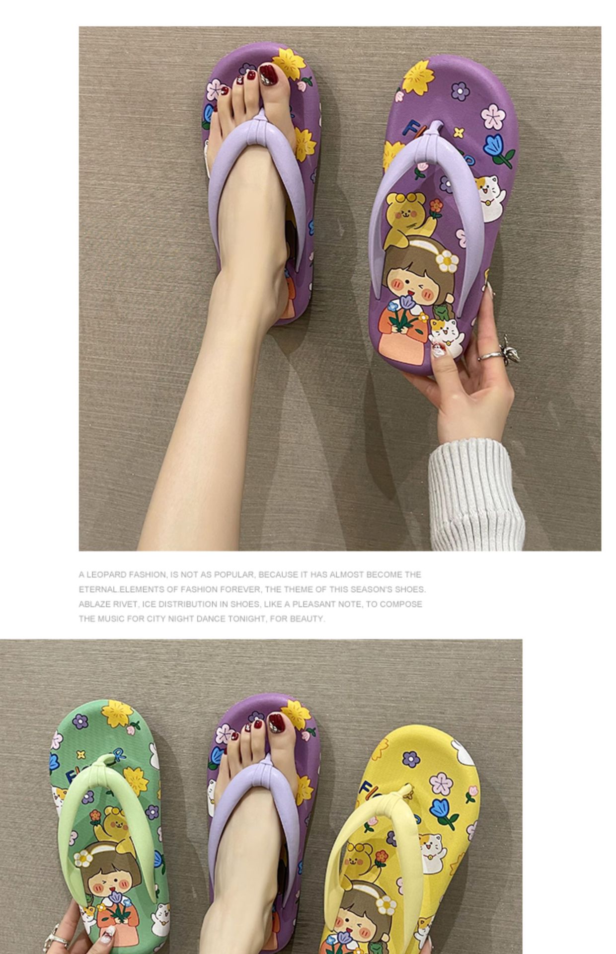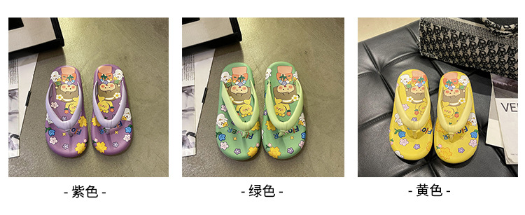 귀여운 만화 플랫 플립 플롭 여성의 여름 외부 착용 비 슬립 패션 올매치 인 사이버 유명 샌들 샌들