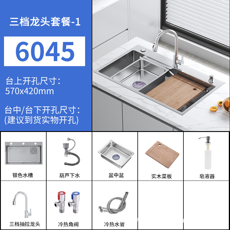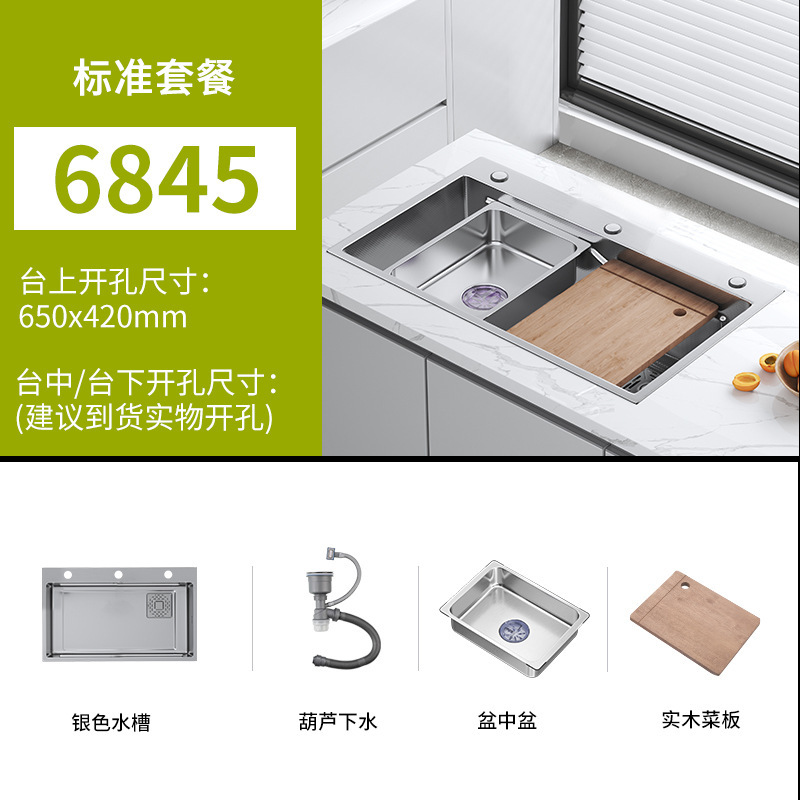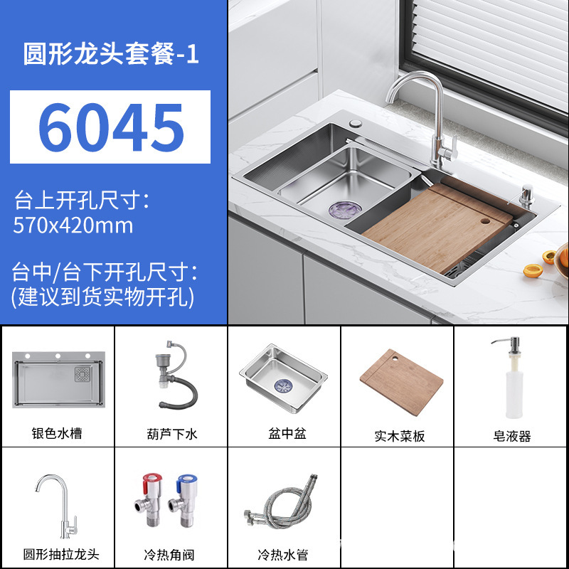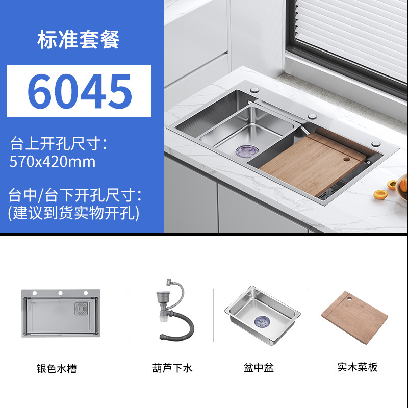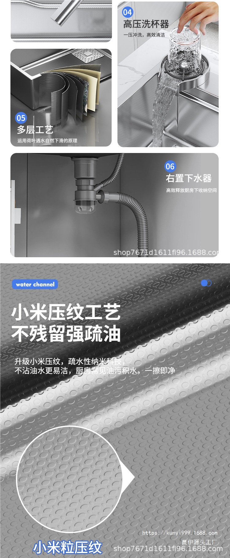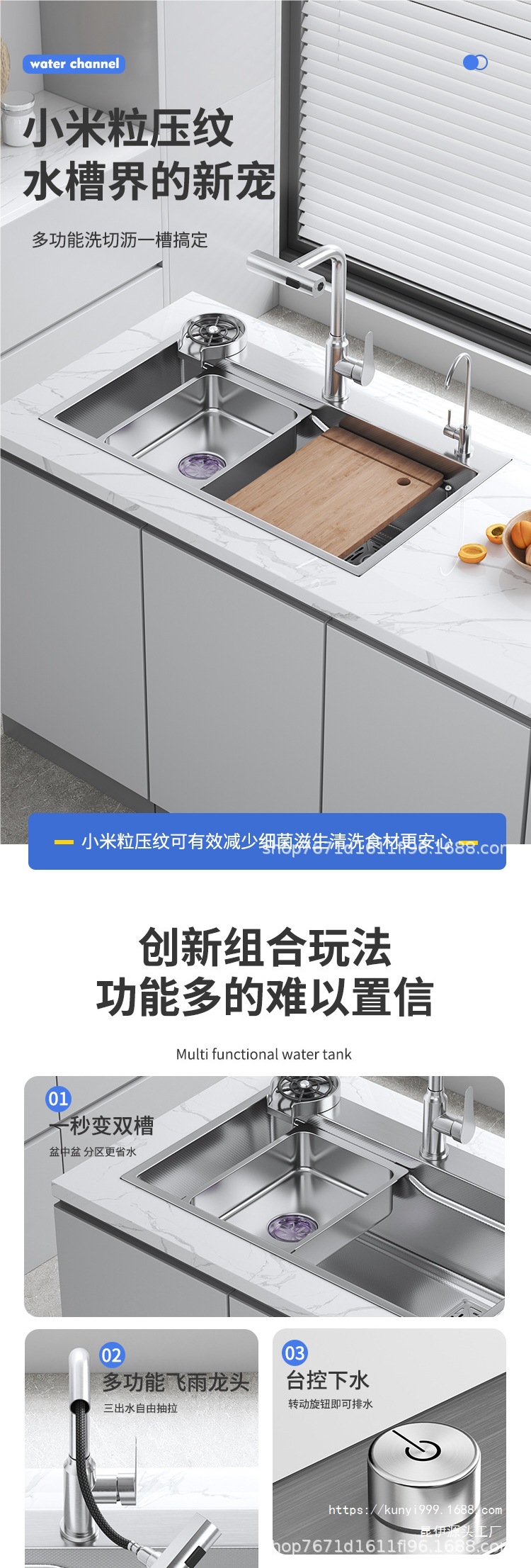 Jiu Mu Wang 작은 쌀 곡물 양각 주방 야채 세척 분지 대형 단일 슬롯 스테인레스 스틸 싱크 테이블 중간 및 낮은 세척 싱크 가구스토어 가기