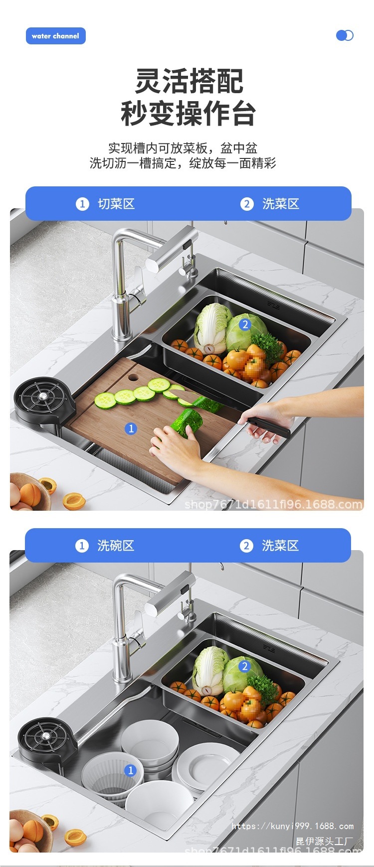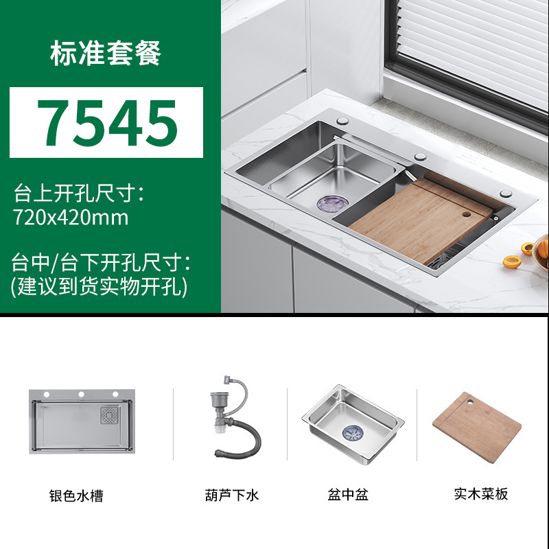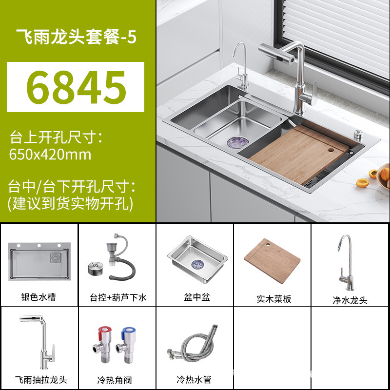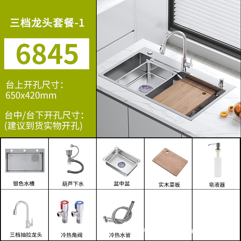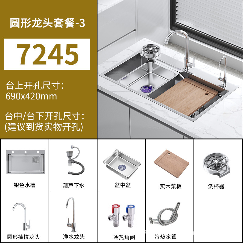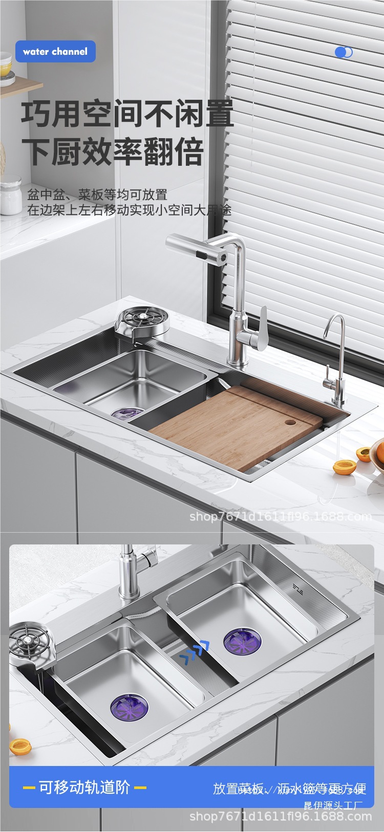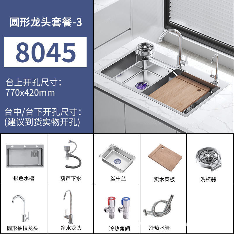 Jiu Mu Wang 작은 쌀 곡물 양각 주방 야채 세척 분지 대형 단일 슬롯 스테인레스 스틸 싱크 테이블 중간 및 낮은 세척 싱크 가구스토어 가기