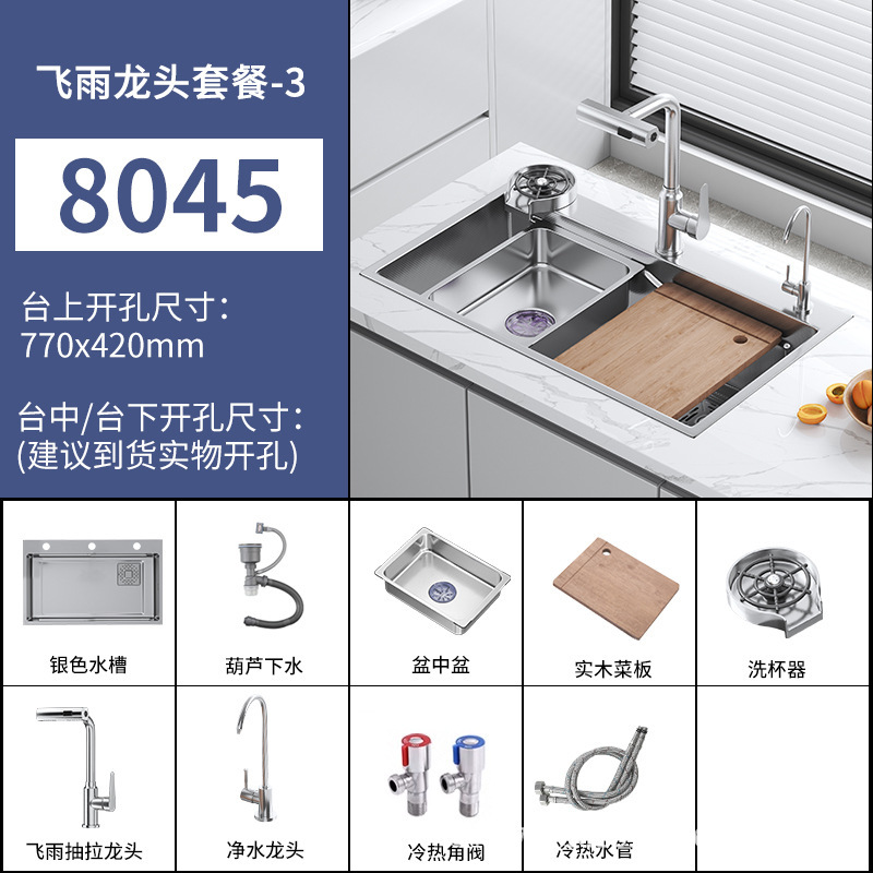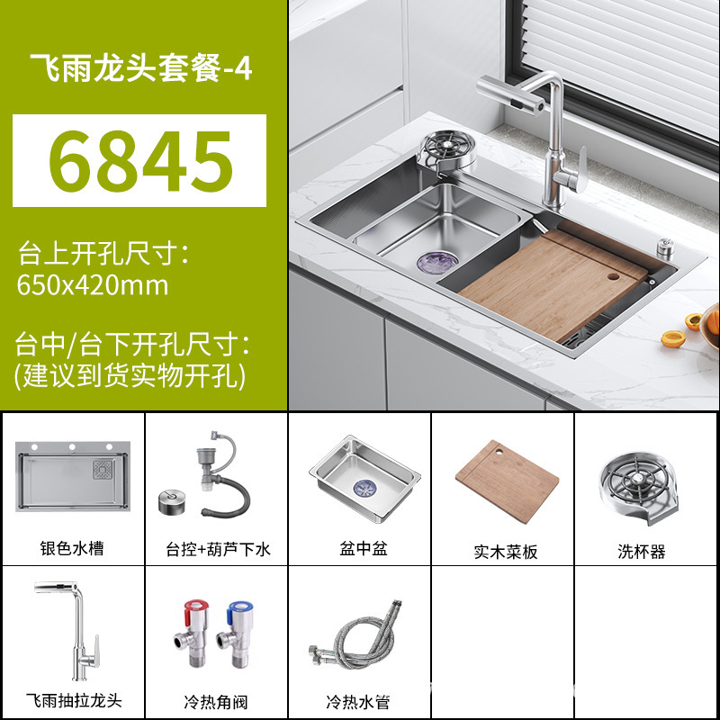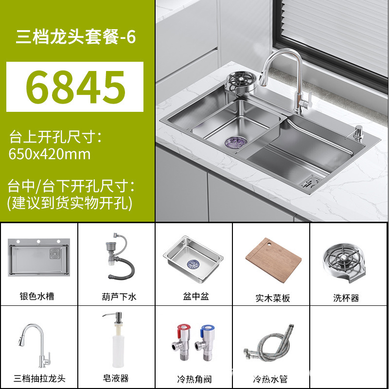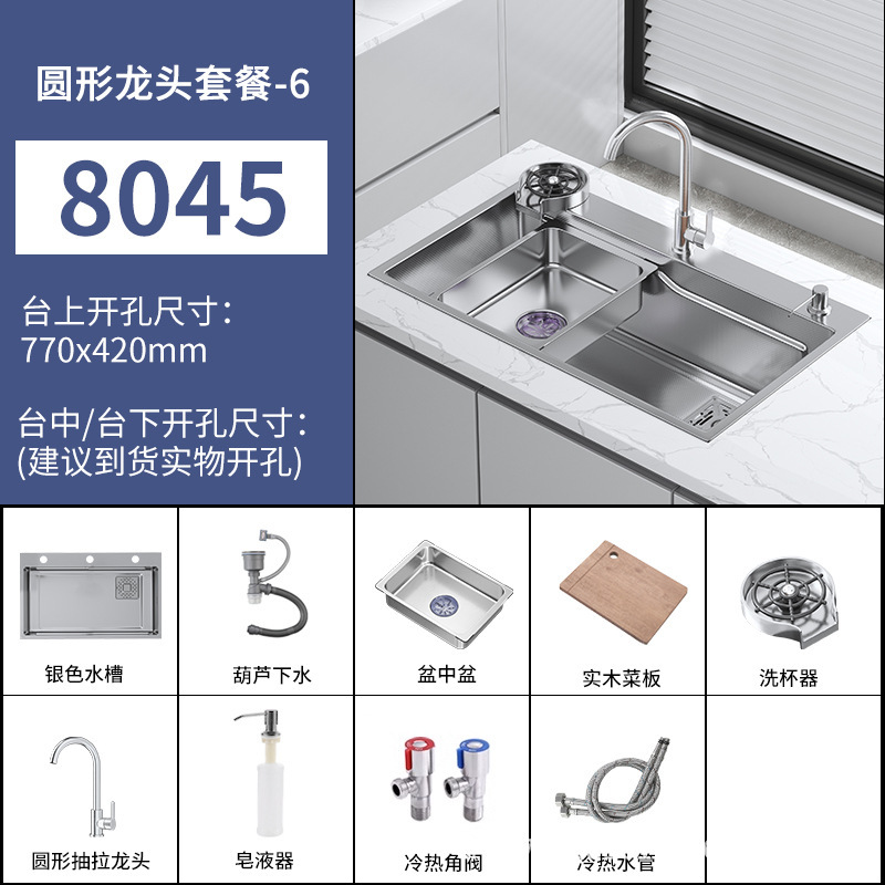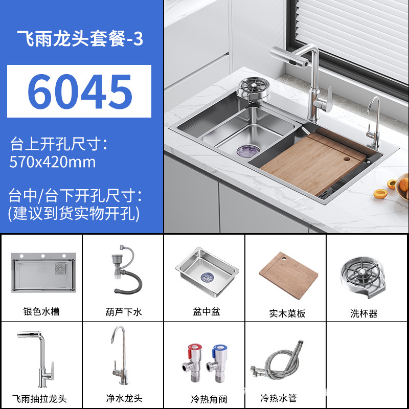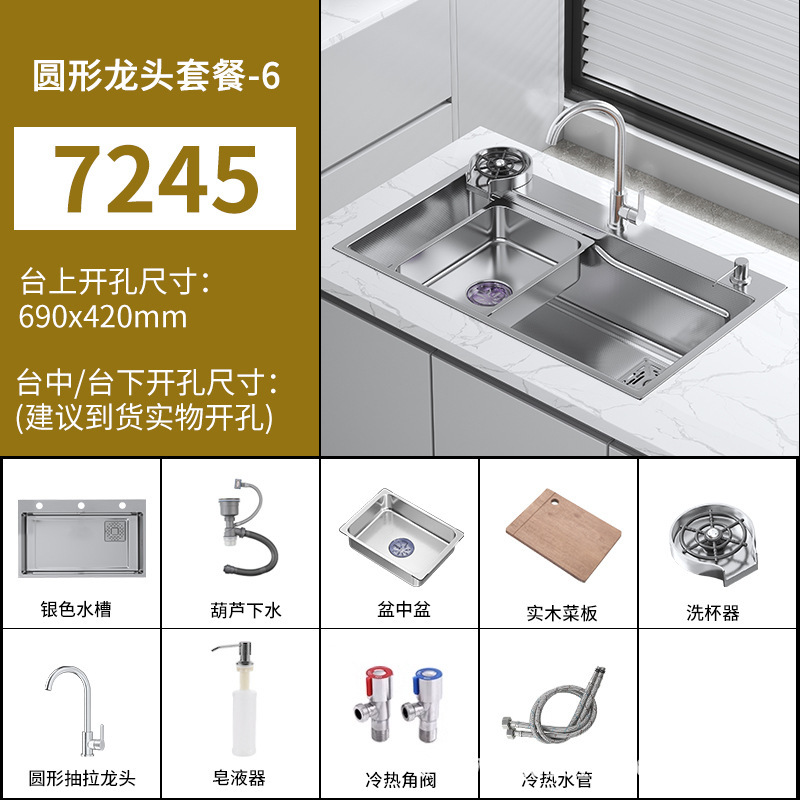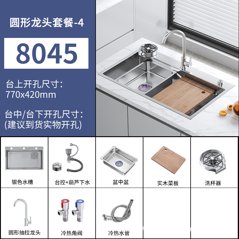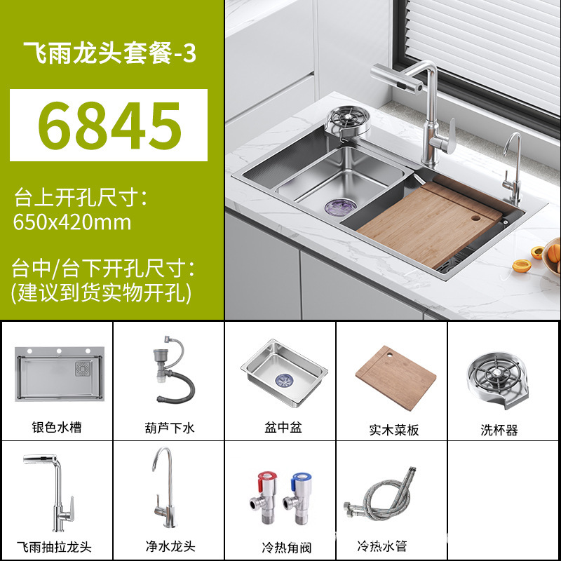 Jiu Mu Wang 작은 쌀 곡물 양각 주방 야채 세척 분지 대형 단일 슬롯 스테인레스 스틸 싱크 테이블 중간 및 낮은 세척 싱크 가구스토어 가기