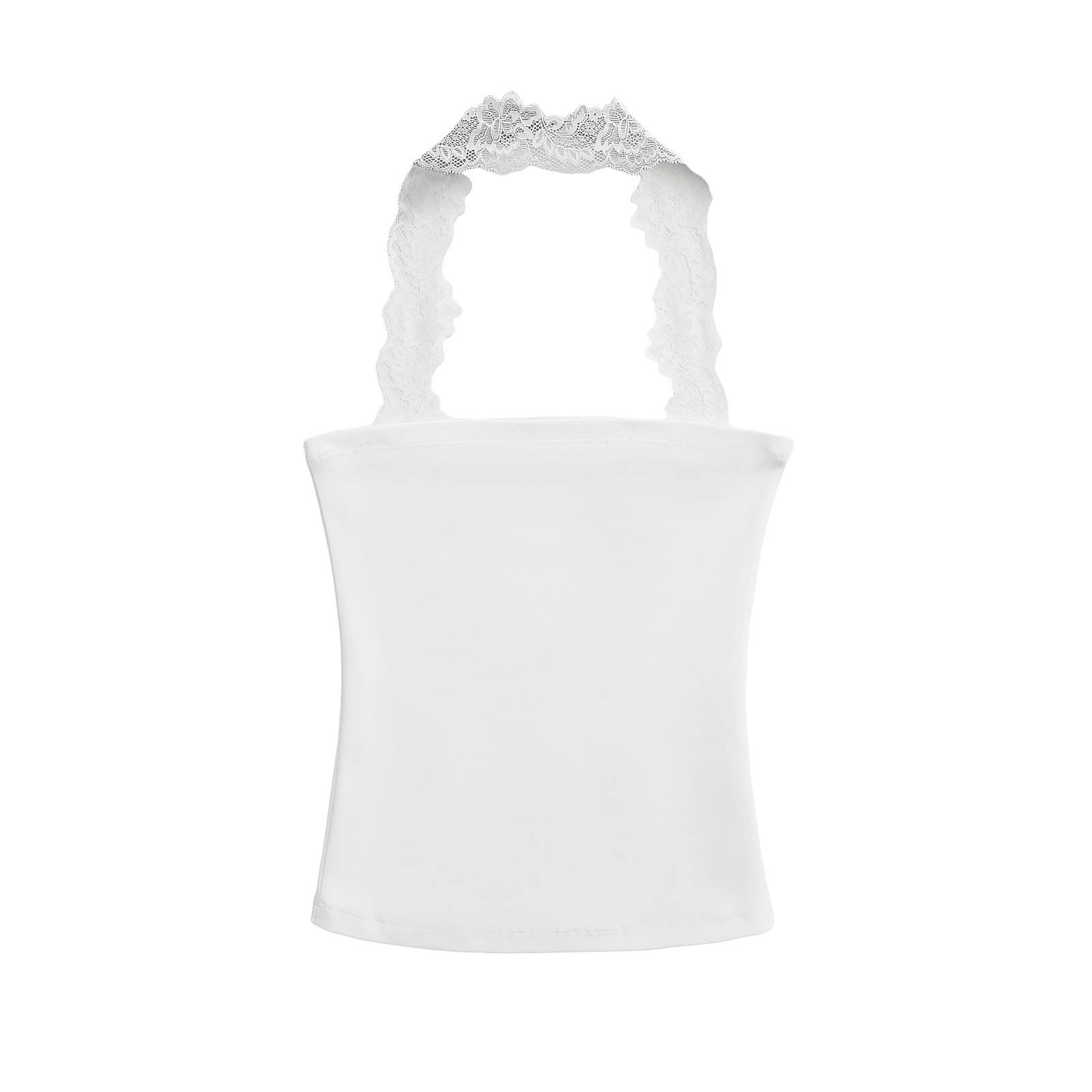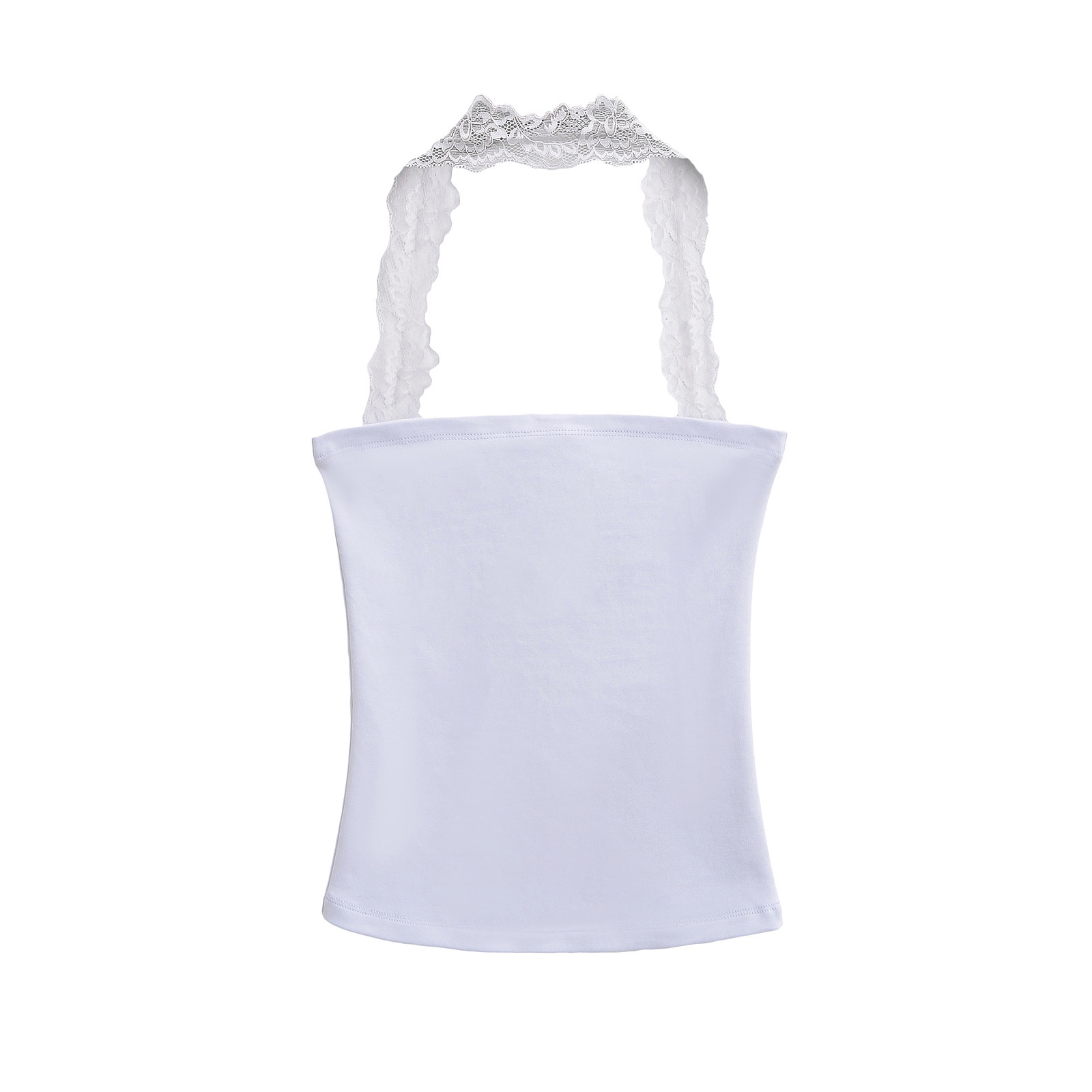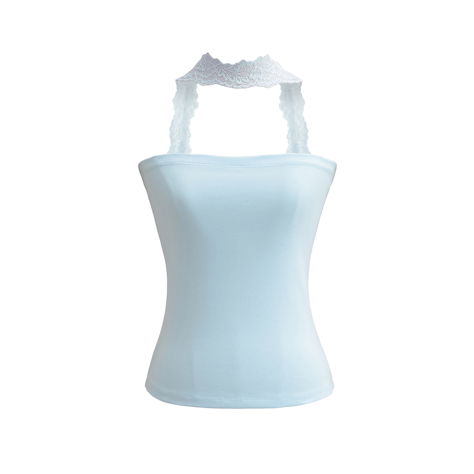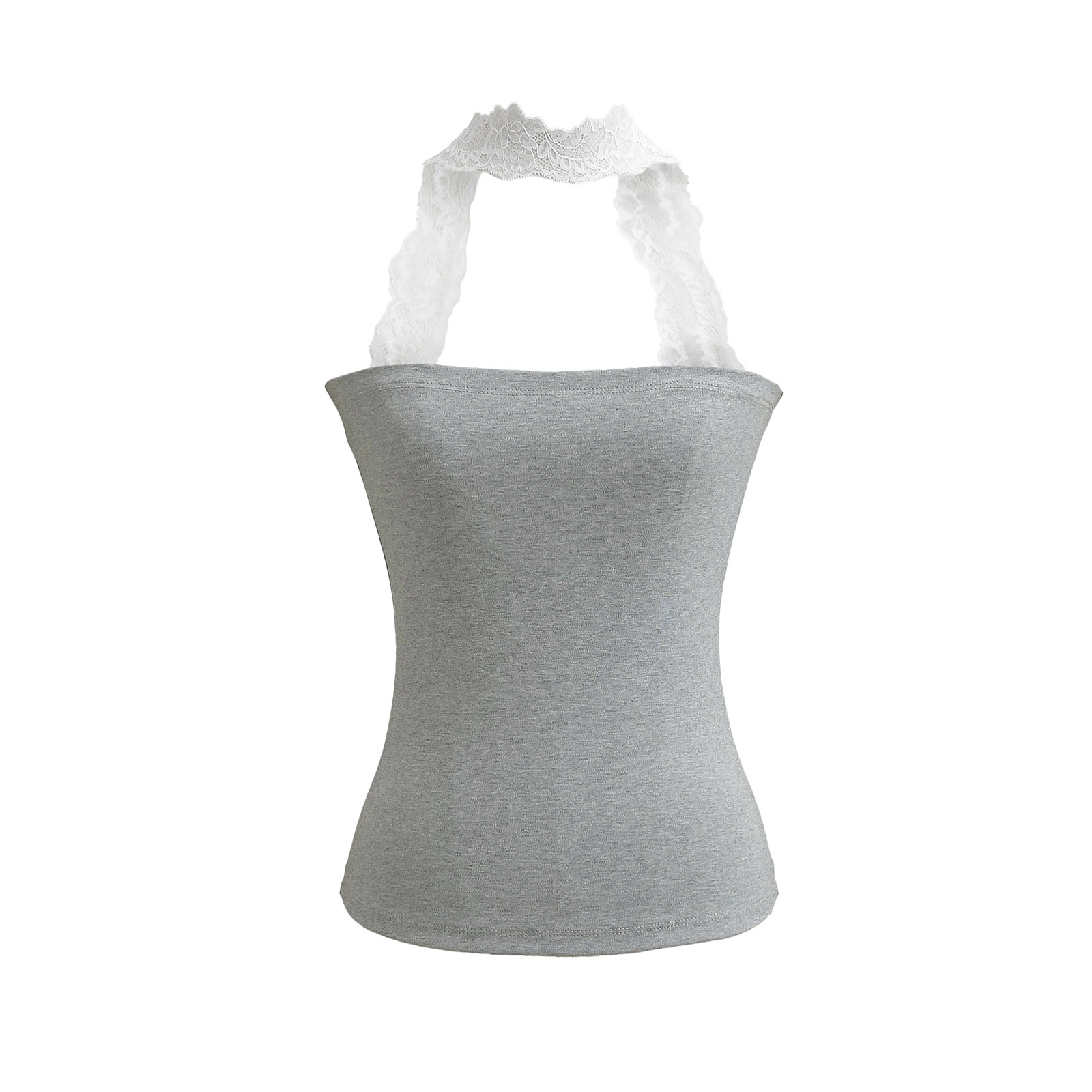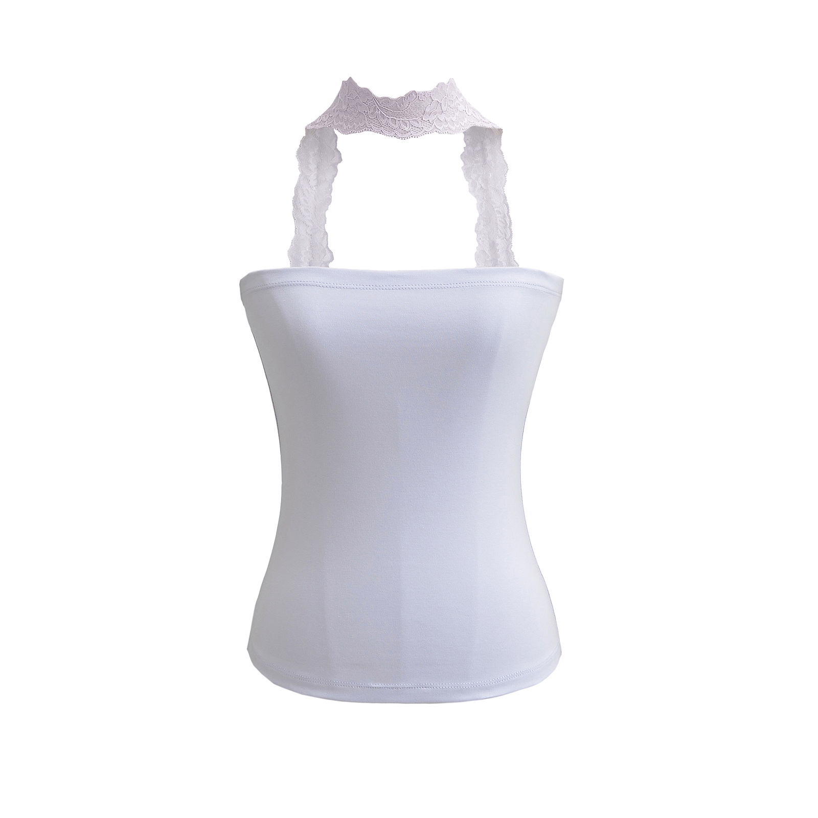 2025 Summer Pure는 레이스 교수형 목 슬림 핏 스트랩리스 조끼 여성의 내부 짧은 타이트 카미 솔 트렌디 탑을 입고 싶어합니다.