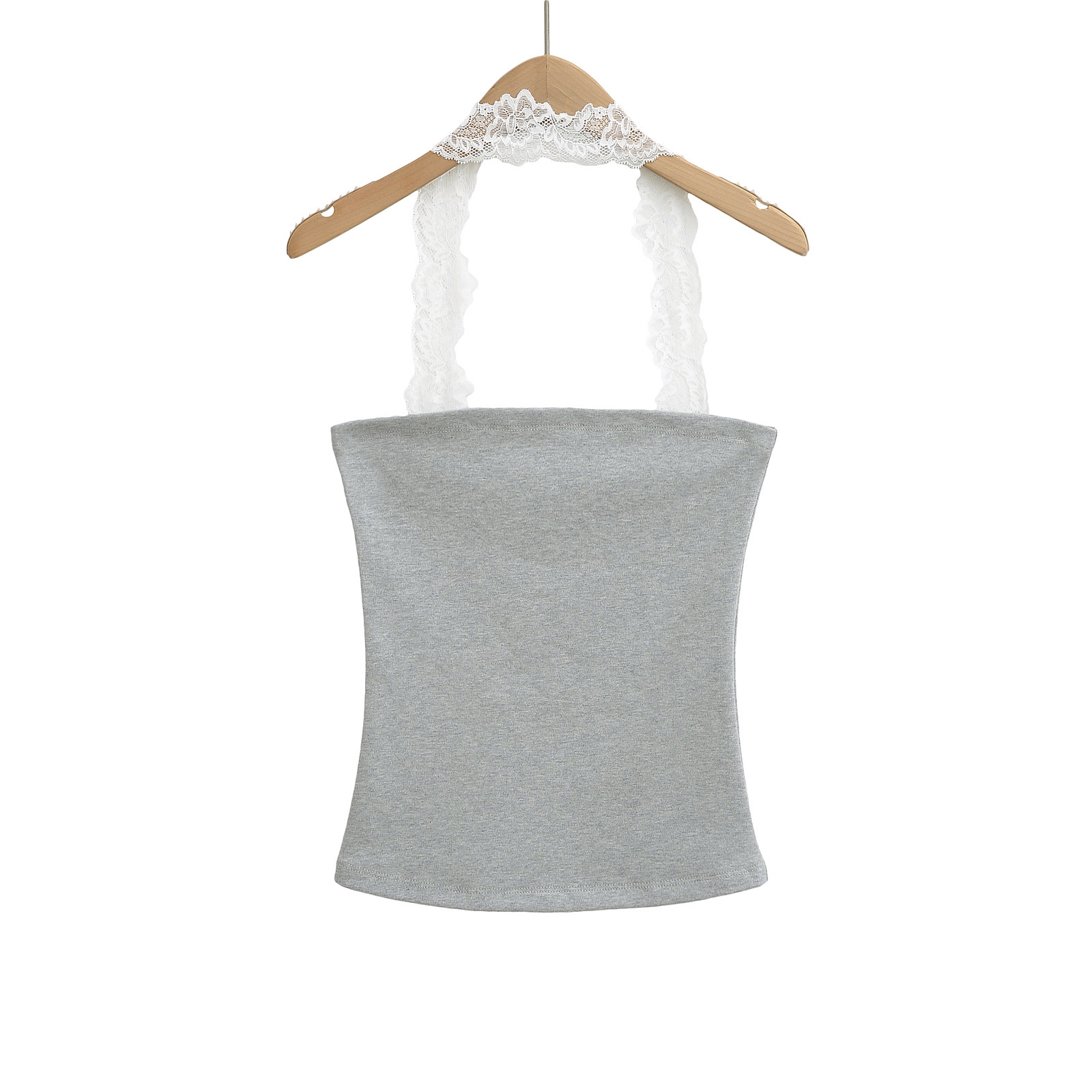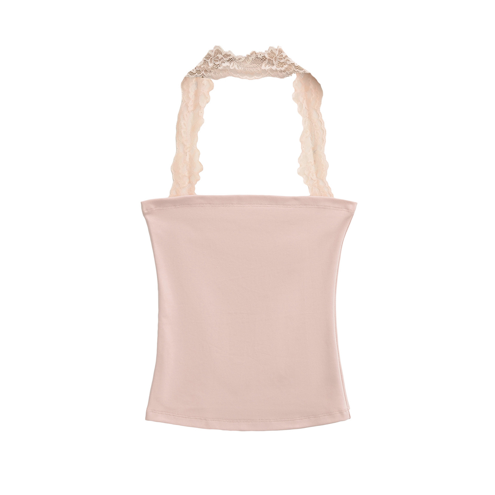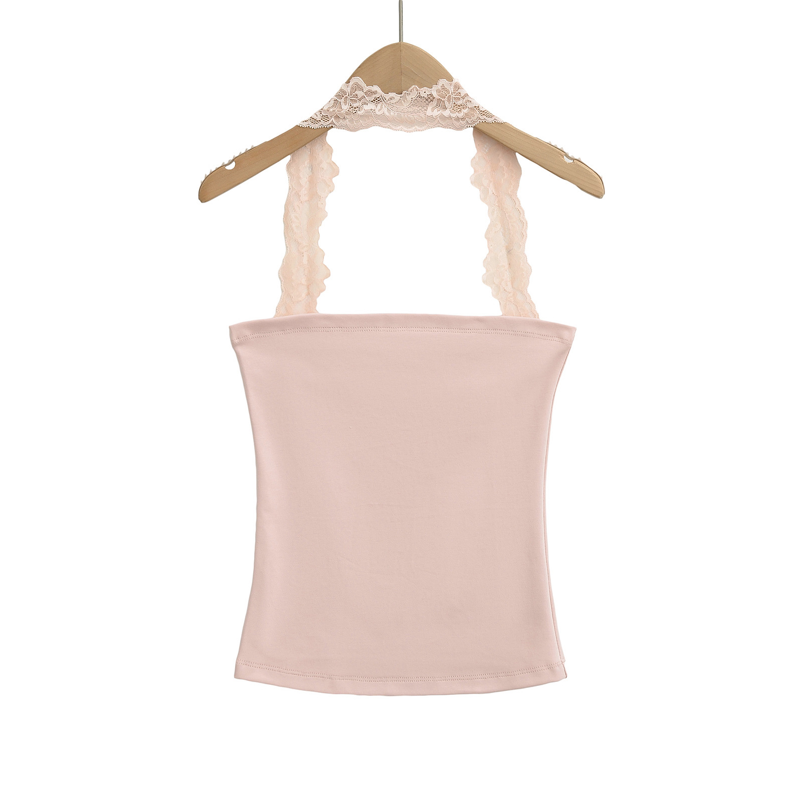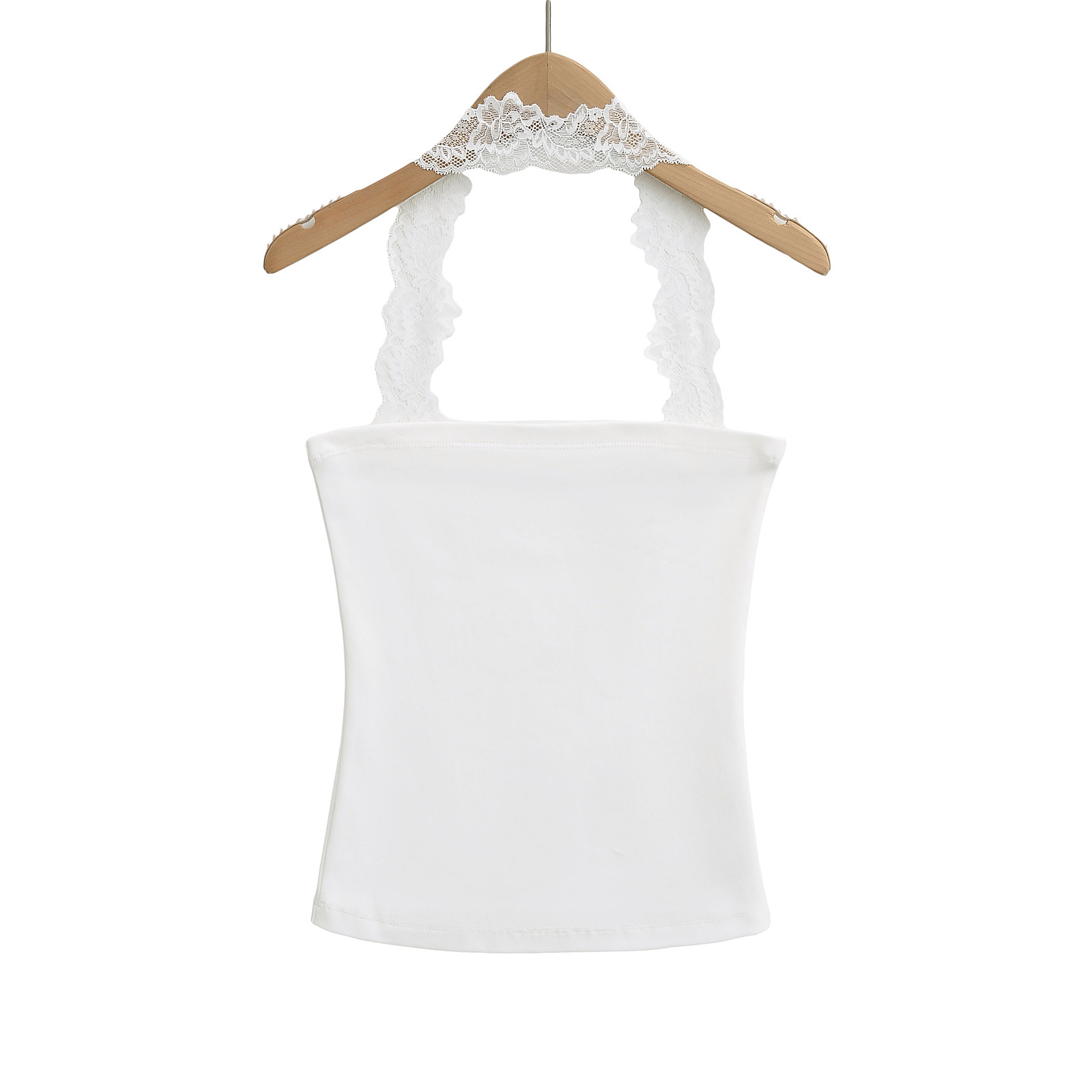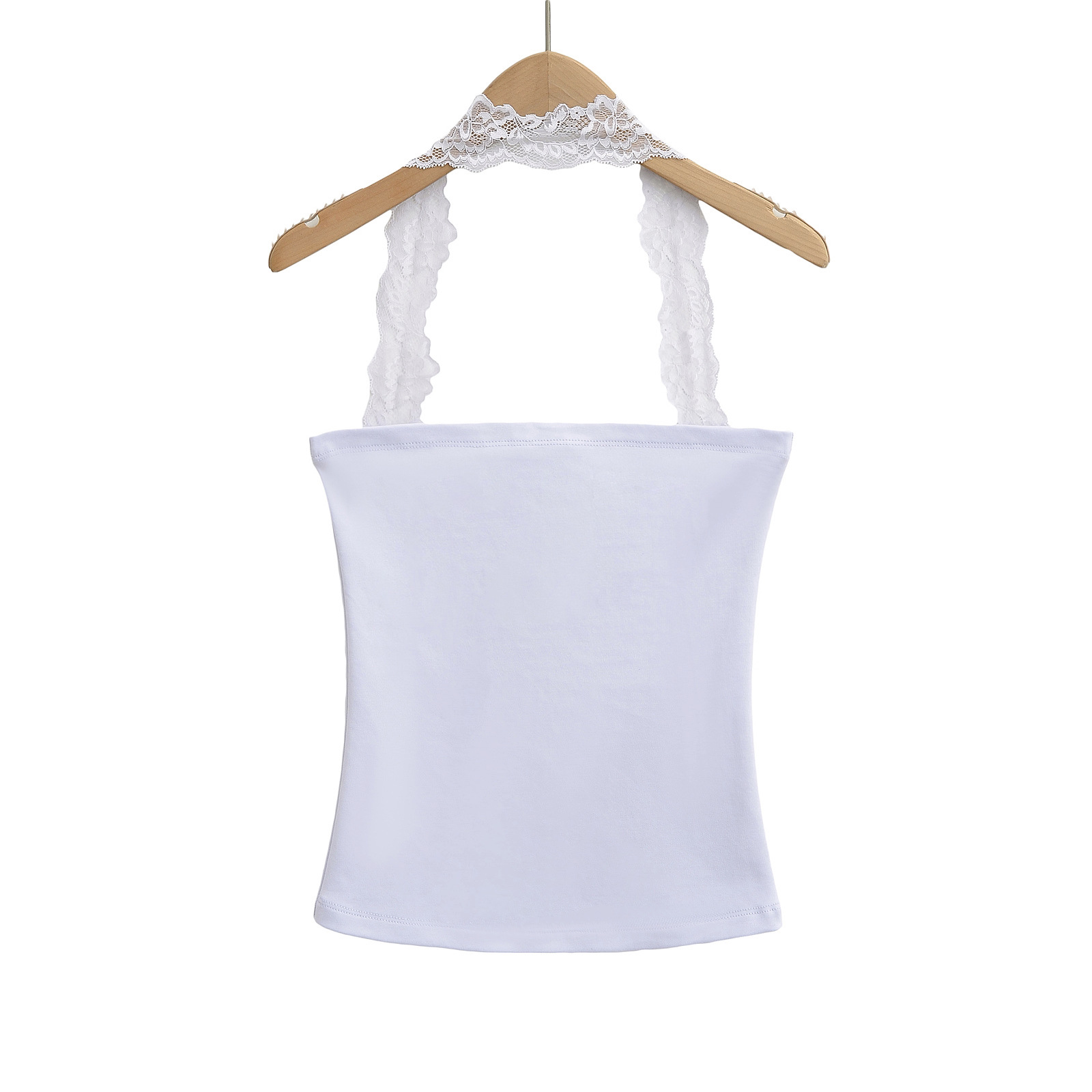 2025 Summer Pure는 레이스 교수형 목 슬림 핏 스트랩리스 조끼 여성의 내부 짧은 타이트 카미 솔 트렌디 탑을 입고 싶어합니다.