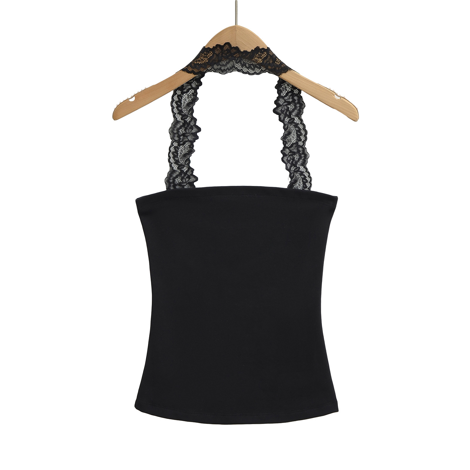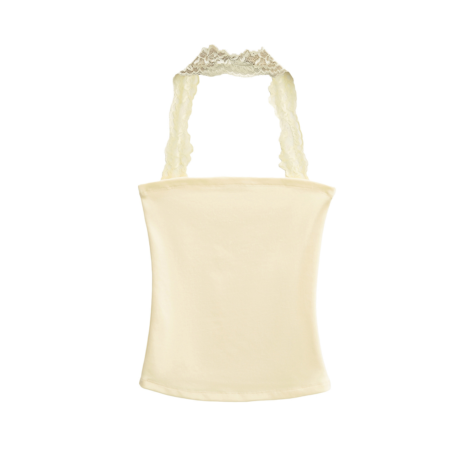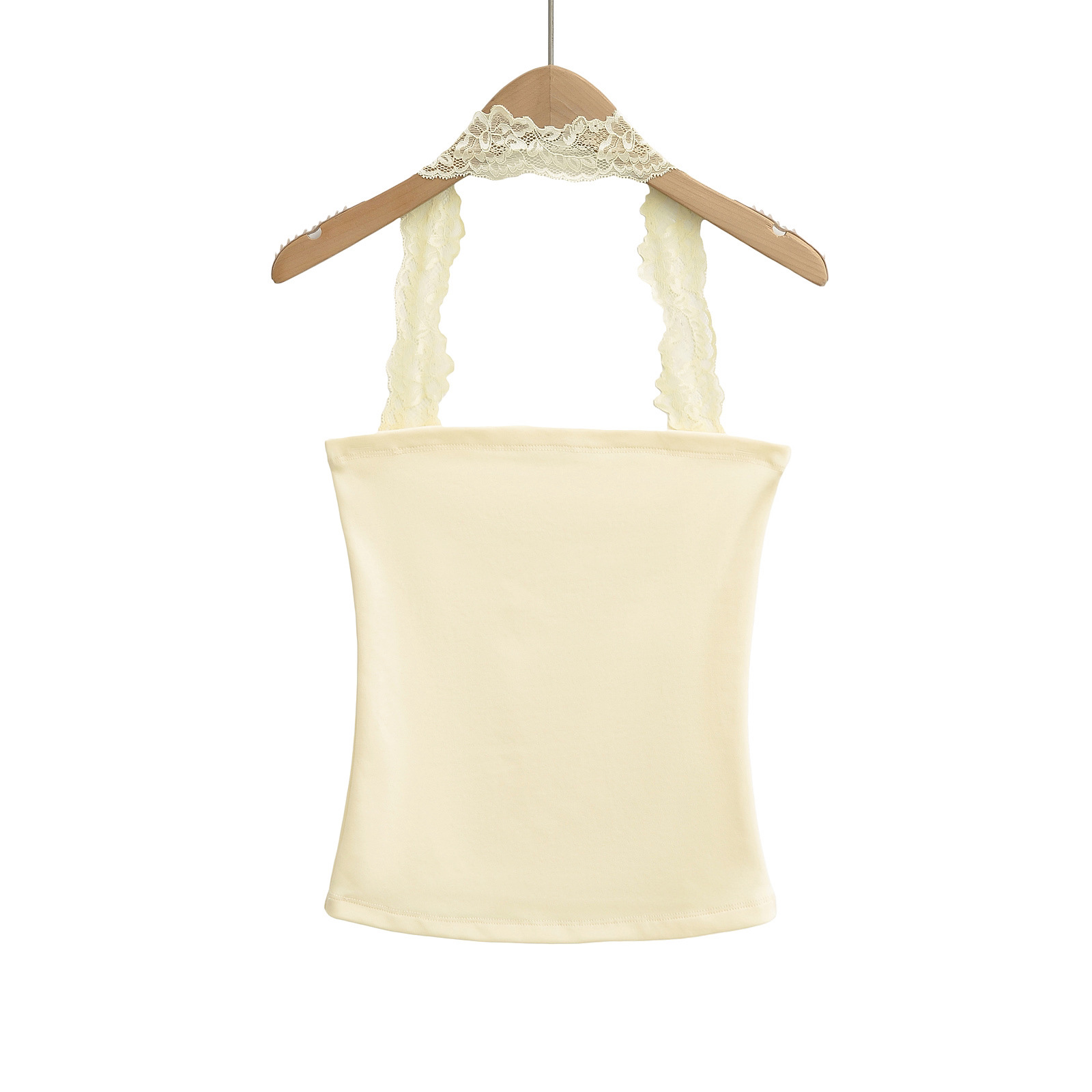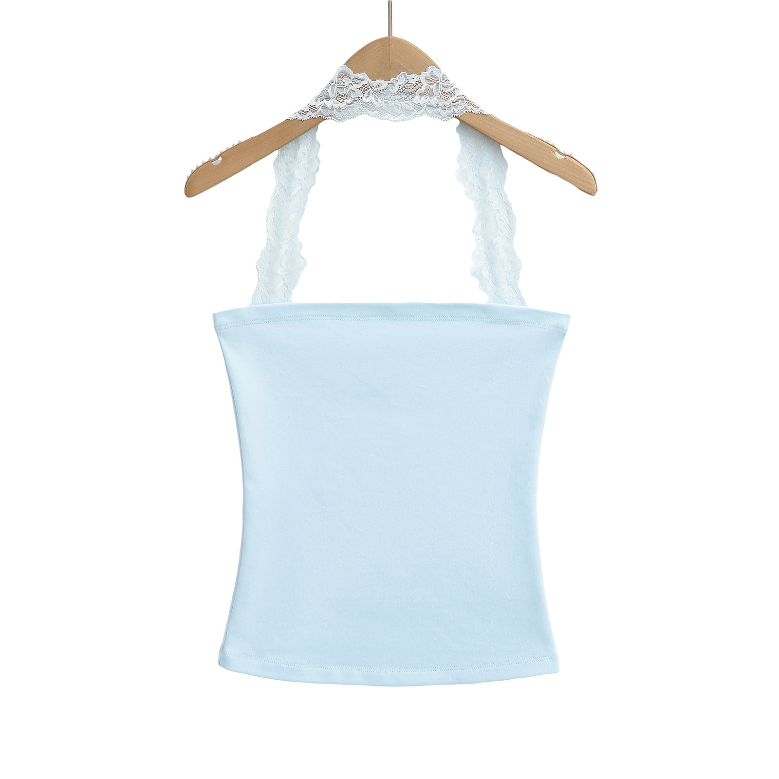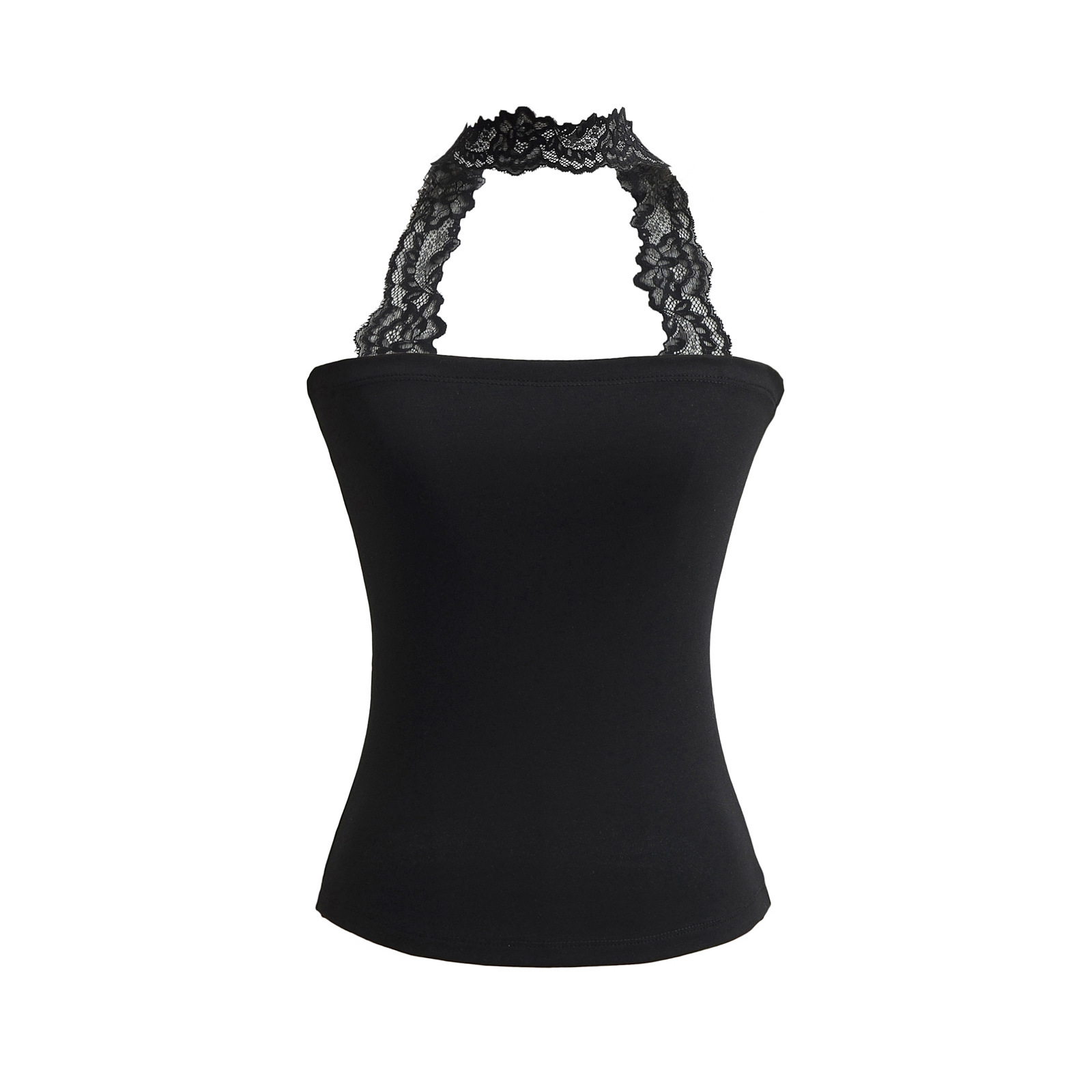 2025 Summer Pure는 레이스 교수형 목 슬림 핏 스트랩리스 조끼 여성의 내부 짧은 타이트 카미 솔 트렌디 탑을 입고 싶어합니다.