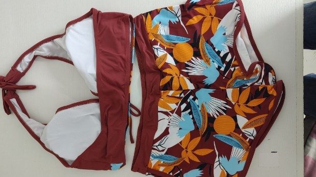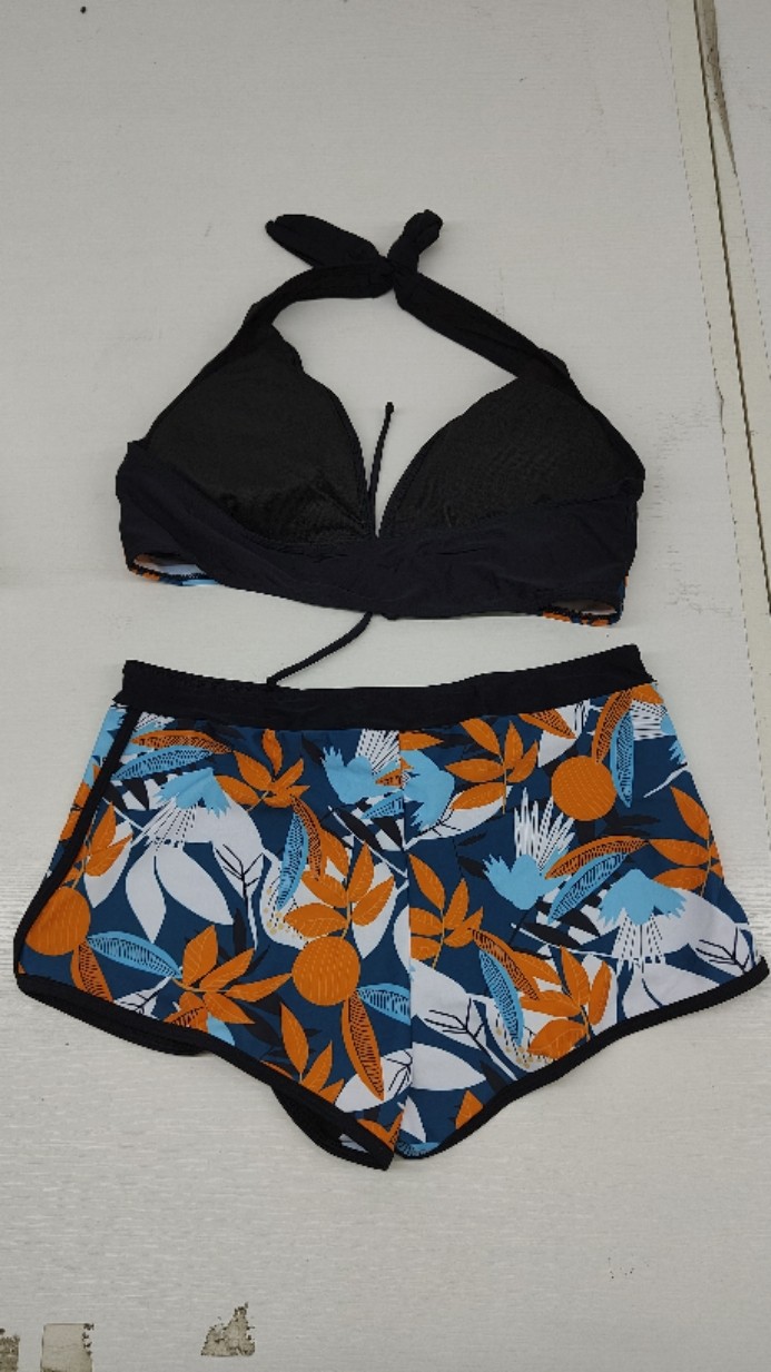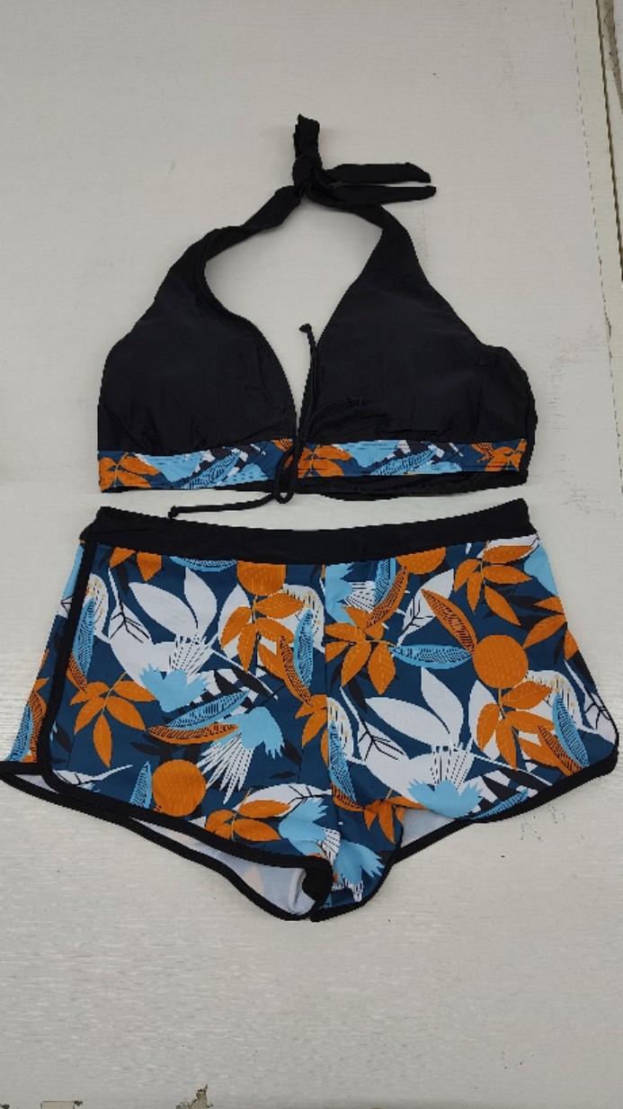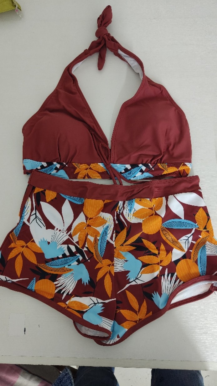 유럽 및 미국 수출용 분리형 수영복, 보수적인 하이웨이스트 사각팬티, 프린트 홀터넥 끈 묶는 보수적인 비키니 세트, 해외 직구스토어 가기