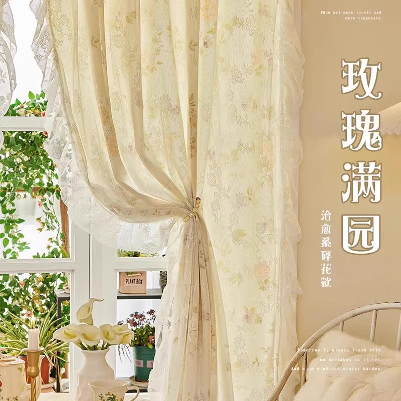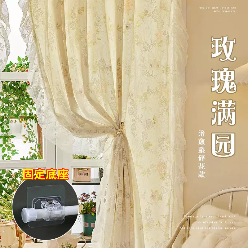 프랑스 스타일 커튼 블랙 아웃 천 커튼 2025 새로운 스타일 비 천공 텔레스코픽 로드 작은 창 거즈 커튼 임대 룸 여성용 신선한 스타일