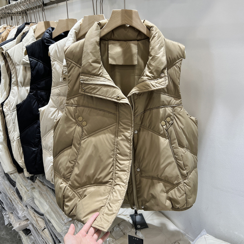 스탠드 칼라 다운 코튼 조끼 여성의 새로운 가을, 겨울 색상 여성 패션 느슨한 조끼 조끼 코트스토어 가기