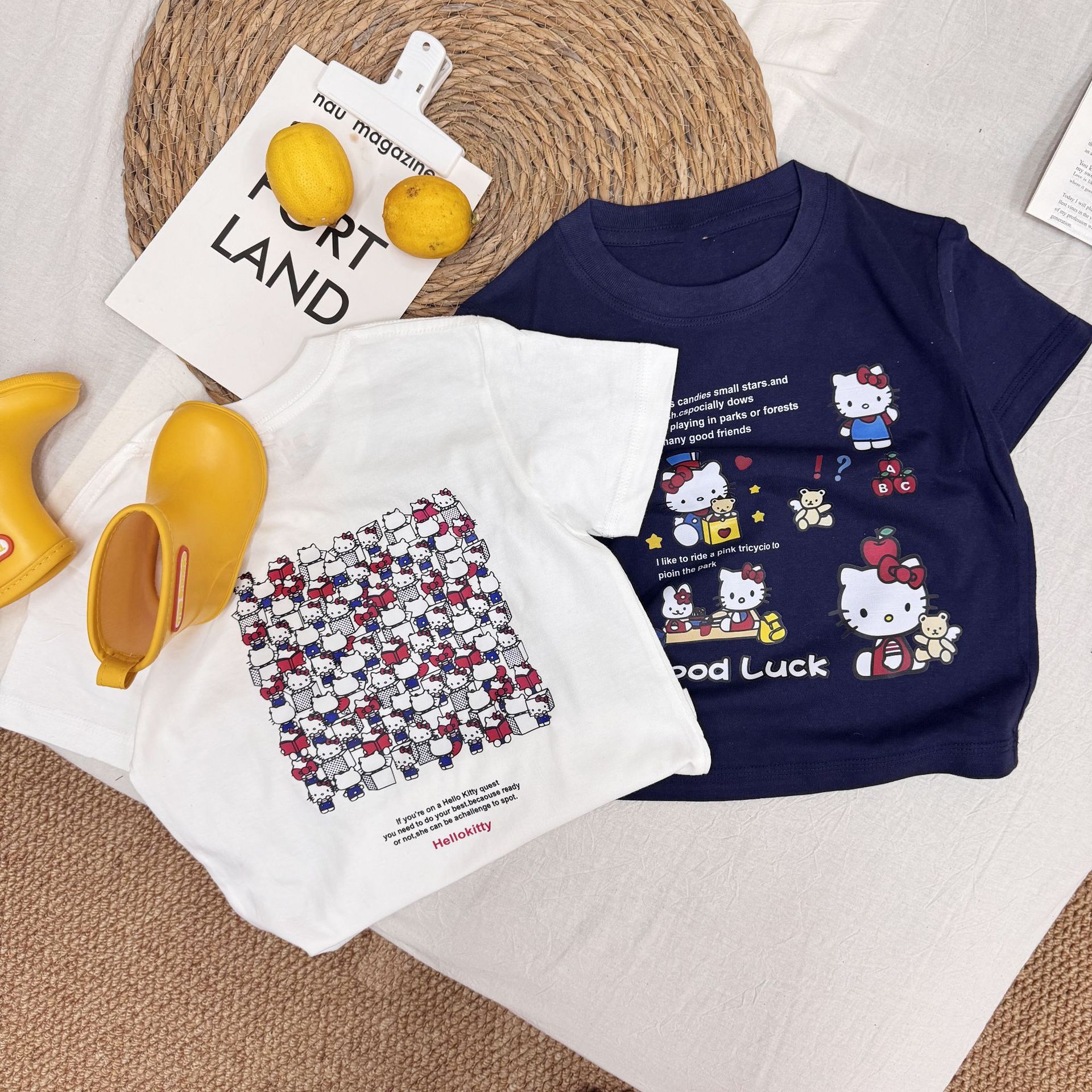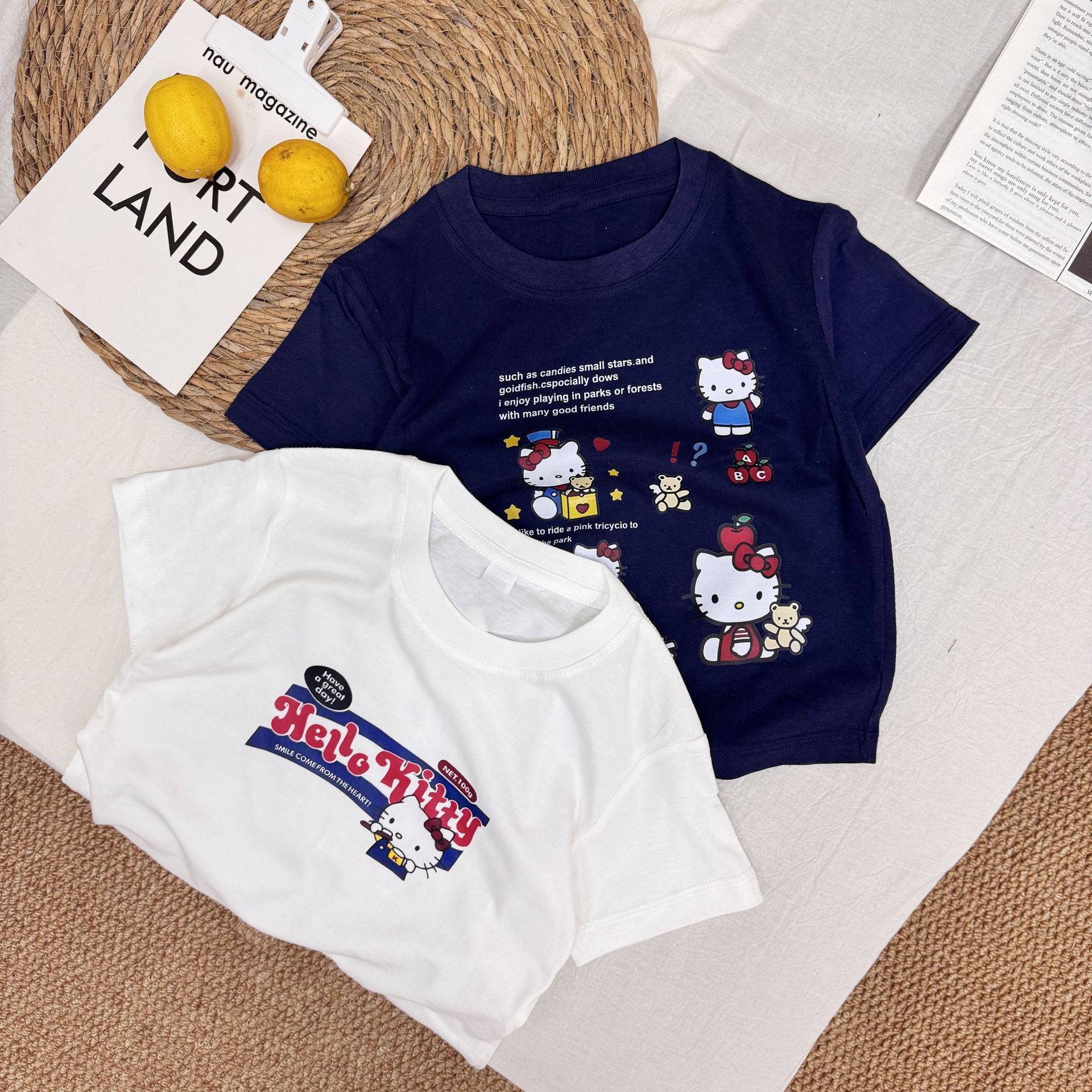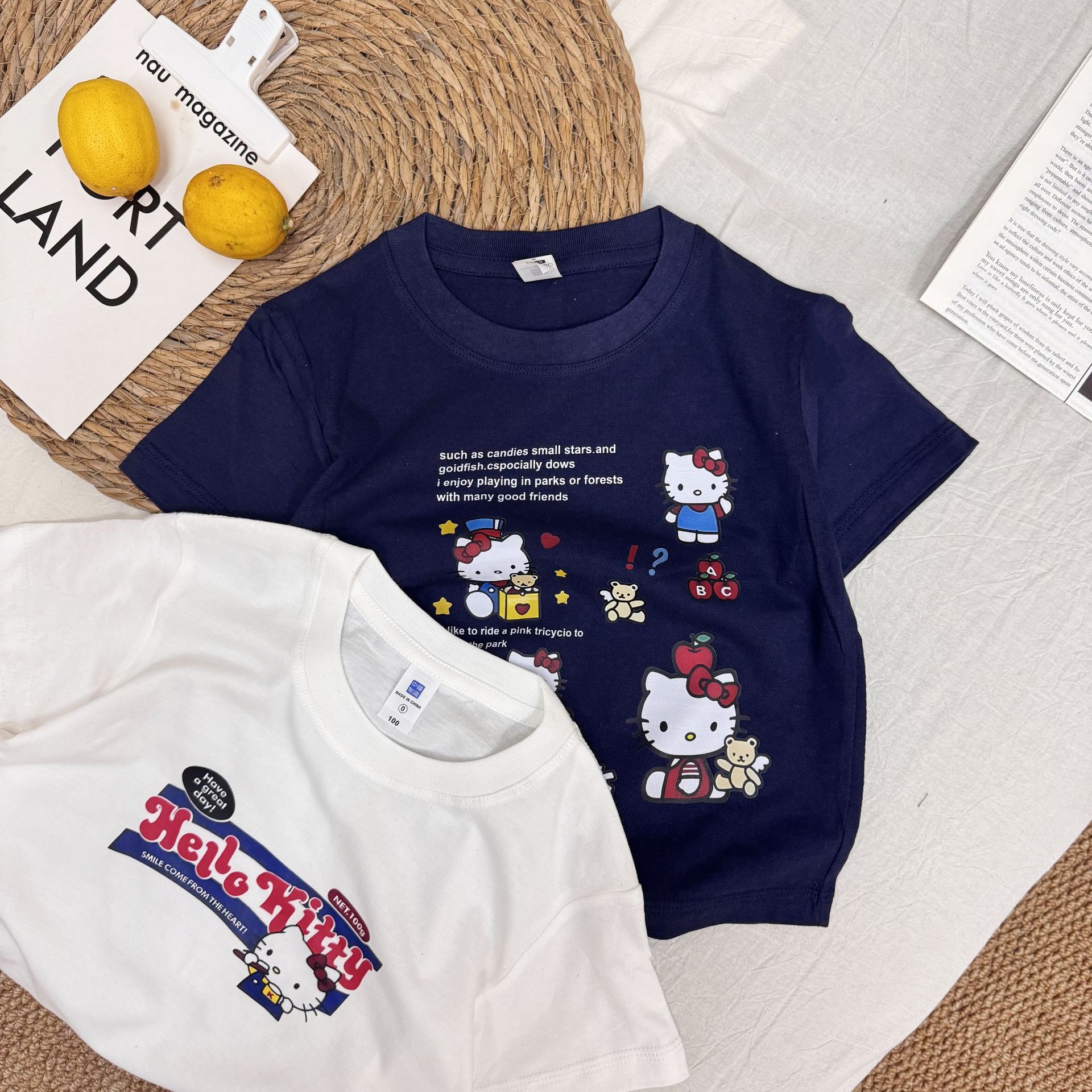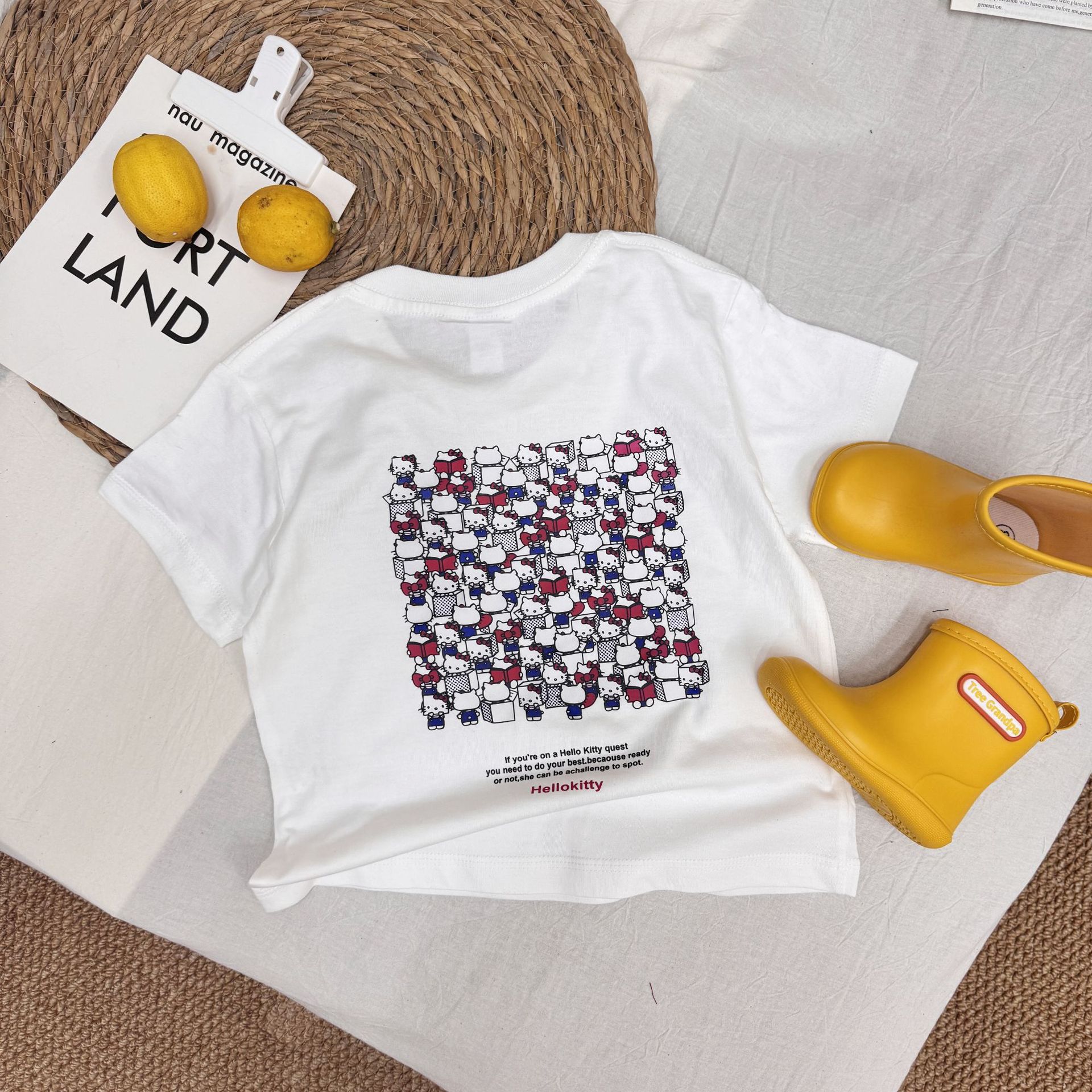 여름 소녀 반팔 티셔츠 어린이 아기 면 만화 인쇄 반소매 탑 티크 톡 폭발 국경 간 부모-자식스토어 가기