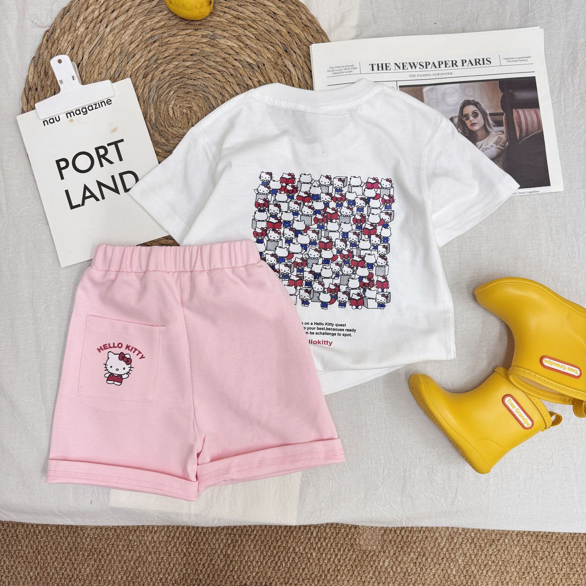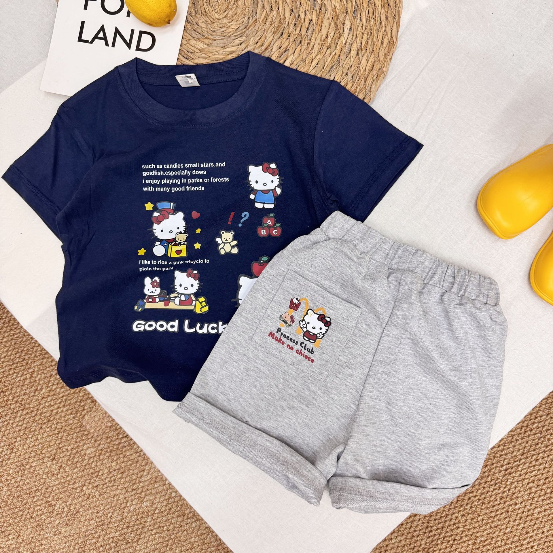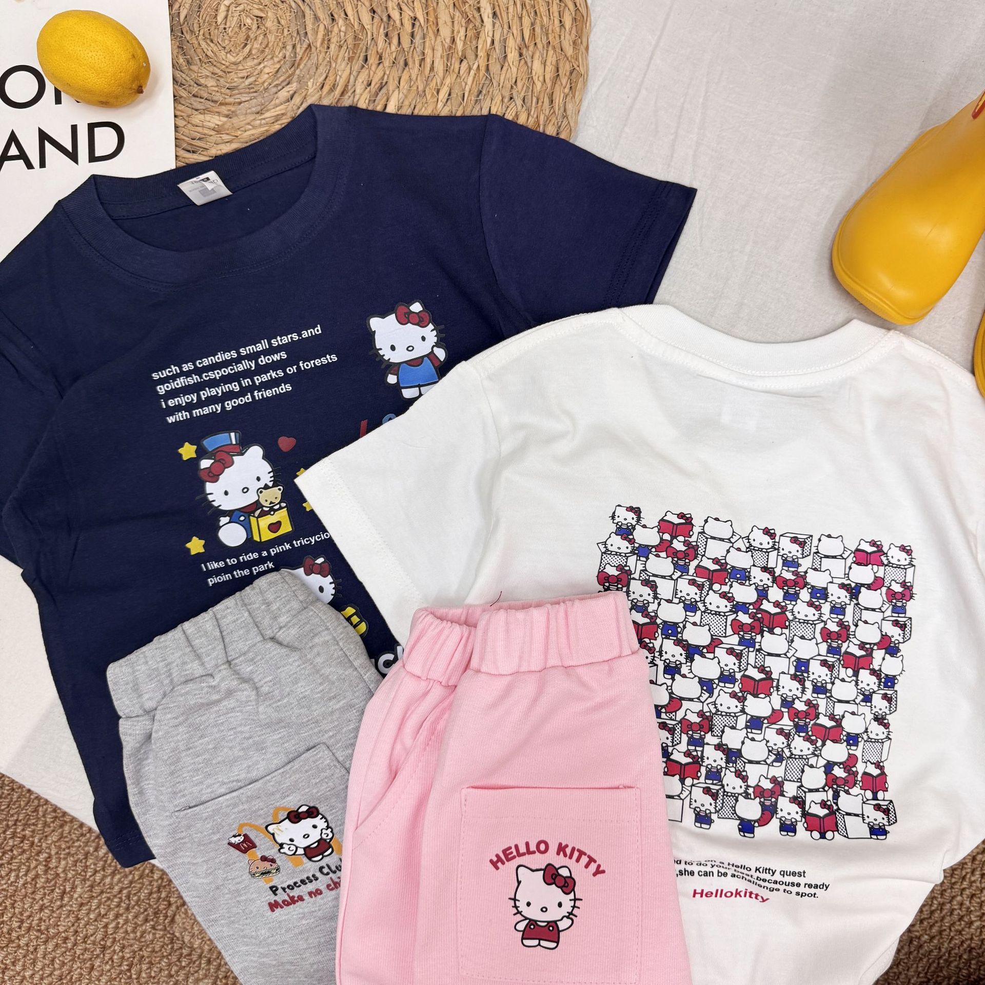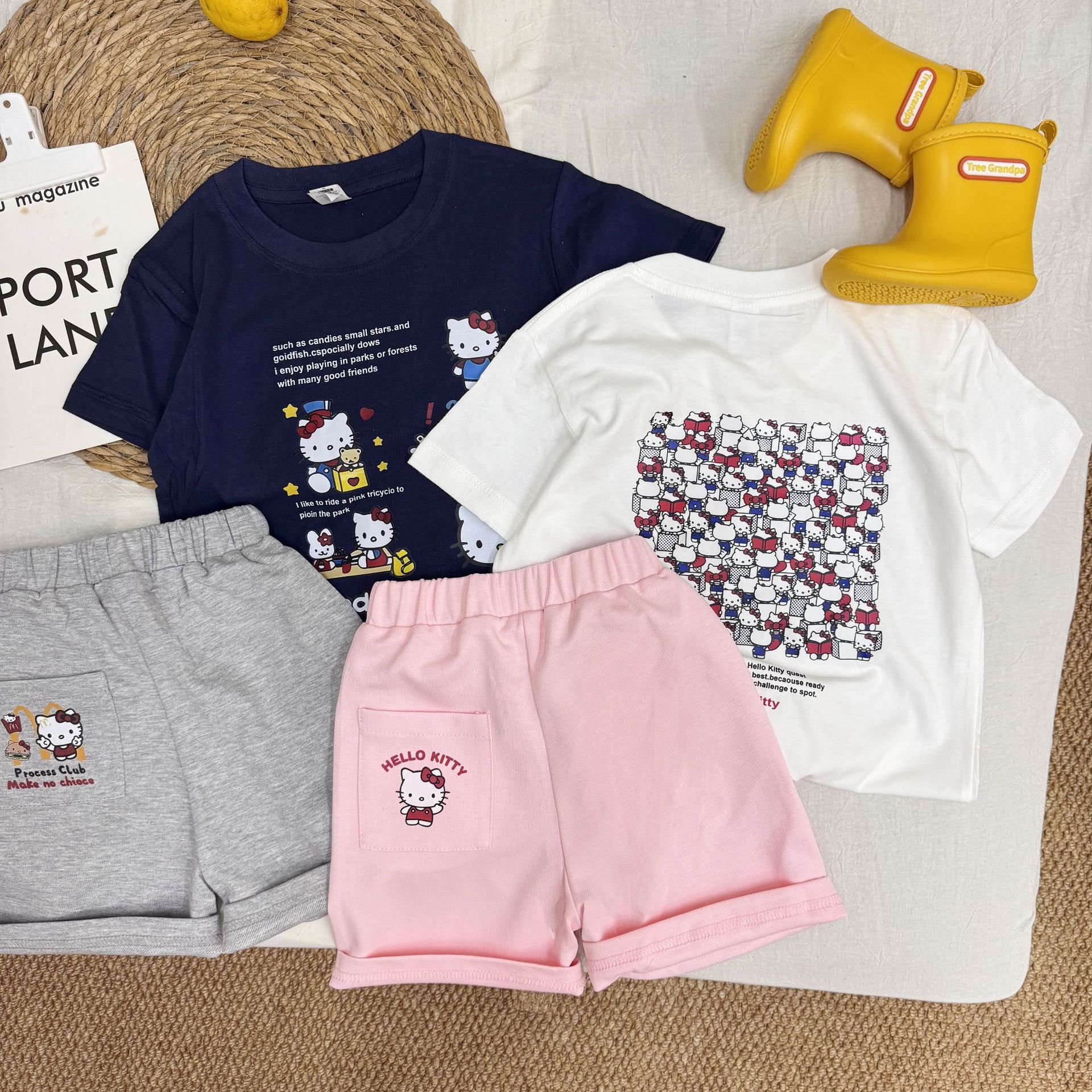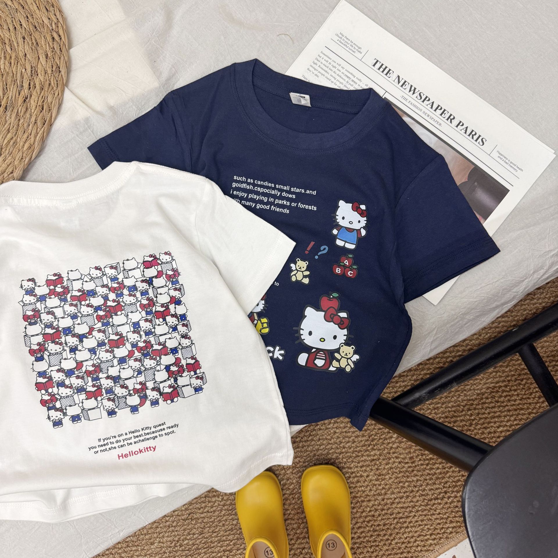 여름 소녀 반팔 티셔츠 어린이 아기 면 만화 인쇄 반소매 탑 티크 톡 폭발 국경 간 부모-자식스토어 가기