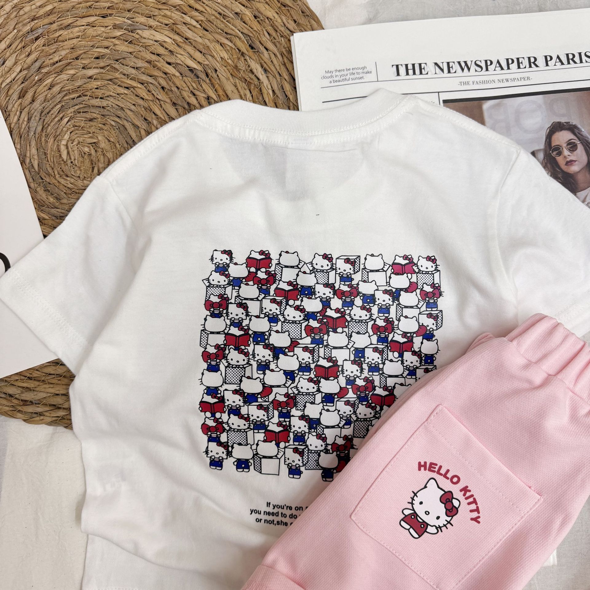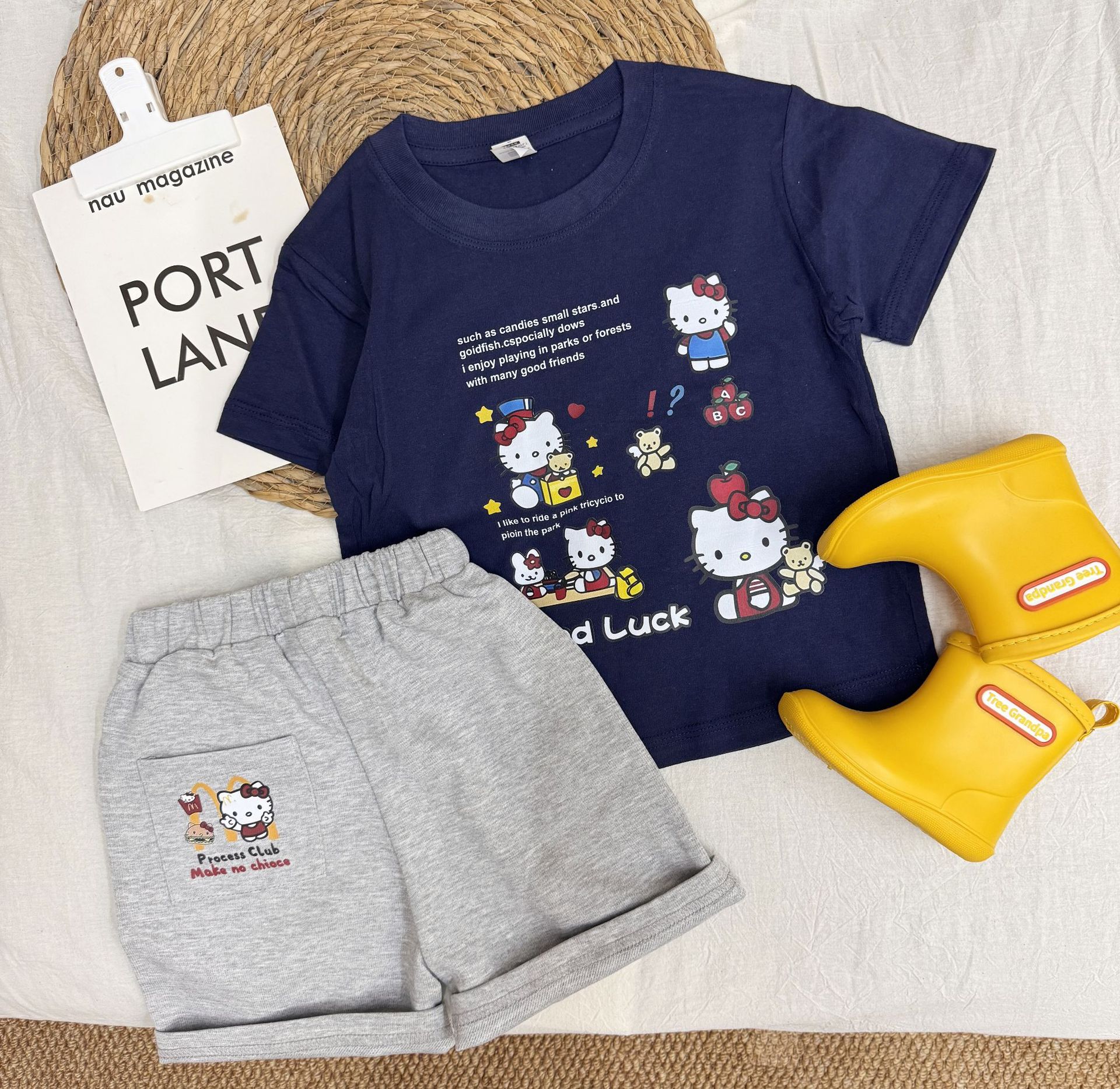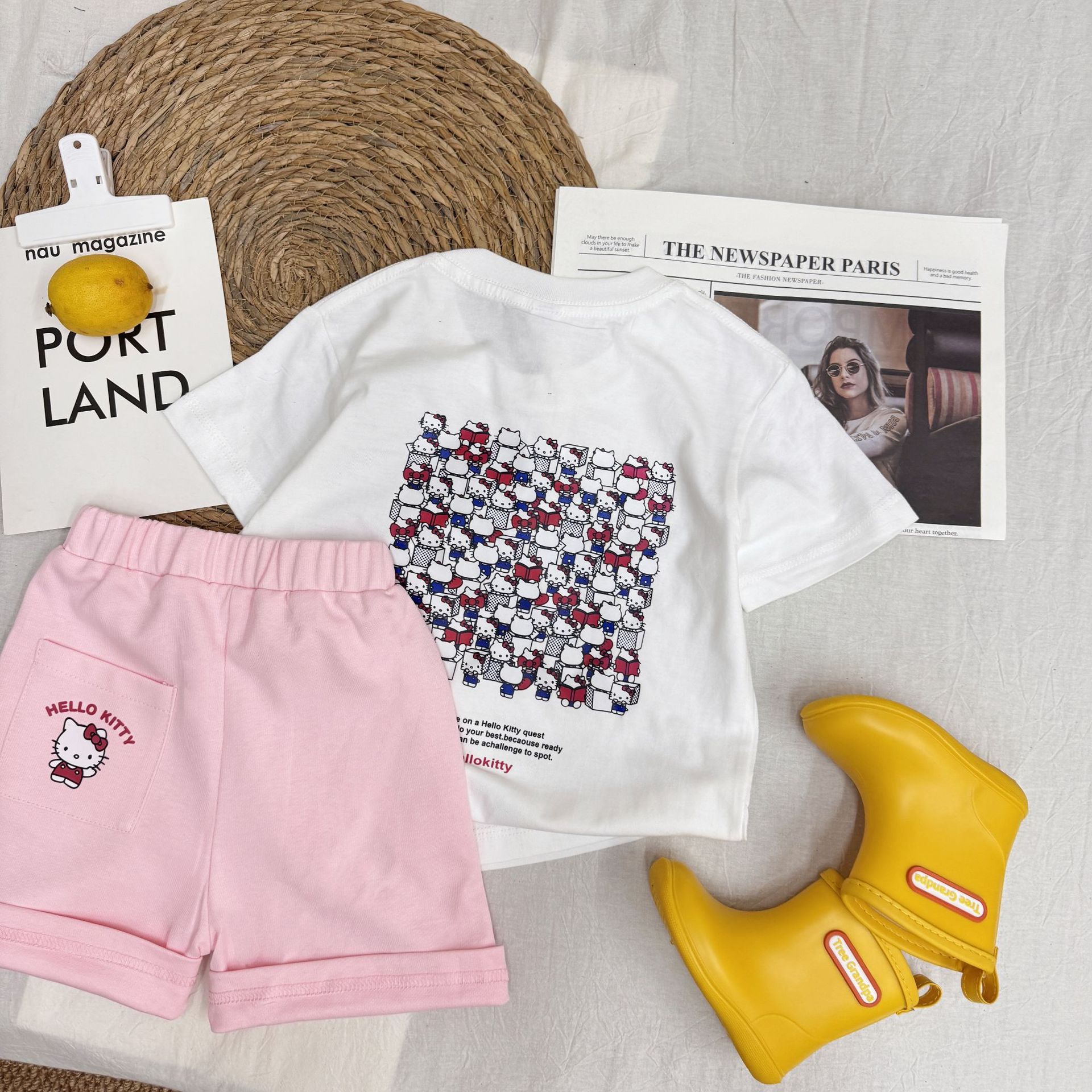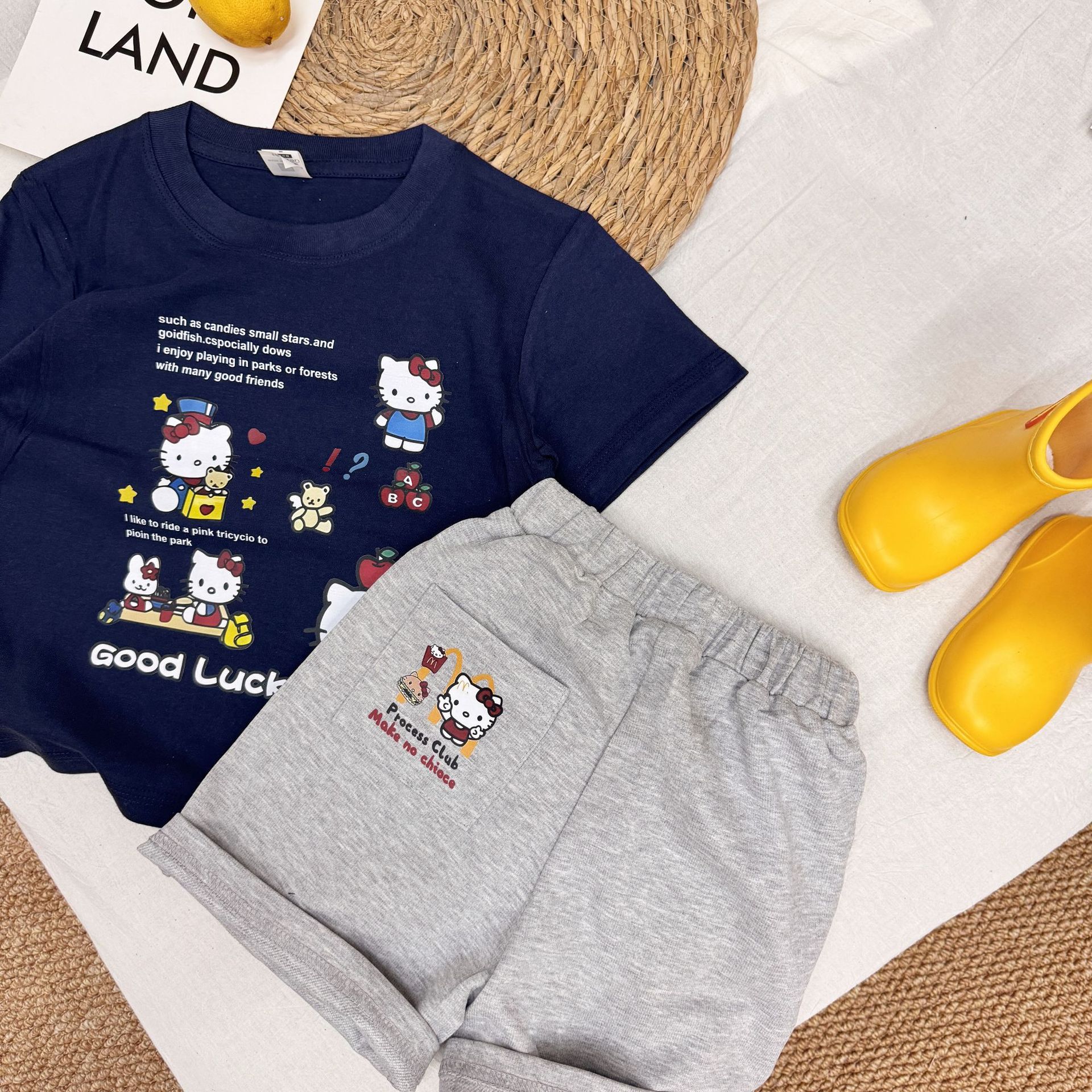 여름 소녀 반팔 티셔츠 어린이 아기 면 만화 인쇄 반소매 탑 티크 톡 폭발 국경 간 부모-자식스토어 가기