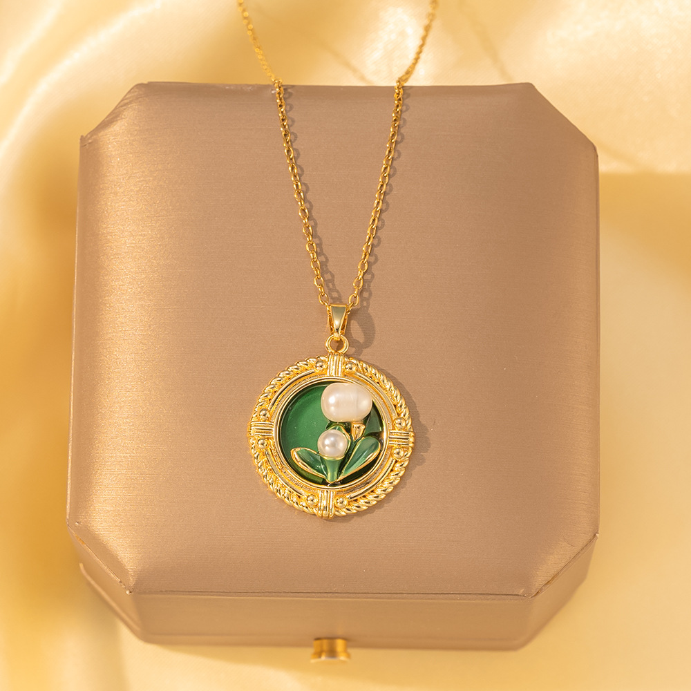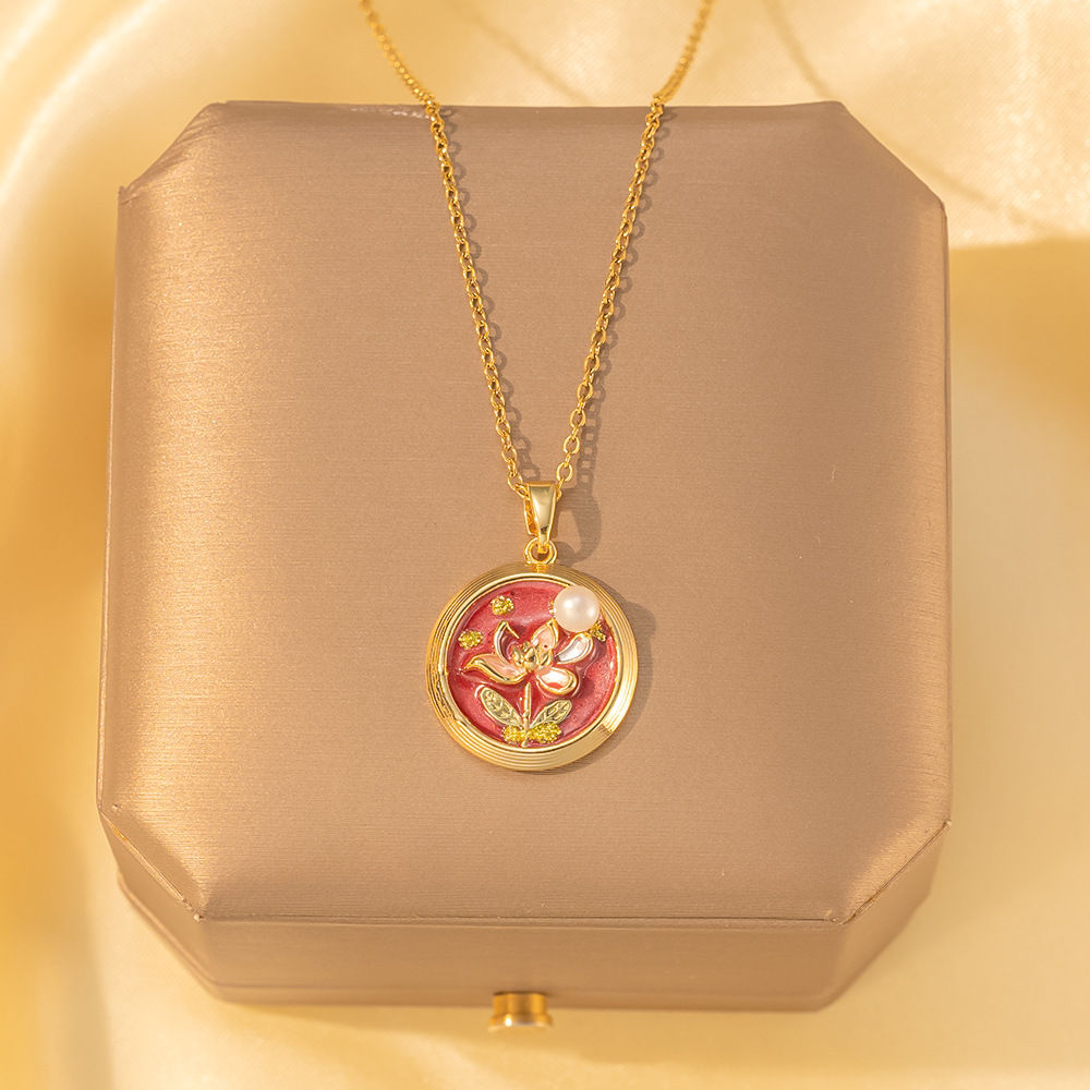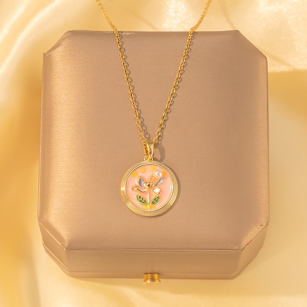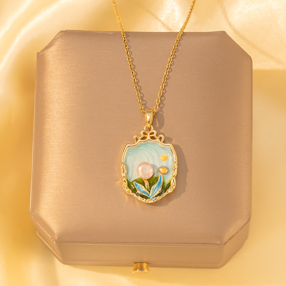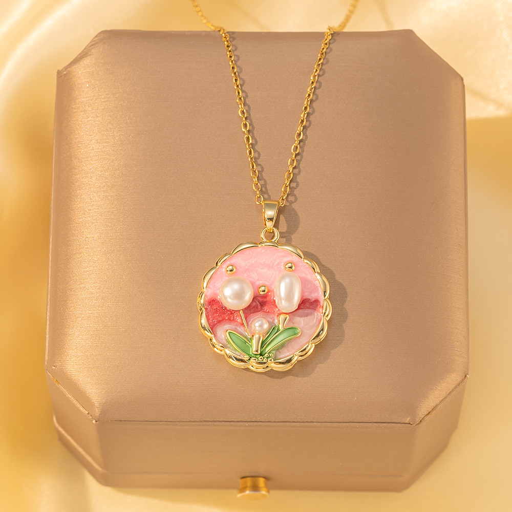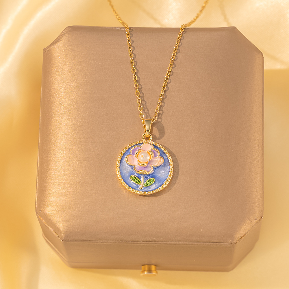 국경 핫 구리 펜던트 새로운 에나멜 꽃 목걸이 여성 하이 엔드 패션 우아한 틈새 쇄골 체인스토어 가기