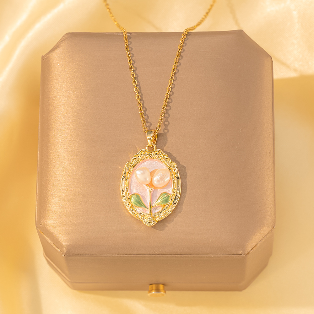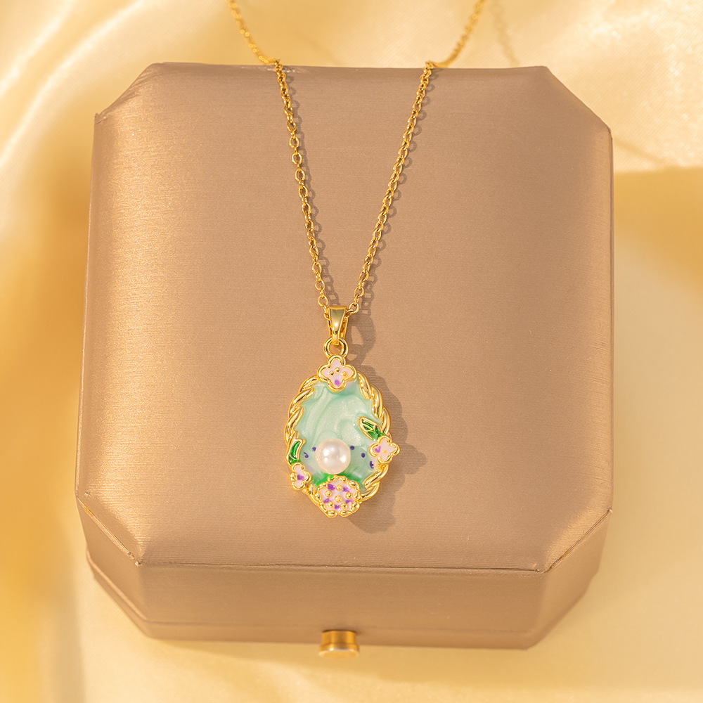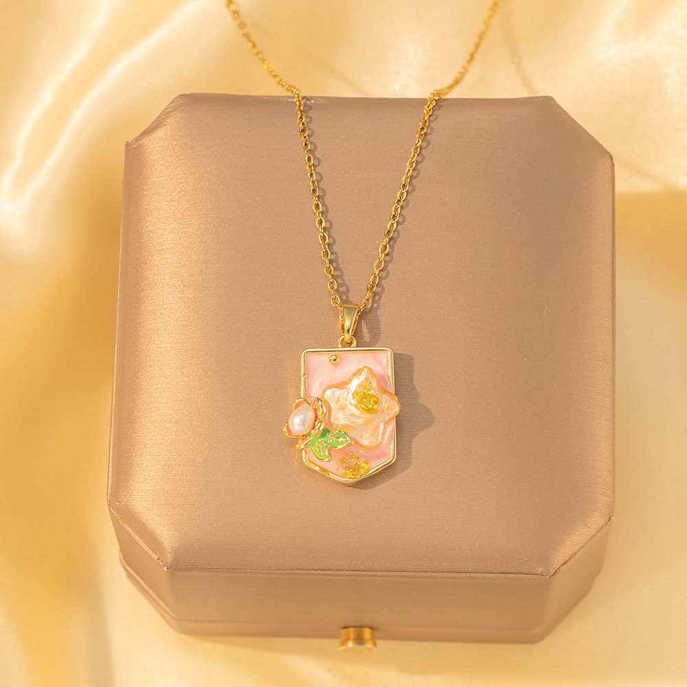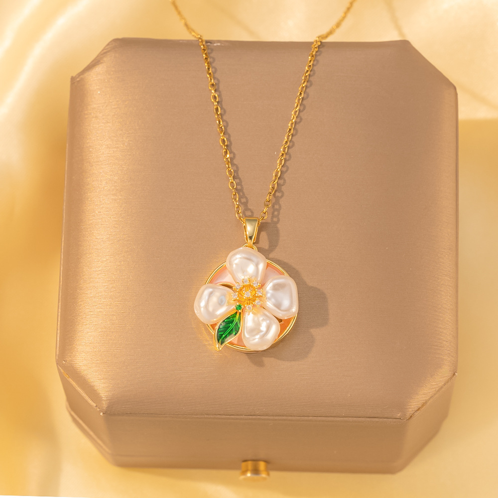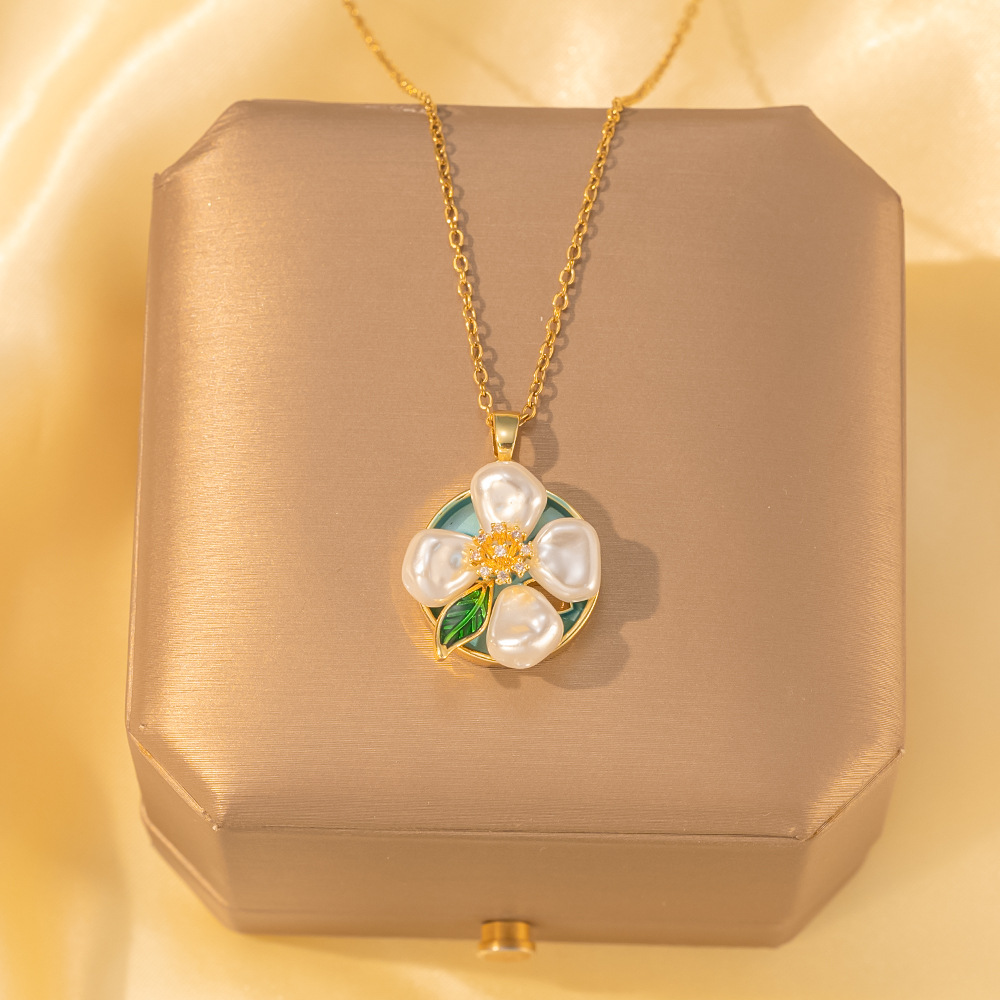 국경 핫 구리 펜던트 새로운 에나멜 꽃 목걸이 여성 하이 엔드 패션 우아한 틈새 쇄골 체인