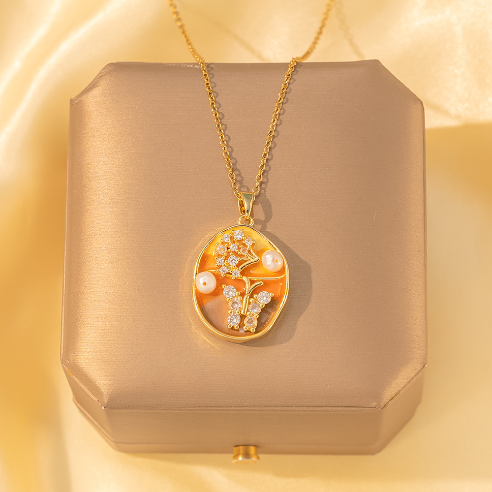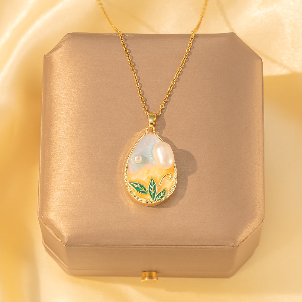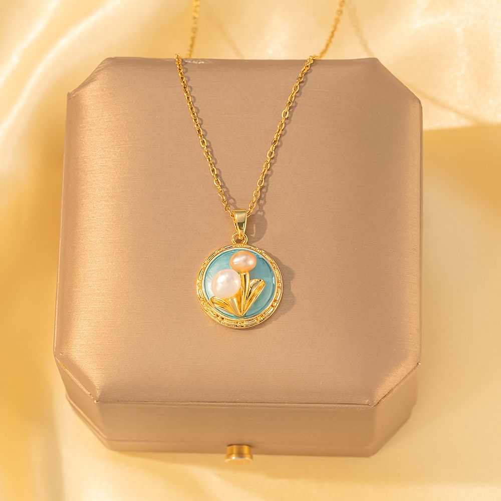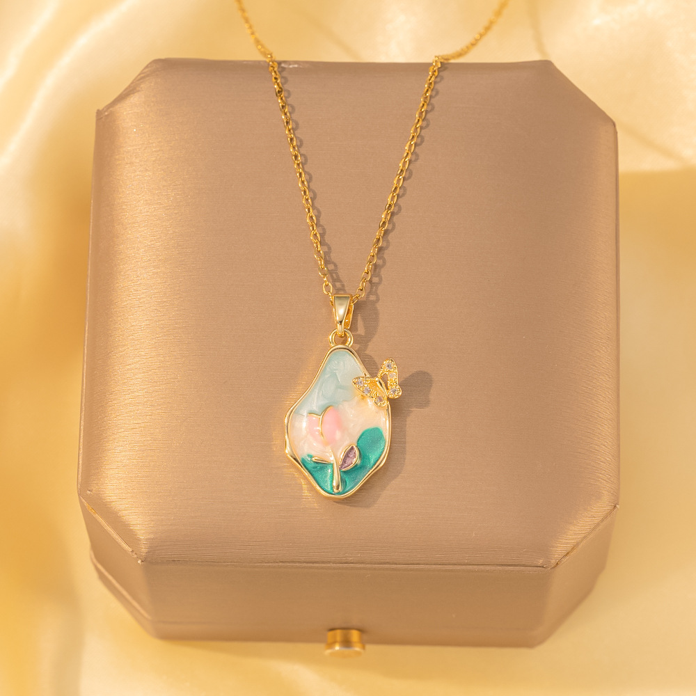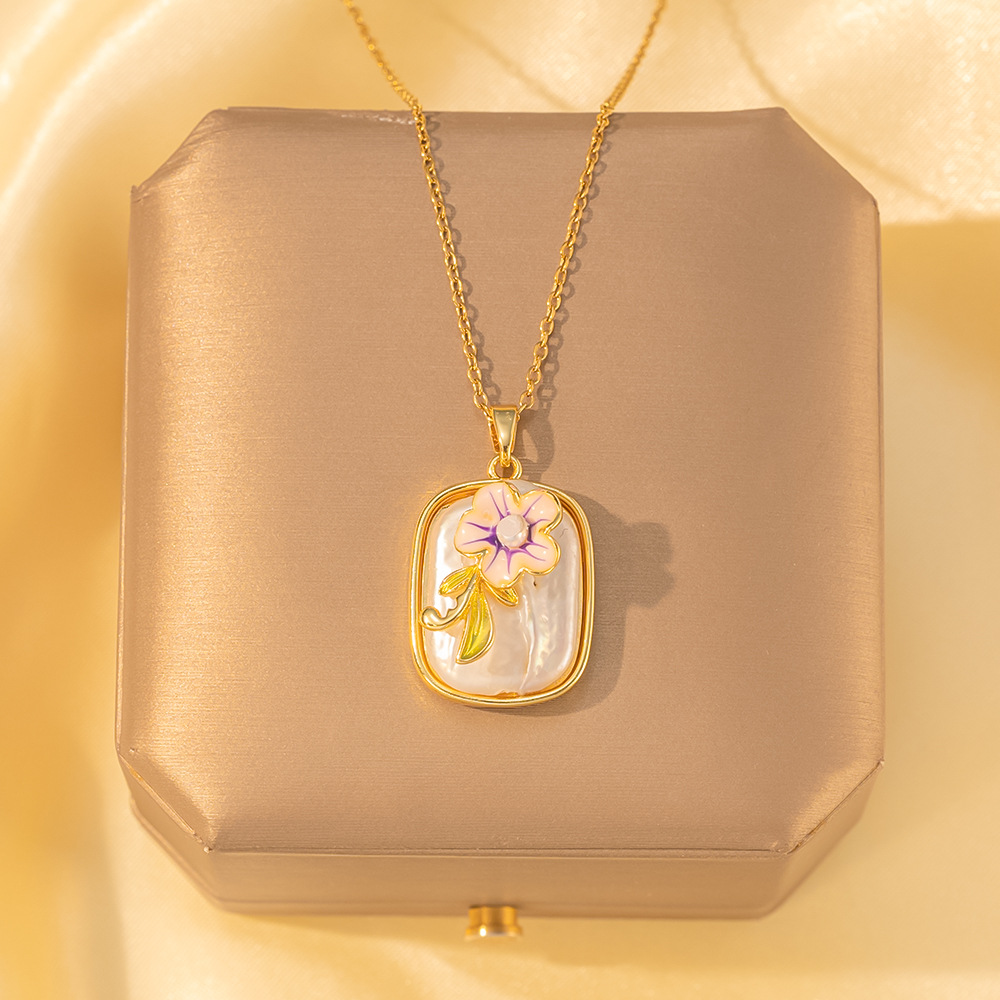 국경 핫 구리 펜던트 새로운 에나멜 꽃 목걸이 여성 하이 엔드 패션 우아한 틈새 쇄골 체인