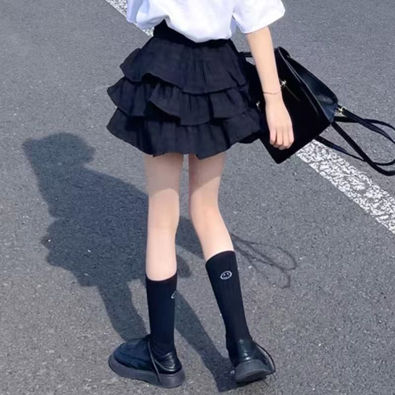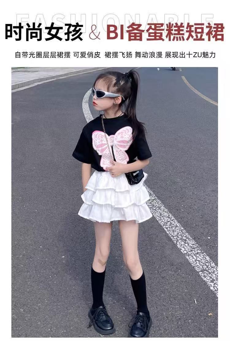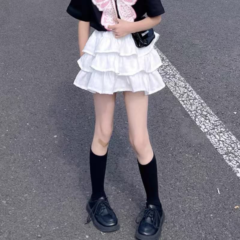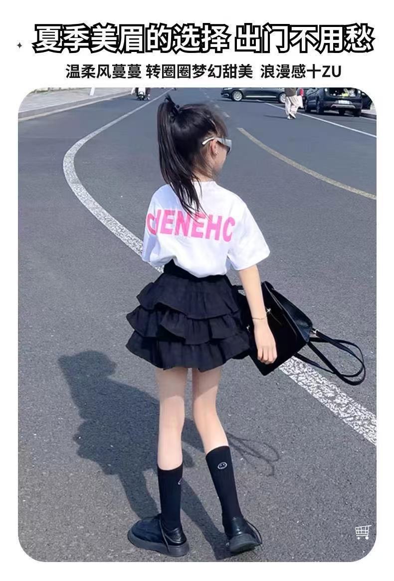 2025년 여름 신작 여아 스커트, 패셔너블한 공주 케이크 스커트, 중대형 아동용 흑백 퍼프 스커트