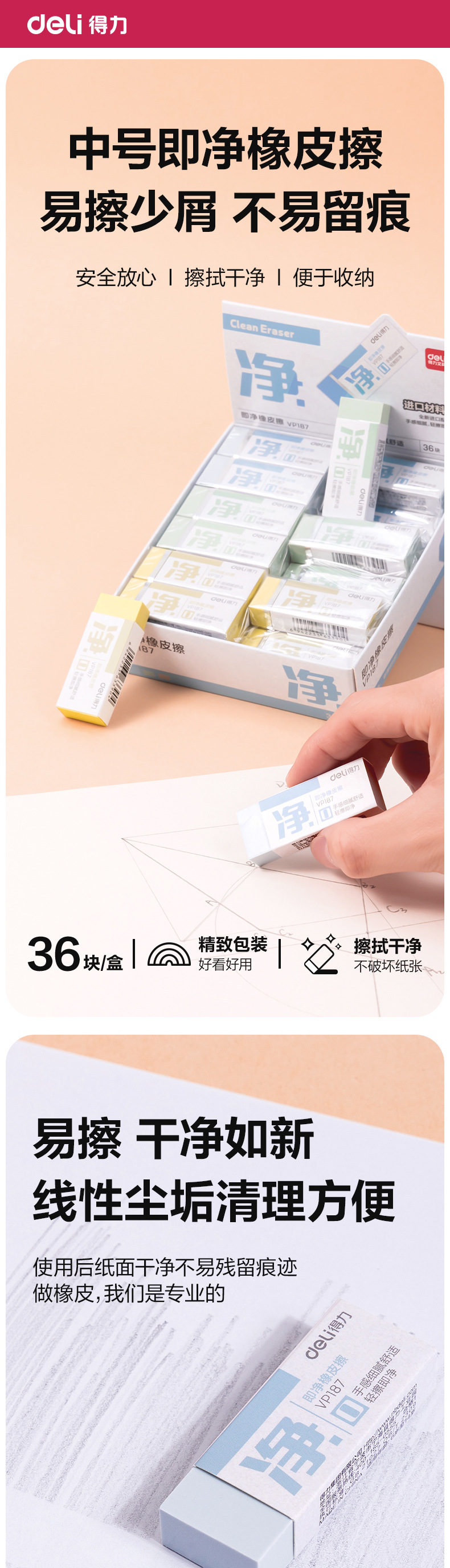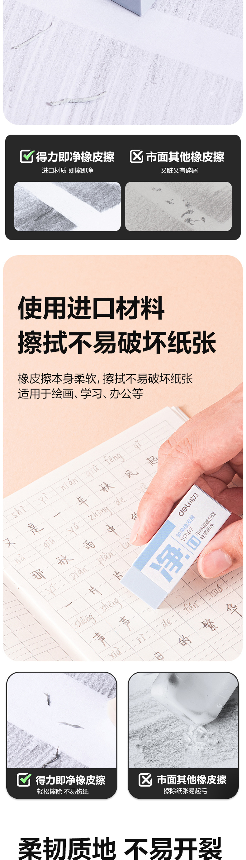 델리 VP187 수입 즉시 청소 지우개 대형 학생 학습 그림 그리기 쉬운 지우기 부스러기가 적고 흔적이 남지 않는 지우개스토어 가기
