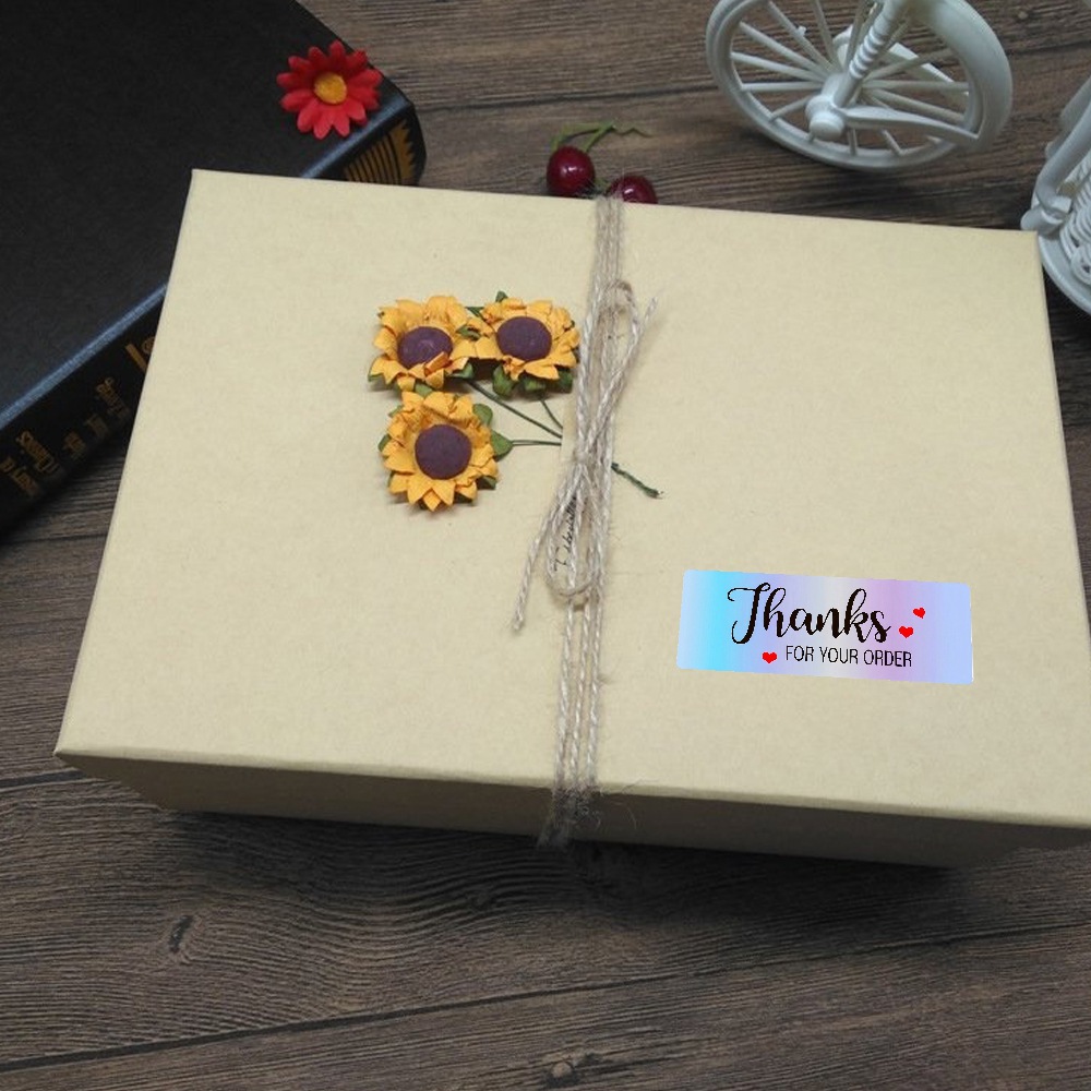 국경 간 120 직사각형 레이저 실버 감사합니다 씰링 스티커 무지개 롤 선물 장식 스티커 도매스토어 가기
