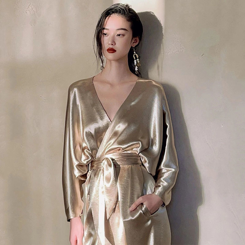 새로운 중국 아침 로브 웨딩 건배 원피스 신부 원피스 여름 약혼 원피스 하이 엔드 라이트 럭셔리 틈새 허리 긴 원피스