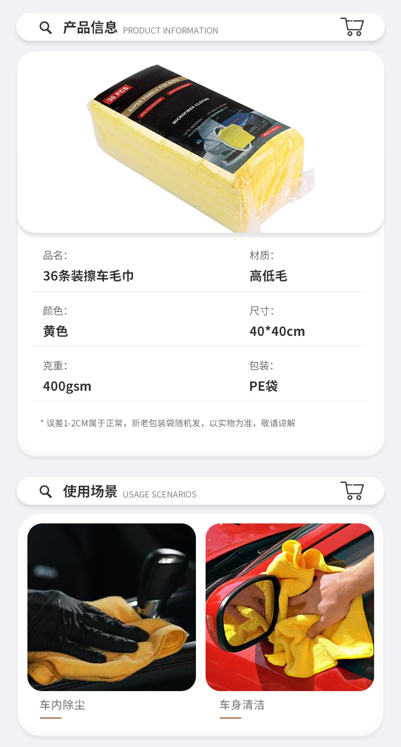 국경 간 두꺼운 마이크로 화이버 자동차 타월 높고 낮은 울 세차 수건 폴리 에스테르 워프 니트 타월 자동차 청소 천스토어 가기