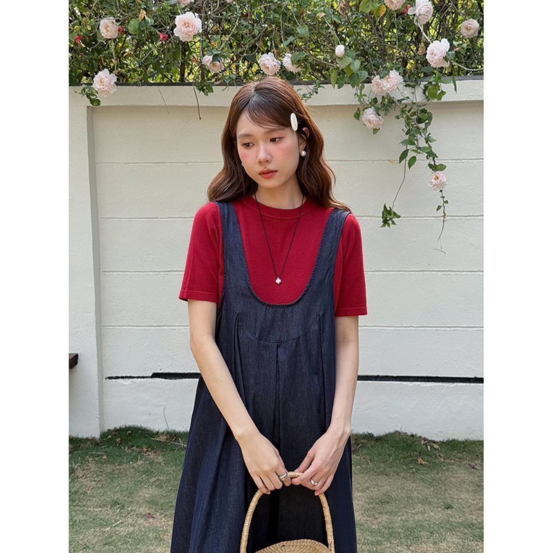 [모란과 베리] 송밍 민소매 조끼 원피스 여자 여름 니트 셔츠 세트 N010C