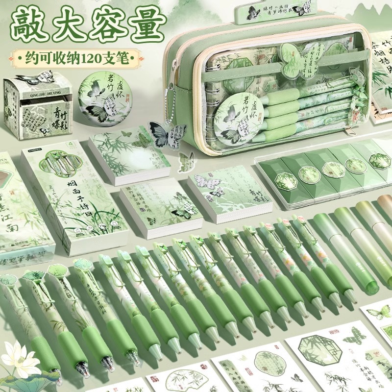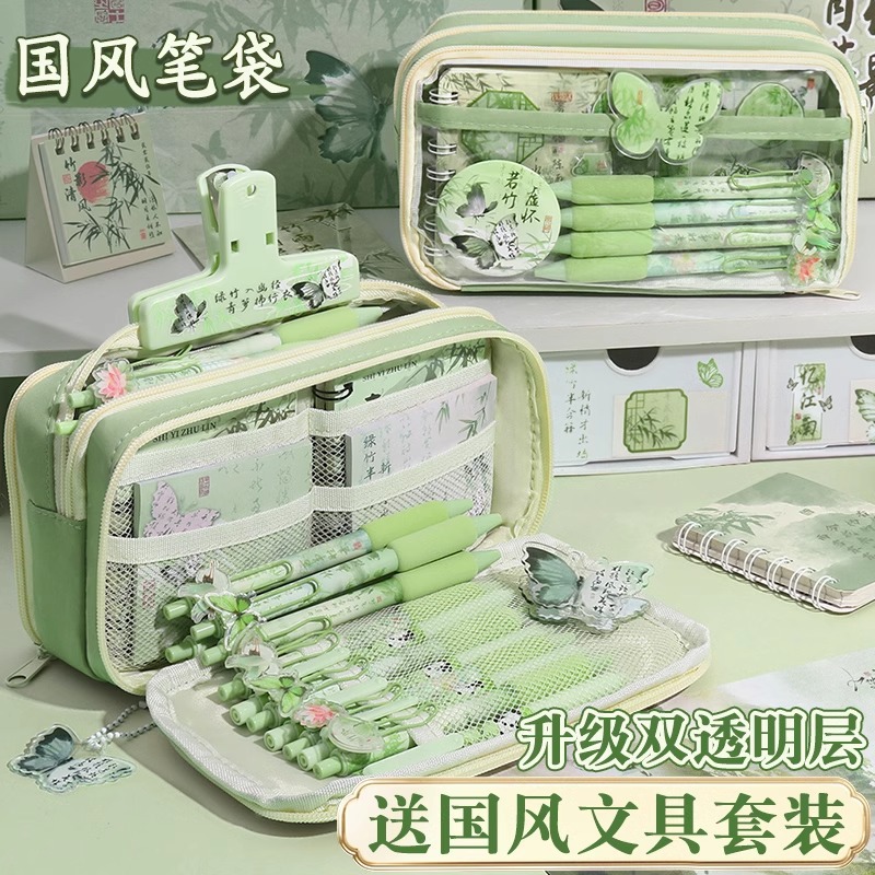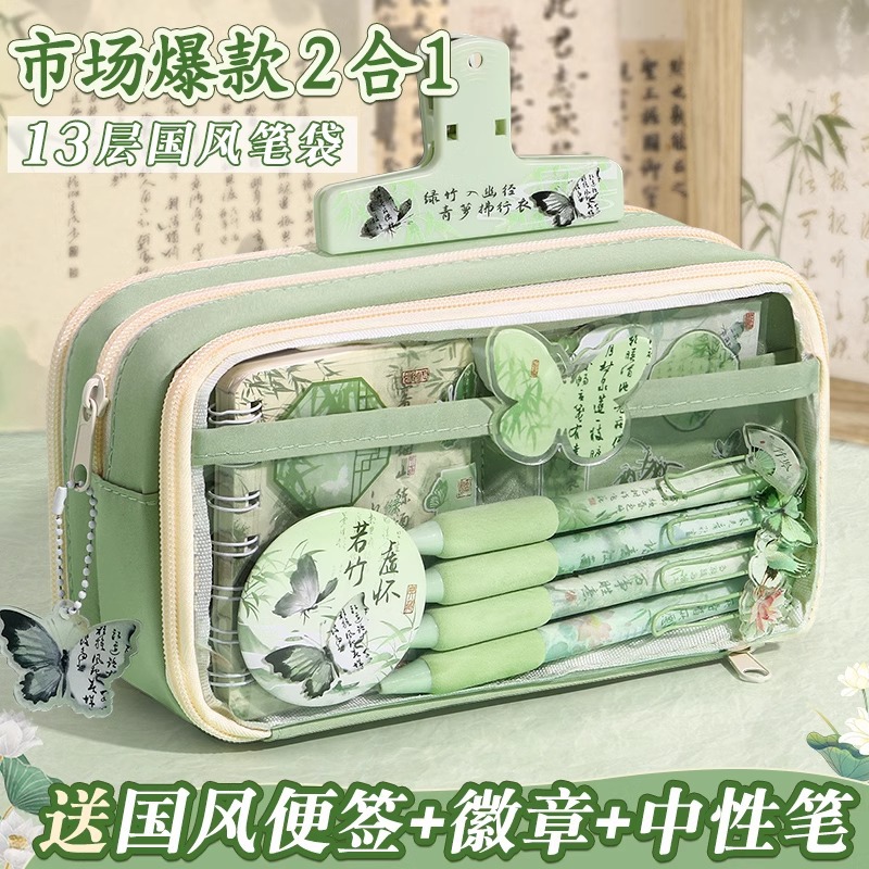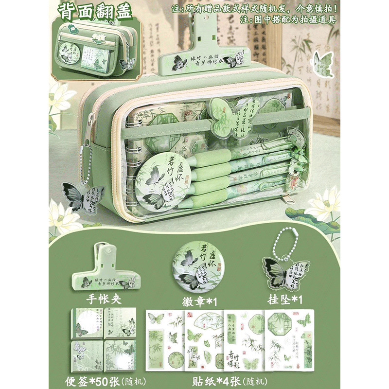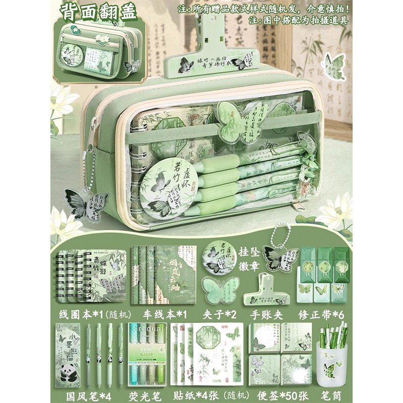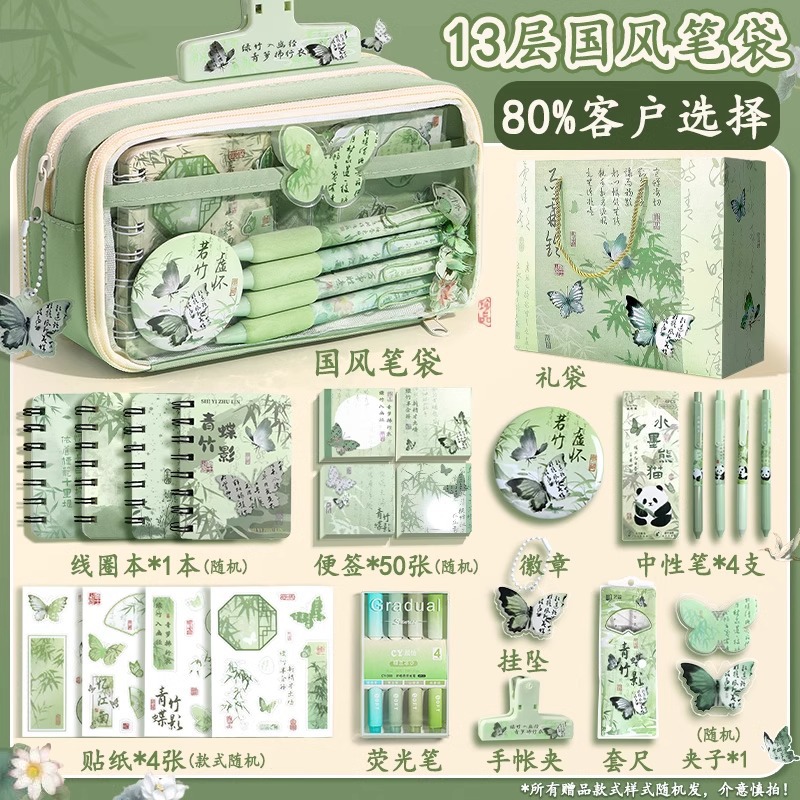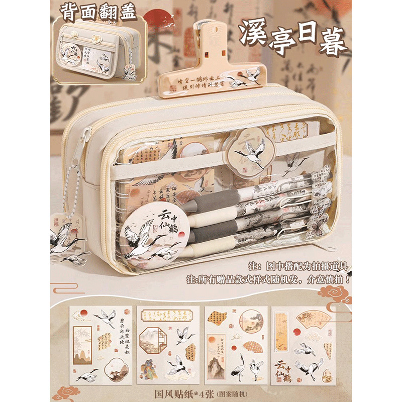 • [중국풍 럭셔리 세트] 13단 중국풍 필통/자동차 라인 노트 + 중국풍 펜*4 + 중국풍 노트 + 코일 노트 + 형광펜 4개 + 수정테이프 6개 + 뱃지 + 스티커