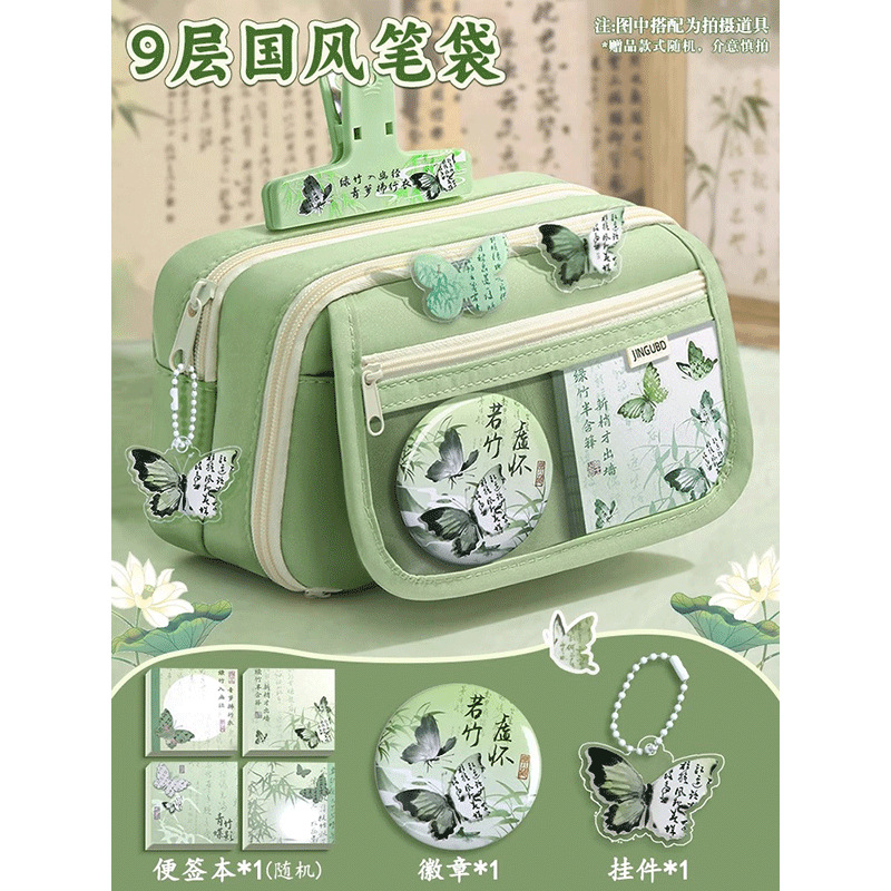 • 9단 중국식 필통/무료 중국식 펜*4+코일북+자 세트+펜홀더+배지+펜던트+중국식 메모+계좌홀더+스티커*4