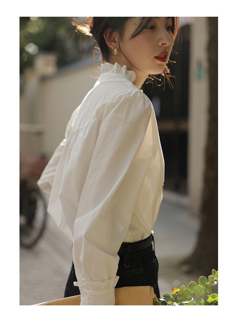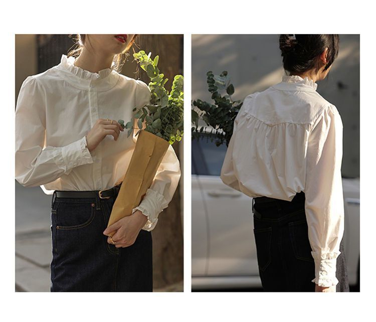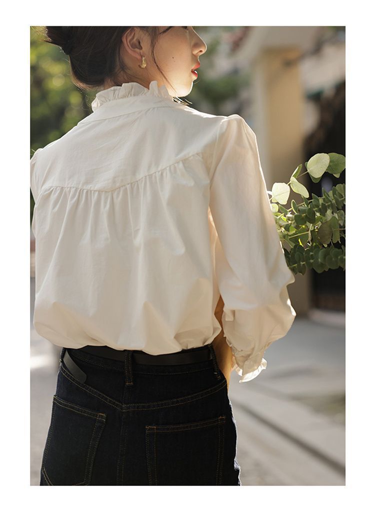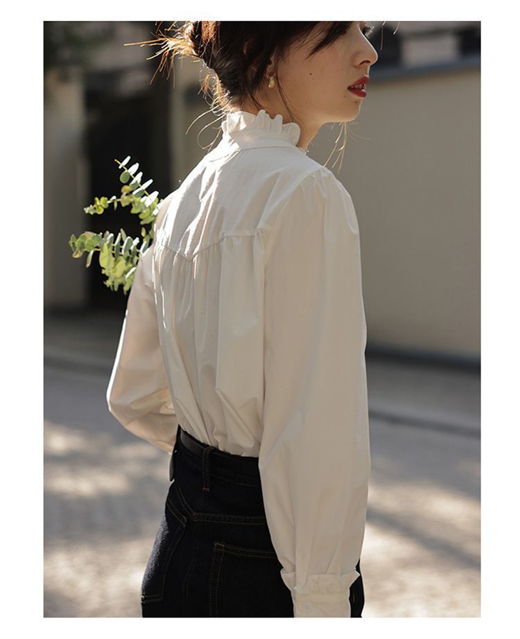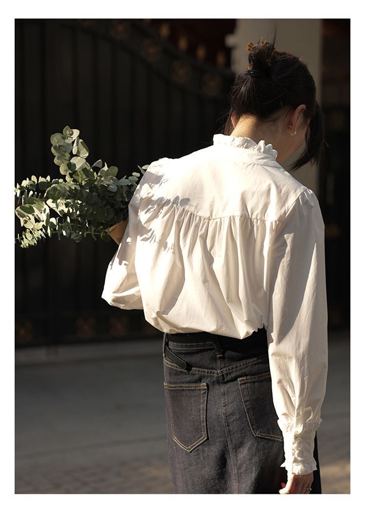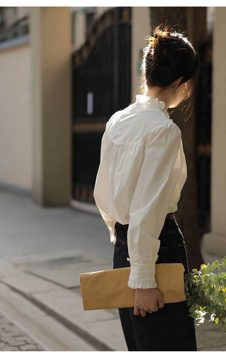 예술적인 스타일의 귀달이 칼라 흰색 긴팔 셔츠 여성용 2025 봄 레트로 프렌치 스타일 루즈핏 셔츠 우아한 스타일스토어 가기