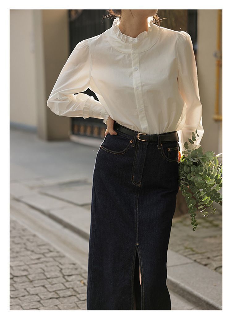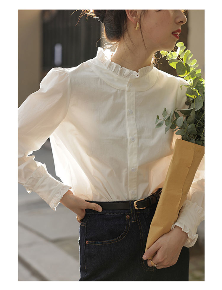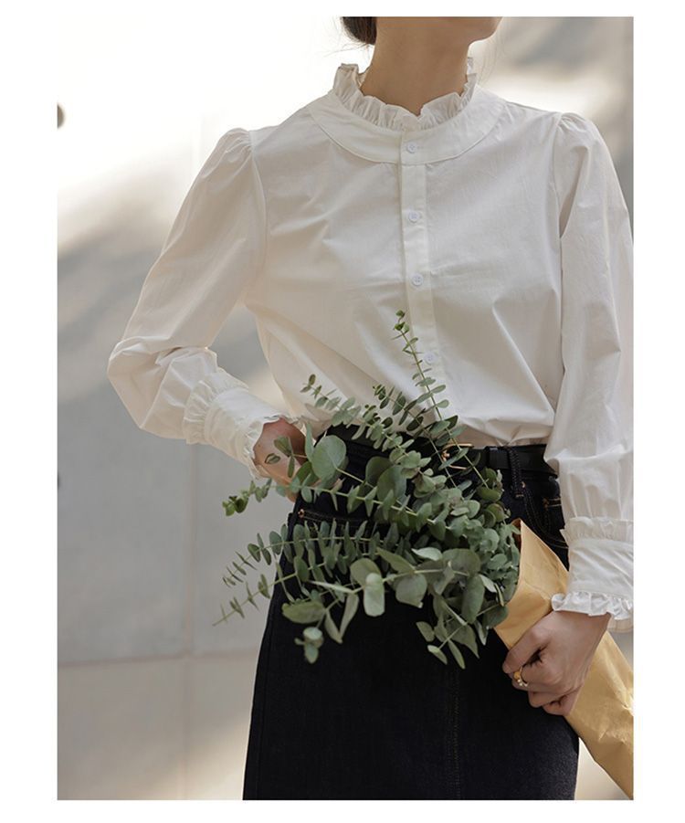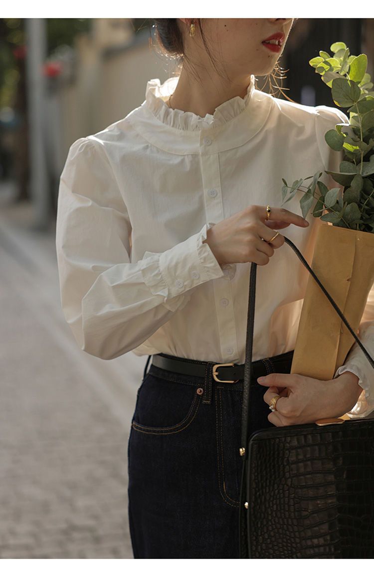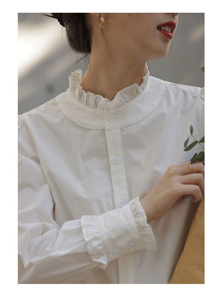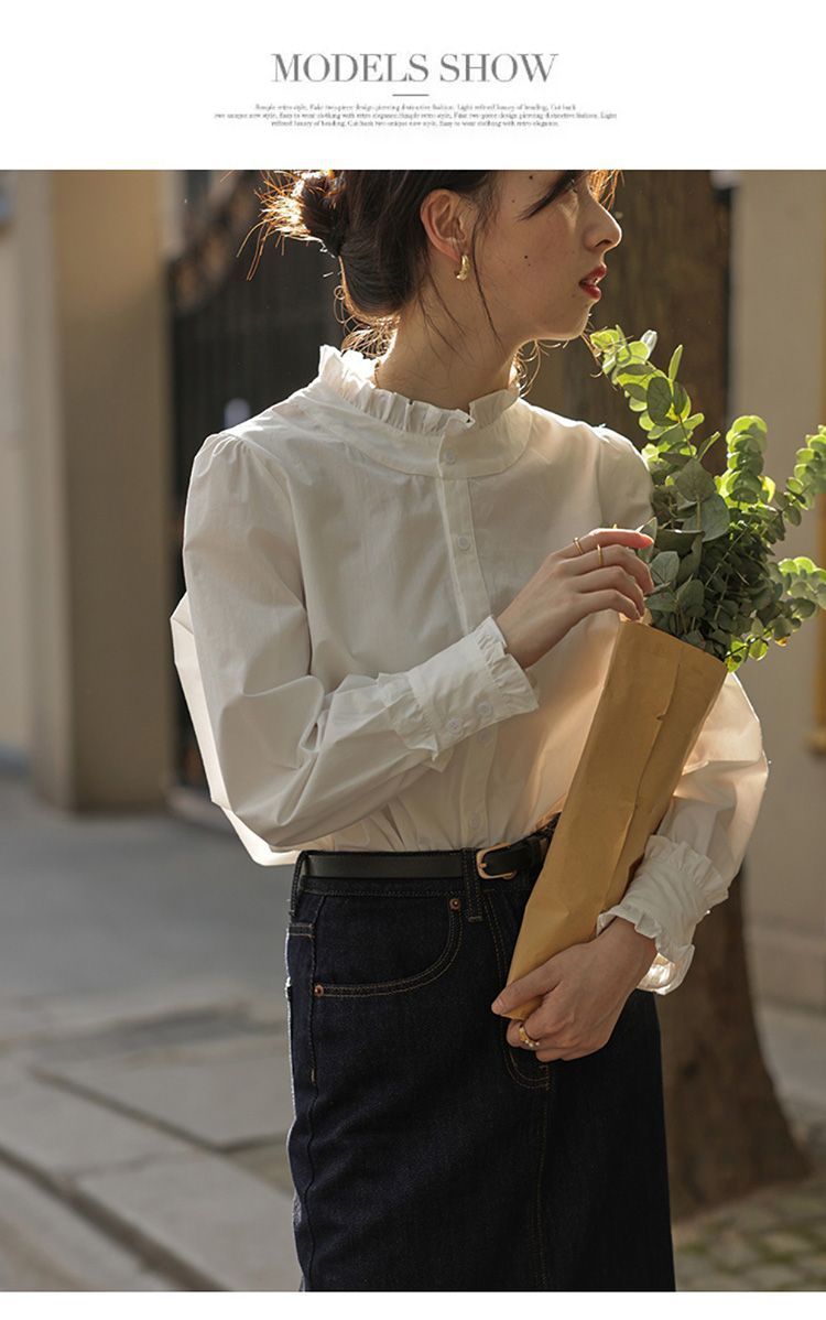 예술적인 스타일의 귀달이 칼라 흰색 긴팔 셔츠 여성용 2025 봄 레트로 프렌치 스타일 루즈핏 셔츠 우아한 스타일스토어 가기